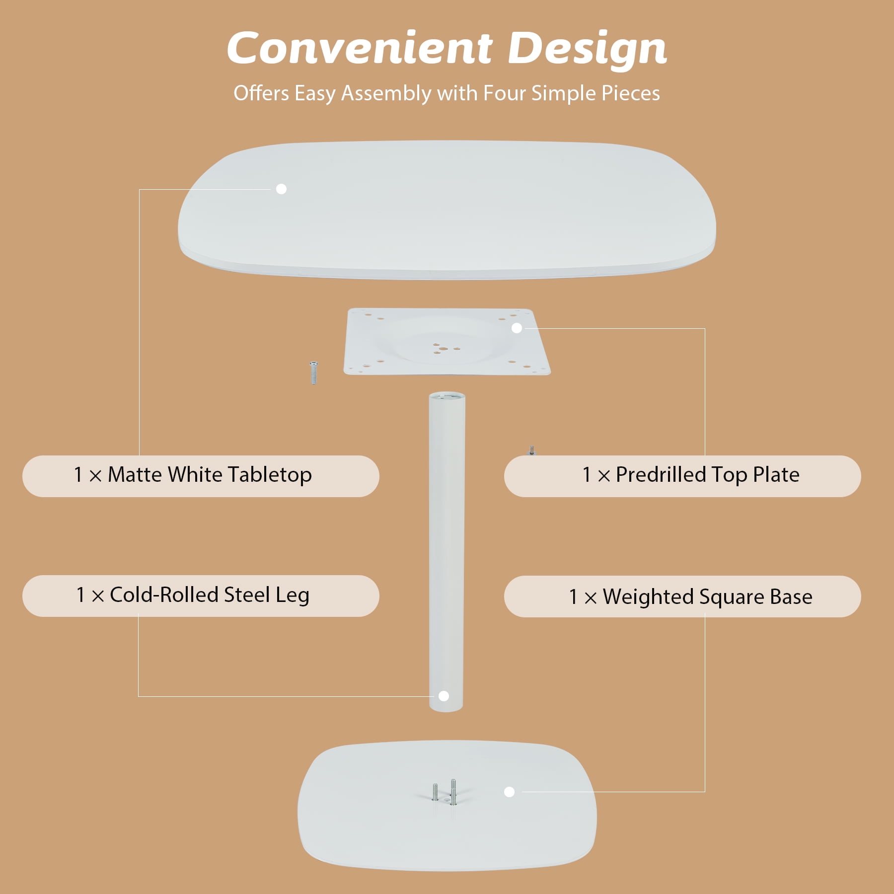 Elegant matte white finish & stylish edges complement any home decor Square tulip table seats 4 for casual gatherings and small family dinners Durable MDF tabletop and steel weighted base ensure dependable service