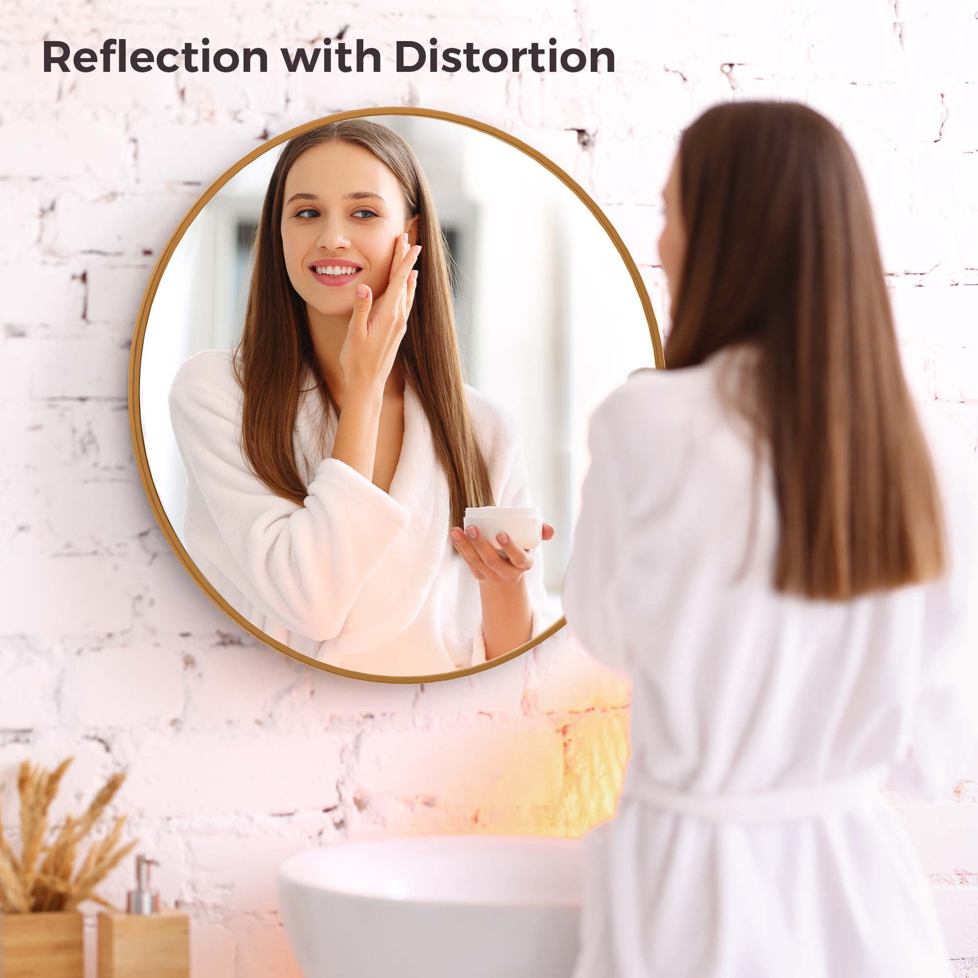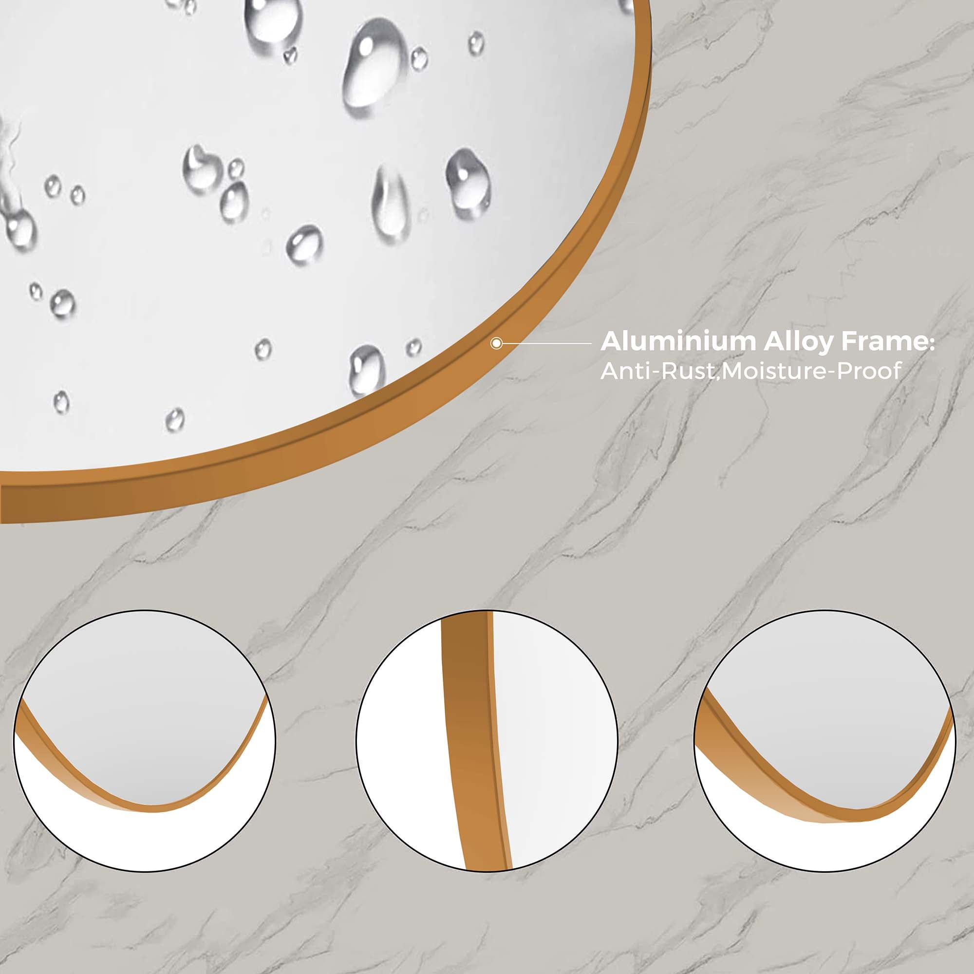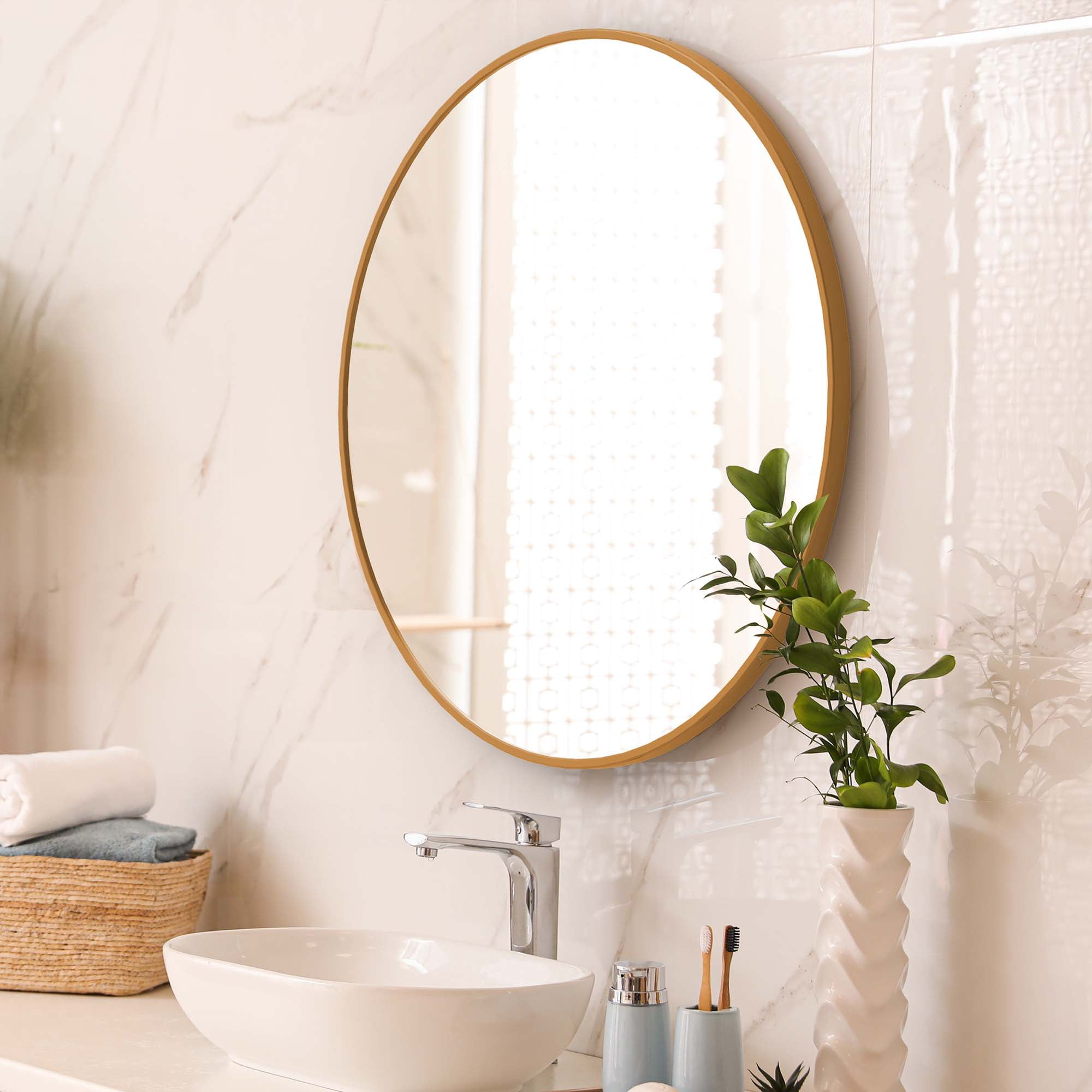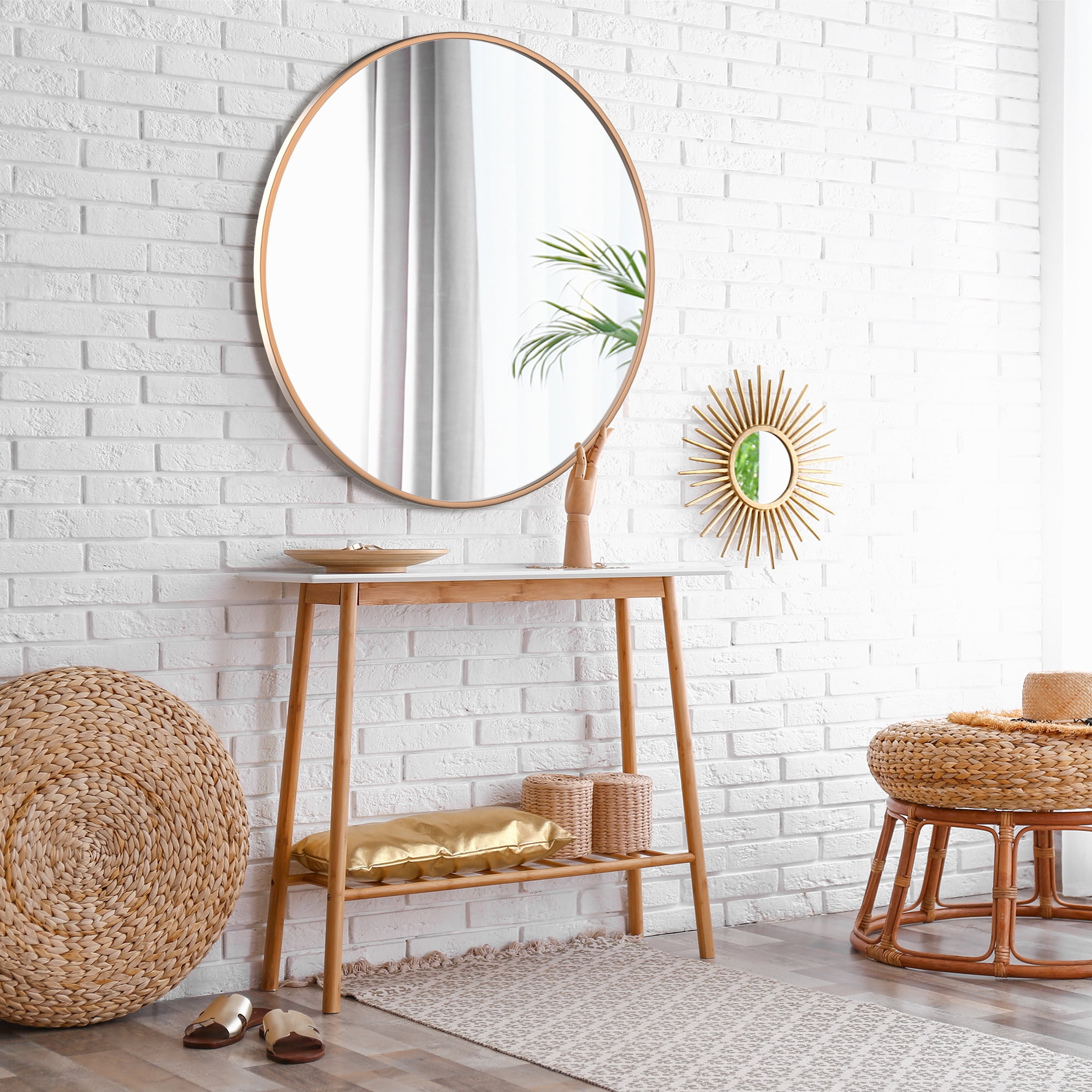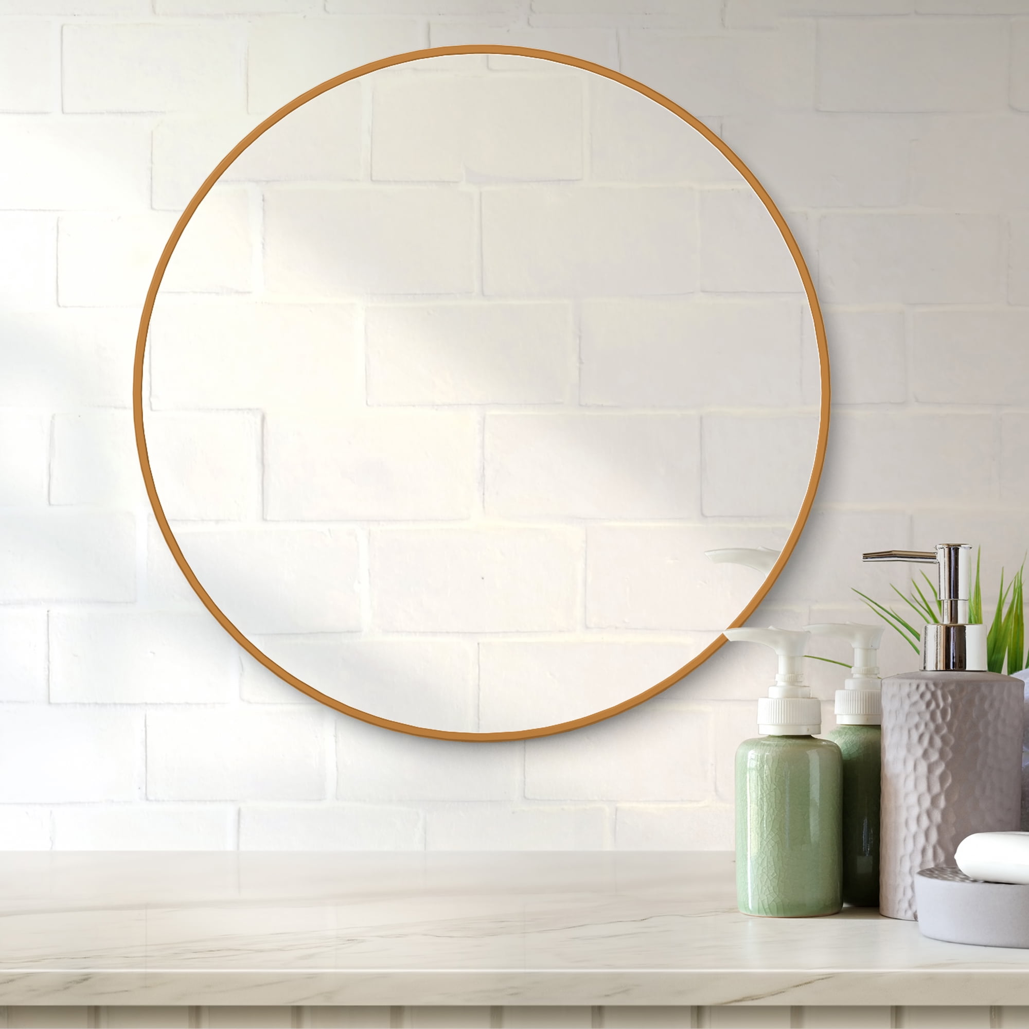 Round Wall Mirror Our mirror for wall hanging is handcrafted with care and attention to detail and design. We use high quality metals and mirror materials to the sturdiness and consistent aesthetic beauty of the design. suiting for no matter classic style or modern style. The shape of round mirrors takes up less wall space, it looks like a piece of art, and its sleek shape and size is a beautiful complement to the wall space. The classic circle mirror designed with the modern aluminum brushed process, can match any decorative environment, and highlight the beauty of space, suitable for a bathroom, living room, bedroom, makeup mirror, entrance hall, walkway, and other uses. Product Description: Size: 32″*32″*1″ Overall Product Weight:16.65lb Material: Aluminum Alloy & Glass Design: Thin frame, multipurpose, explosion-proof glass Color select: Black / Gold /Silver Mounting Ways: Hanging on the wall