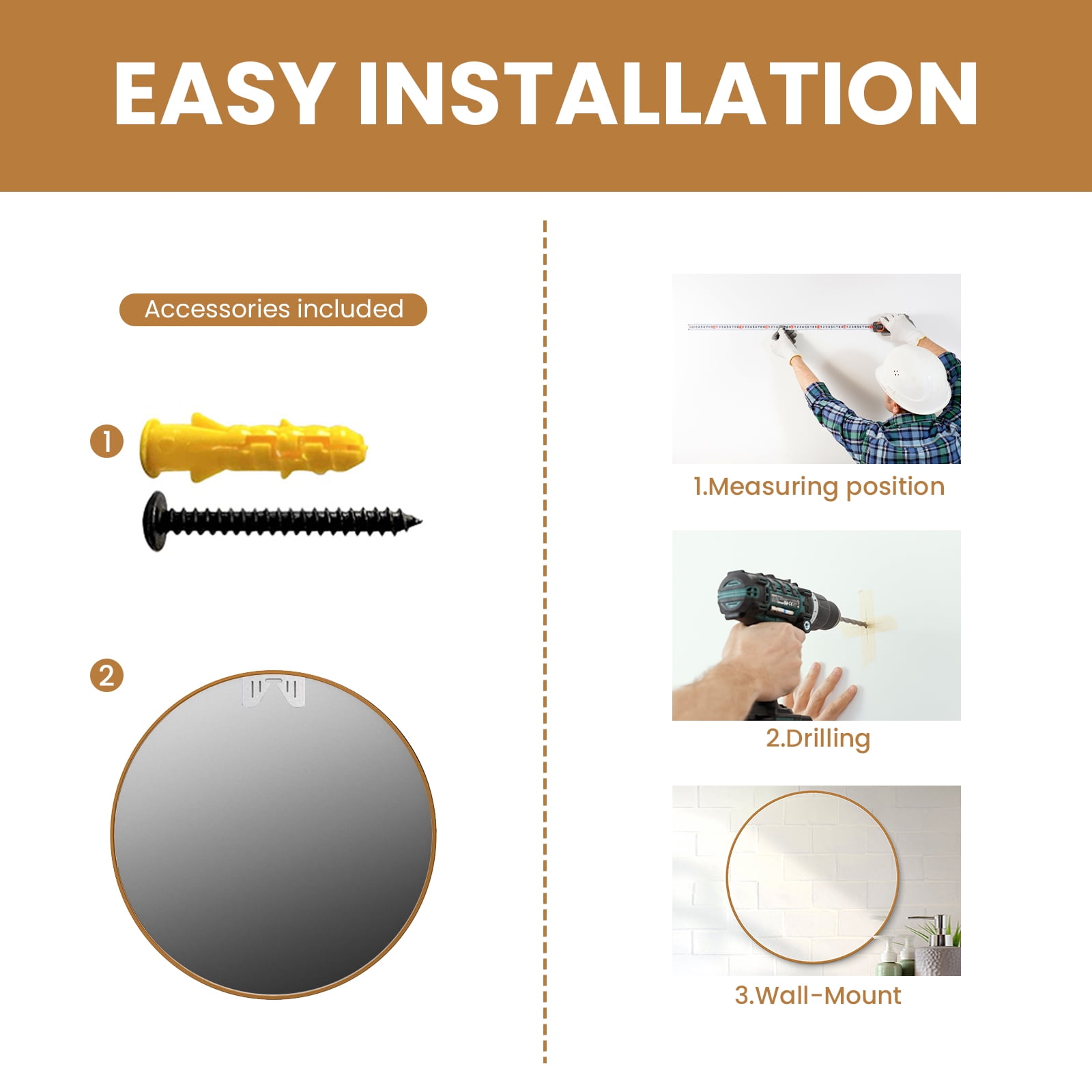 Large Round Mirror Shatterproof: 32 inches diameter large round mirror can visually make your home more spacious and more inviting while serving as functional wall art. Large Round Mirror High-Definition: Our round mirror is made by precise and professional silver coated technology which can present a clear and real image.This mirror shows a clearer image (CRI up to 90). Large Round Mirror Metal Frame: The metal frame is made of black brushed aluminum alloy. It’s not only beautiful and sturdy, but also waterproof and rustproof. The large round mirrors are perfect for living room, bathroom, bedroom, dining room, entryway, rustic, vanity, etc. Round Mirror Sturdy: The back also made a special design, the back can fit the wall completely. The black MDF board on the back, meanwhile, can make the whole frame more solid and durable. Easy To Install: The large round wall mirror can be installed easily. The hook is pre-installed and screws included. Worry-Free Purchase: Any defective with received mirrors will get a full refund or a free replacement. Any questions will be responded within 24 hours.