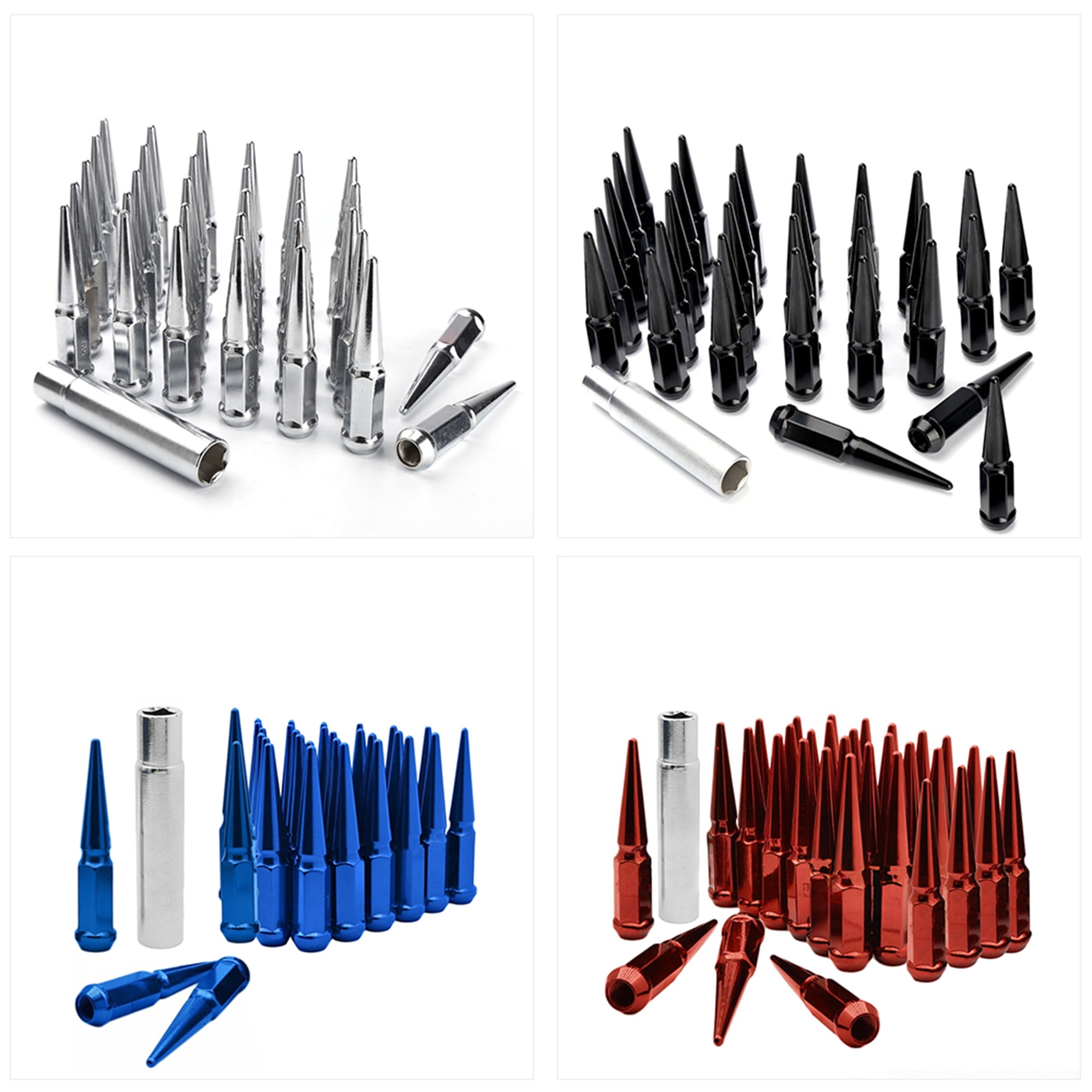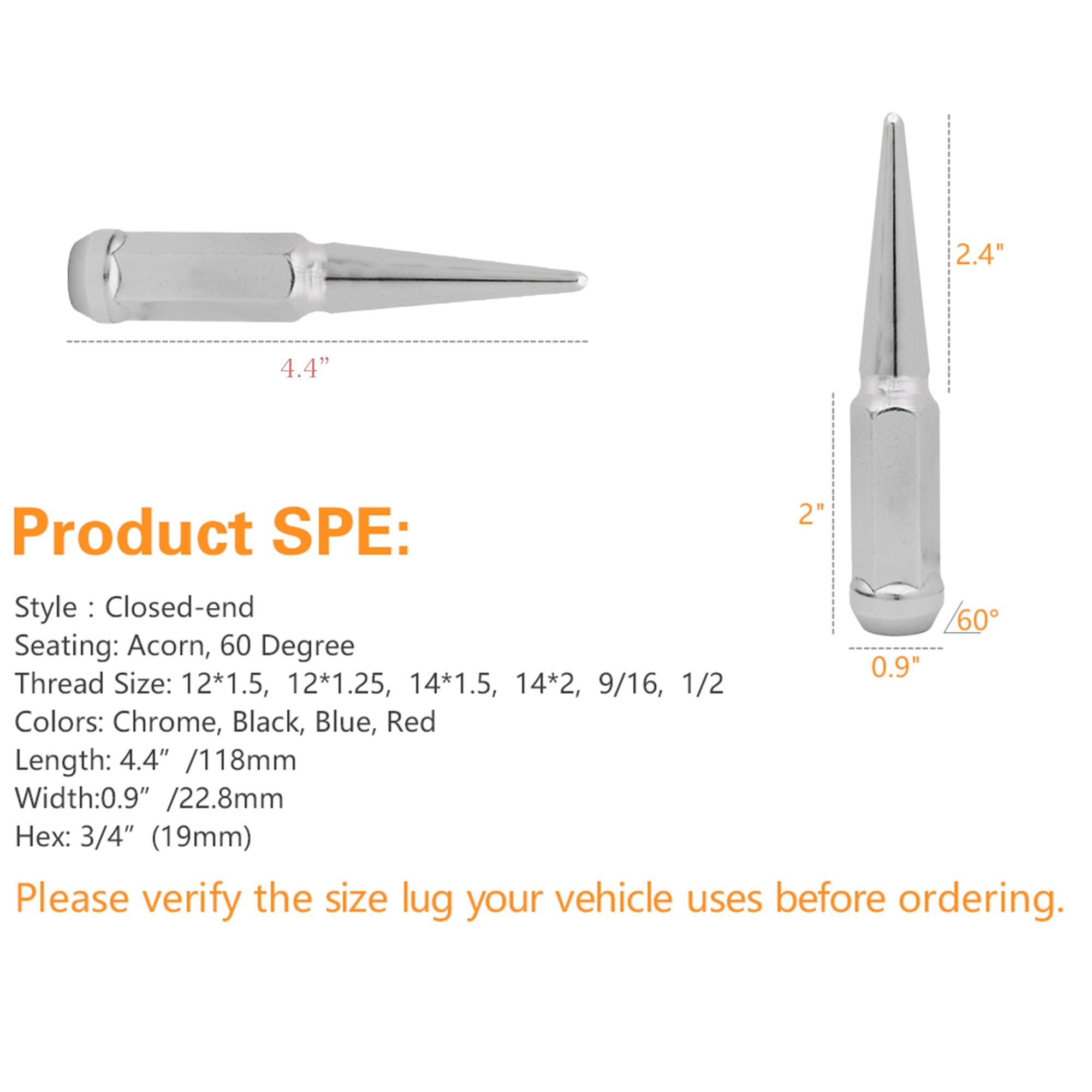 32pc Premium Chrome SPIKED 14×1.5 Extended Lug Nuts 4.4″ OFF-ROAD Silverado F250 F350 w/Key