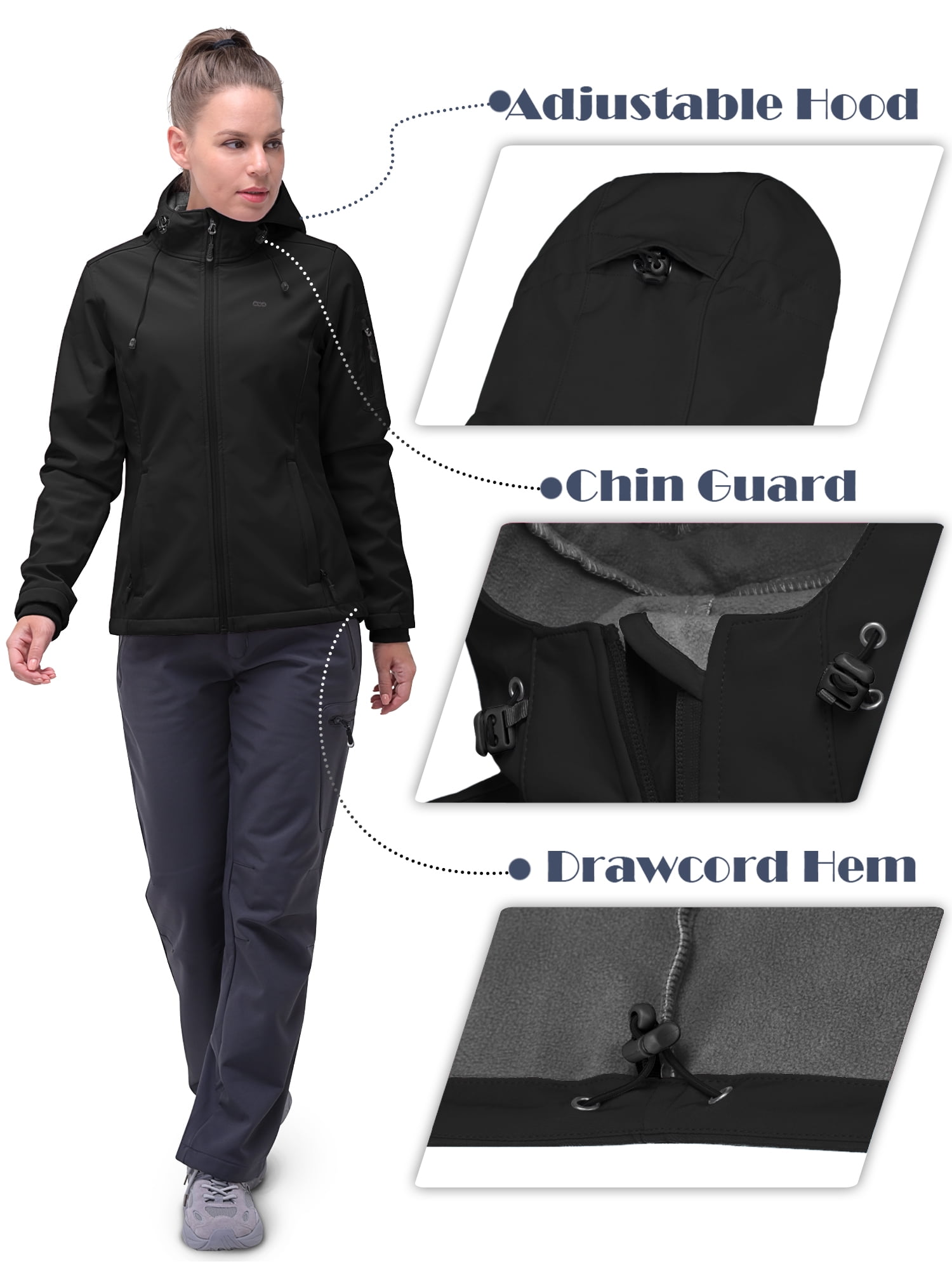 33,000ft Women’s Softshell Jacket, Fleece Lined Warm Jacket Light Hooded Windproof Coat for Outdoor Hiking
