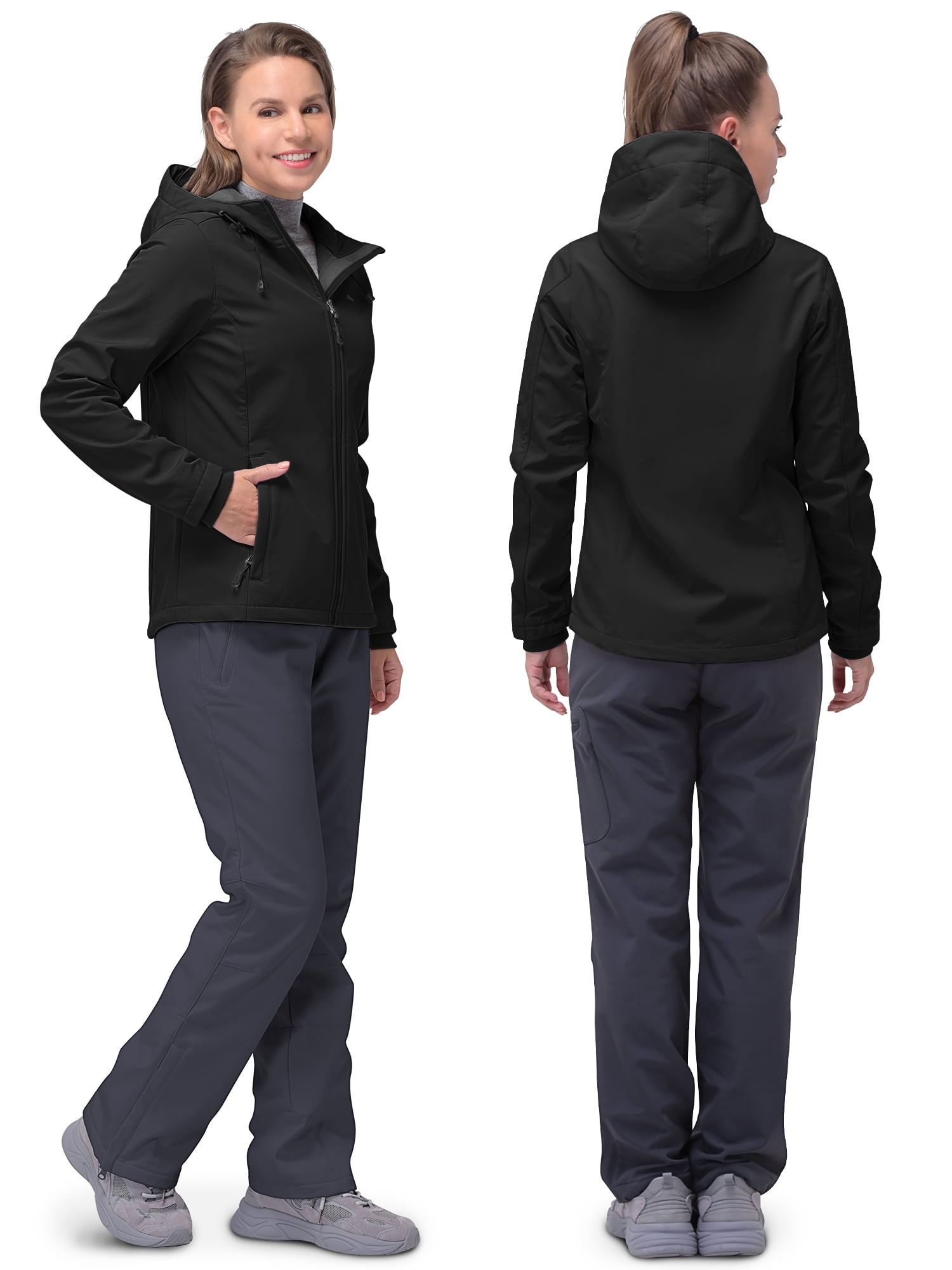 3 – Layered Professional Fabric: The outer soft shell of womens fleece lined jacket is made of 96% Polyester, 4% Spandex, stain & abrasion resistant and easy care. The excellent TPU membrane mid-layer is designed to retain heat, both waterproof and windproof. The inner fleece lining provides the ultimate body warmth management for outdoor performance. The breathable fabric radiating moisture while keep warm without being stuffy. Handy Features of Soft Shell Jackets Womens: The insulated jackets for women features 3 security pockets, including 2 outside hand zippered pockets and 1 left arm pocket. The arm pocket is 4.2 x 5.8 in ( 10.5 x 14.5 cm ), perfect for earphone, earbud and other little things. 2 outside pockets with soft fleece lined provide better hand heat preservation effect, ample and safe enough for your wallet, gloves, keys, phone, etc. Keep Warm in All Direction: The women’s softshell jacket is with the inner cuff, elastic and stretchable, which can protect your wrist from the wind. Stand-up collar design of protect your neck at all times, windproof and cold-proof. Drawcord hood and lower hem are with adjustable drawstring, helps lock out the cold and adjust your fit. It’s not only a insulated jacket womens, but also a womens running jacket. Size and Attention: Please check your size carefully before buying our softshell jacket for women. There is 5 size to choose, please refer to the size chart in the last product image to choose your suitable size. If you are looking for waterproof jacket for women with looser effect, please size up. Conversely, tighter fit, please size down.