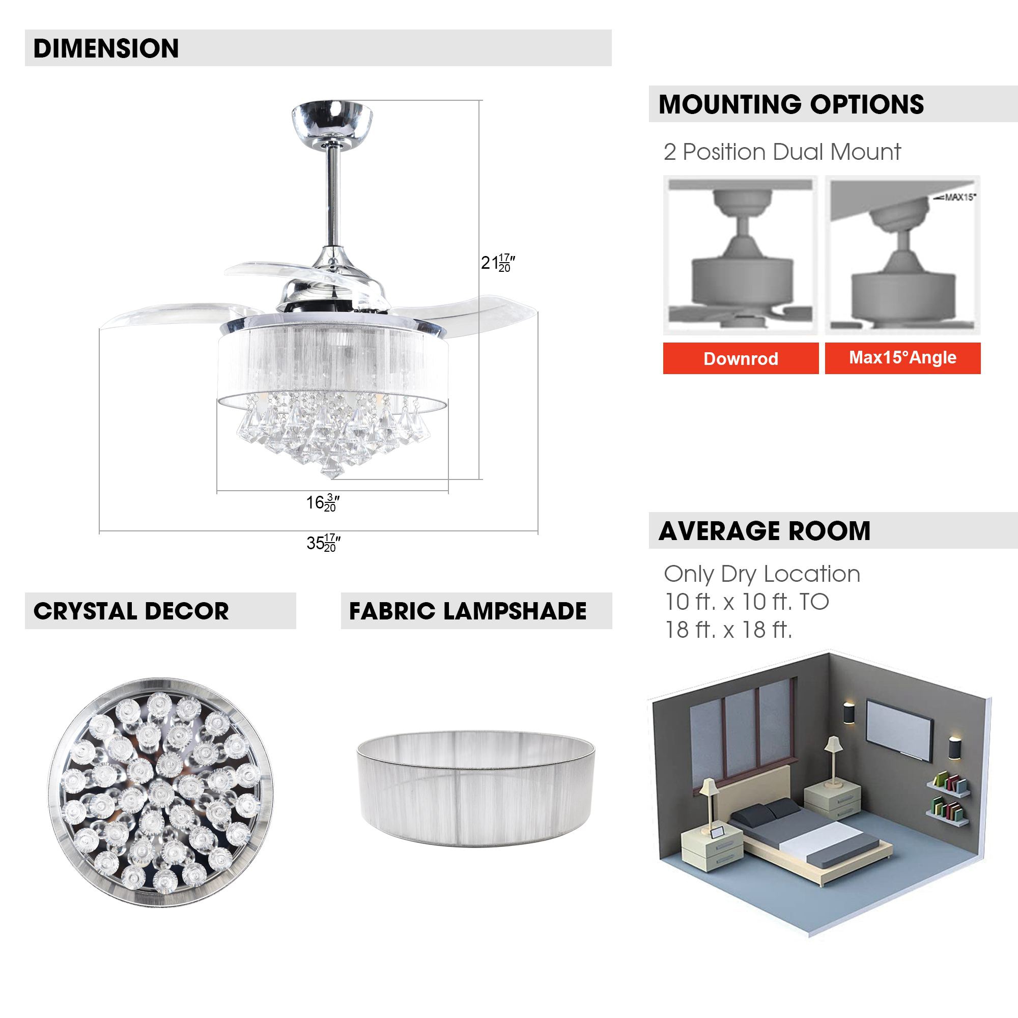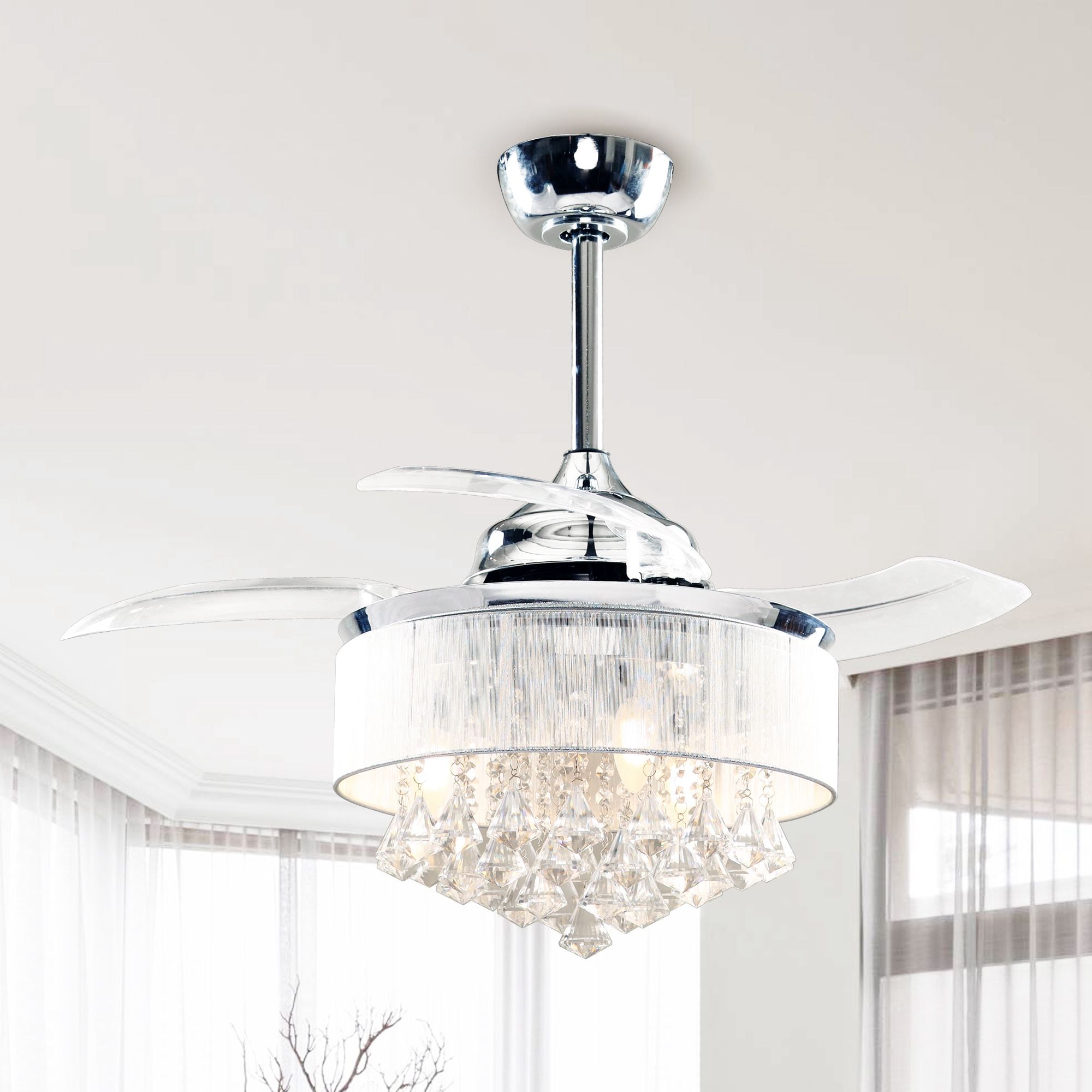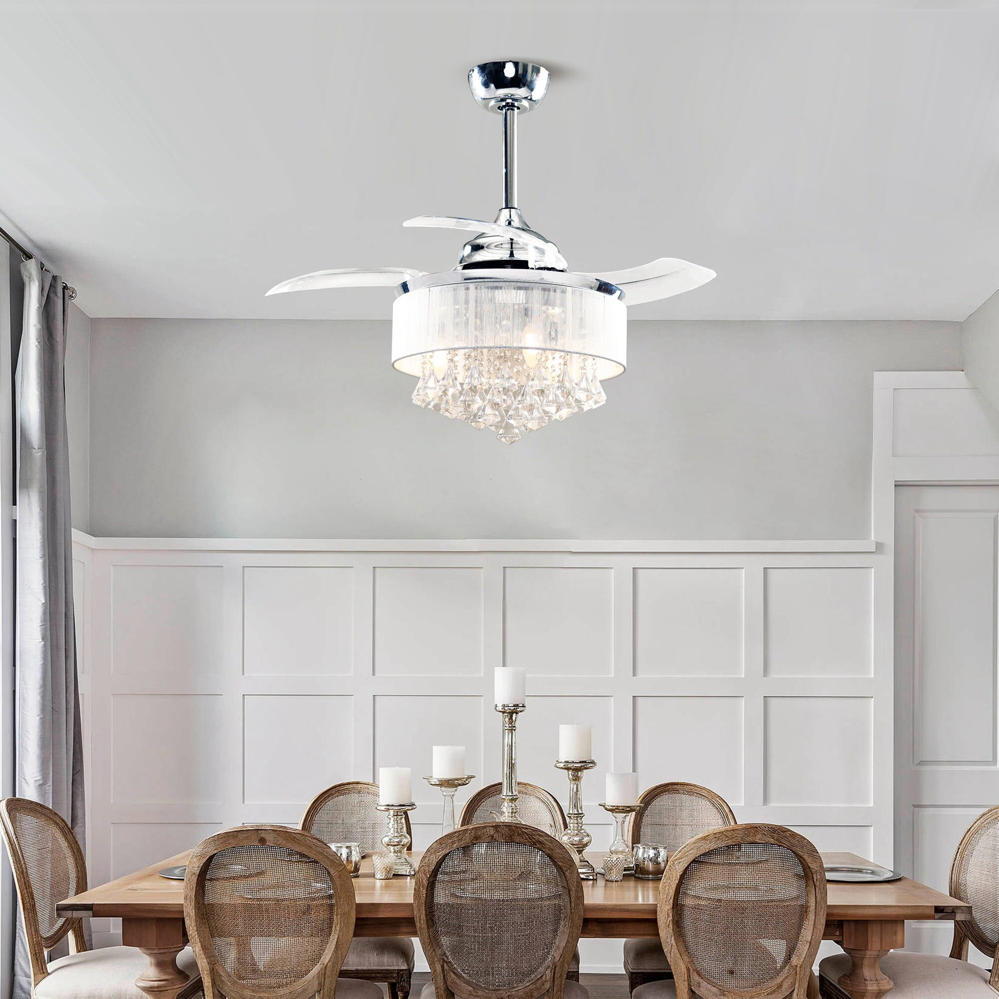 It is a combination of a retractable ceiling fan and crystal chandelier. When switched off, the intrusive fan blades automatically retract and conceal, and visually the unit transforms into a slim, modern chandelier. This high-end remote control allows you to control the light and the fan speed separately, 3 fan speeds.