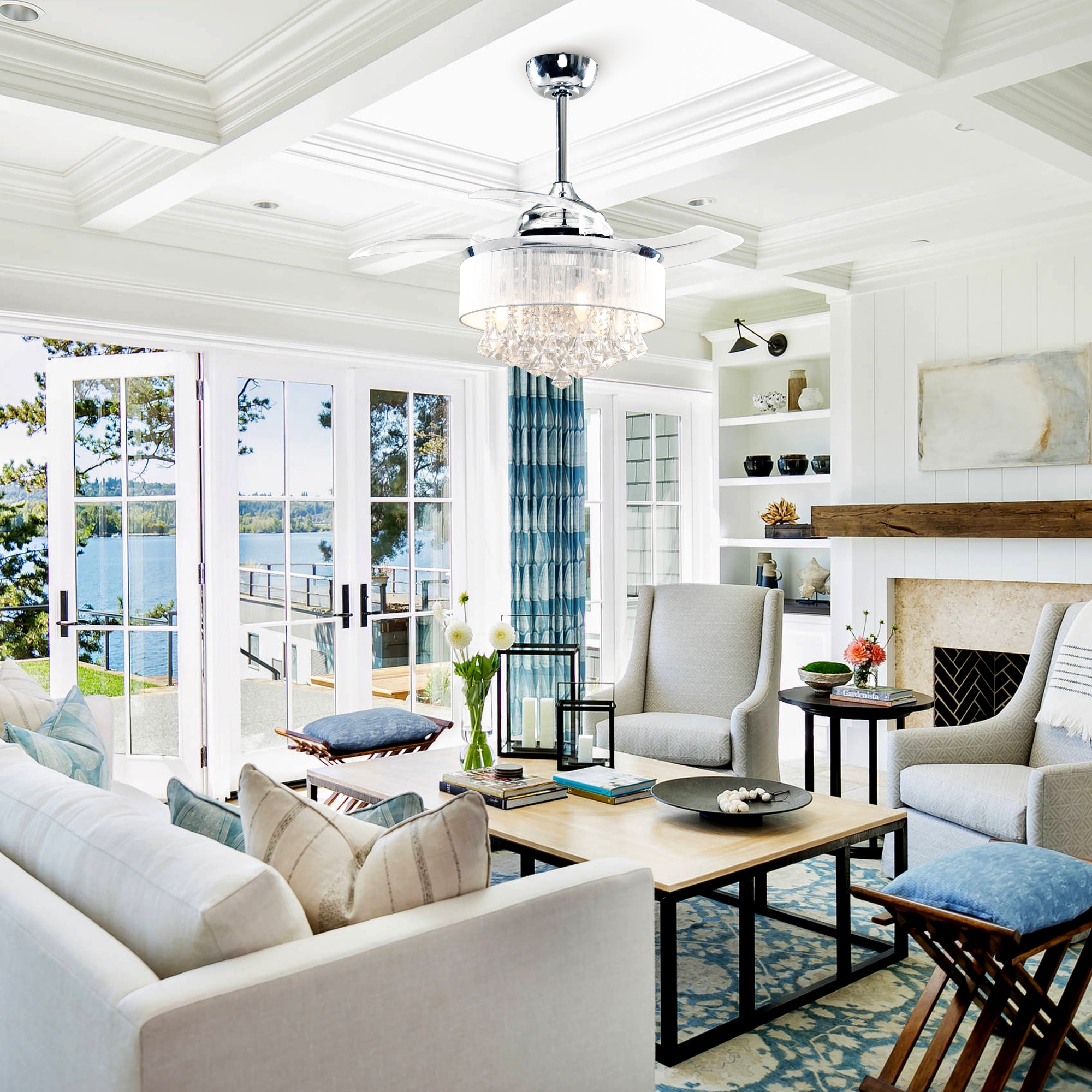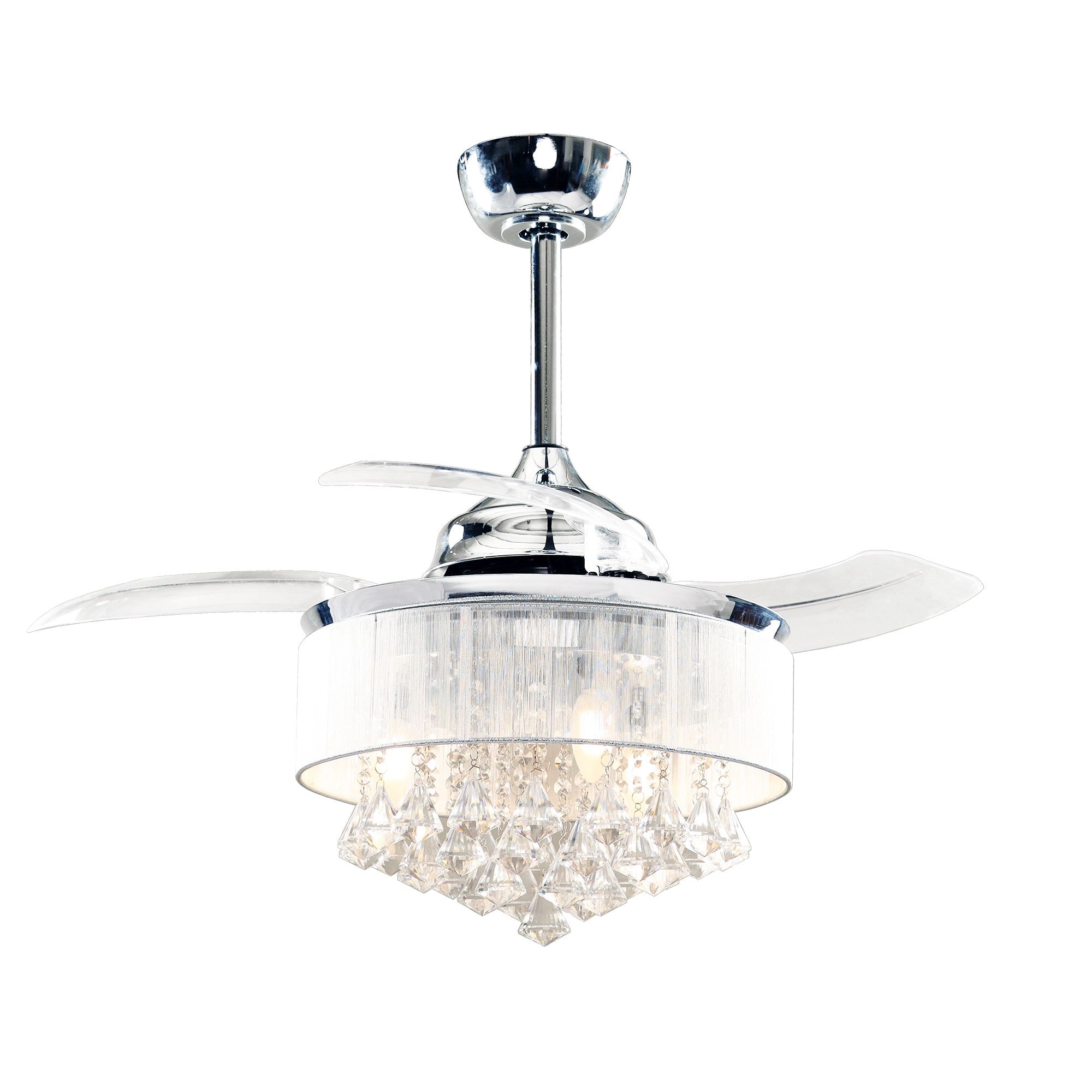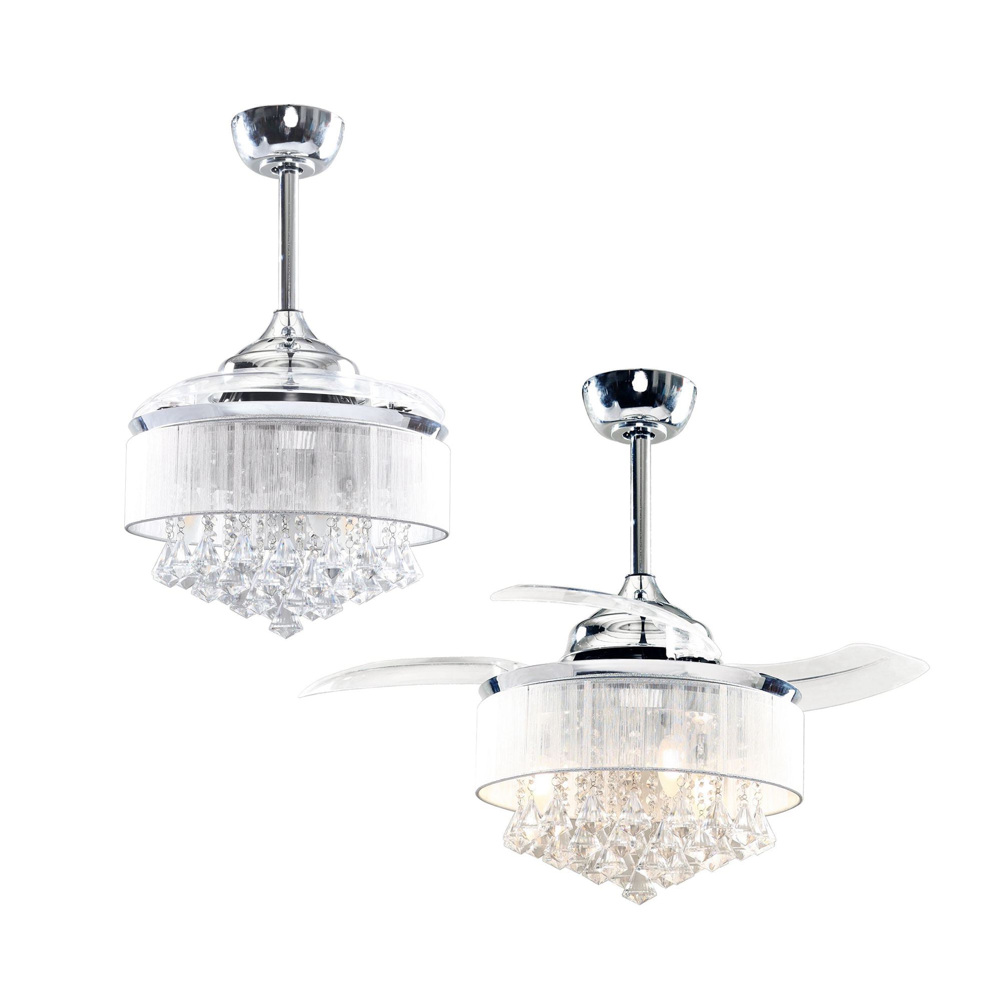 It is a combination of a retractable ceiling fan and crystal chandelier. When switched off, the intrusive fan blades automatically retract and conceal, and visually the unit transforms into a slim, modern chandelier. This high-end remote control allows you to control the light and the fan speed separately, 3 fan speeds.