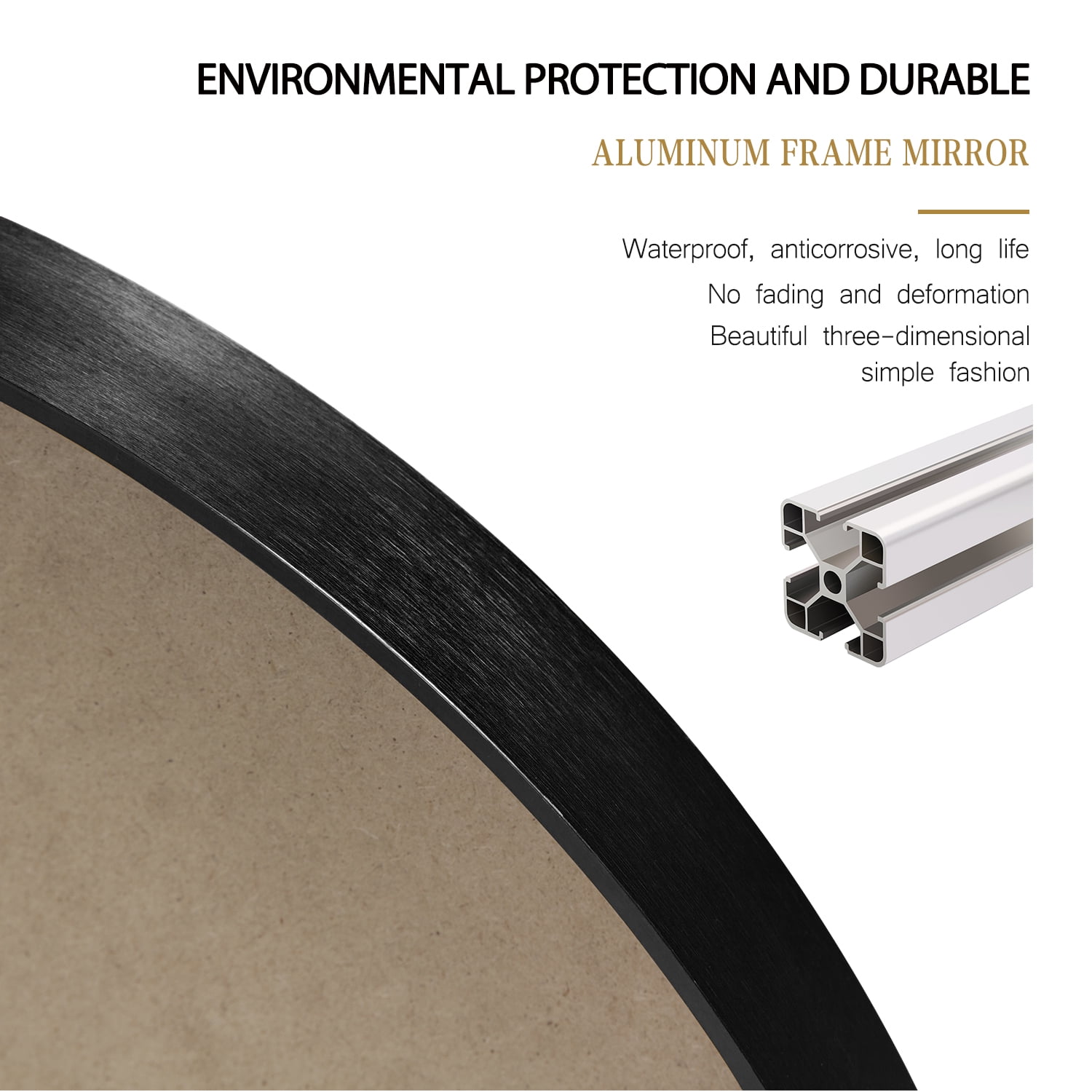 SPECIFICATION – 36″ round mirror, multi-layered for more protection. Original edge-sealing technology, lasting and more durable. COLOR – Black ALUMINUM ALLOY FRAME- The aluminum alloy frame is made of metal material. The 1.6″ frame thickness and 0.4″ frame width can not only add to the beauty of this Large Round Mirror, but also double as a protective bumper, and this will make the wall mirror last longer. SAFE & EASY INSTALLATION-The glass is safely inlaid and protected by the surrounding aluminum alloy frame construction. With Metal Hardware Holes on the back and 2 screw sets. Wall-Mounted Mirror will offer you a simple & fast way to hang it up. HD & EXPLOSION-PROOF – The decorative mirror is coated with silver nitrate, anti-rust treatment, no oxidize and rust, more HD. Copper-free silver mirror, environmentally friendly. Shattered glass will not be spilled out even impacted by external force, more safer and protective. 100% REFUND/REPLACEMENT: Full refund or free replacement for mirror(s) damaged on arrival, no return is needed, simply send us some pictures through Message to show the damaged mirror(s).