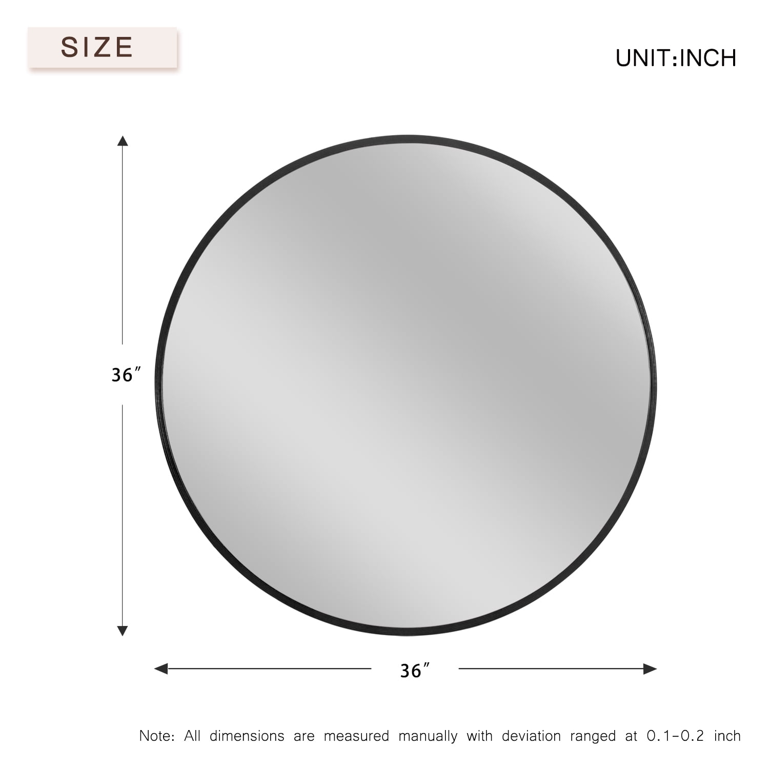 36″ Black Round Wall Mirror Modern Accent Mirror Wall Decor Circle Mirror Aluminum Alloy Frame Bathroom Wall Mounted Mirror