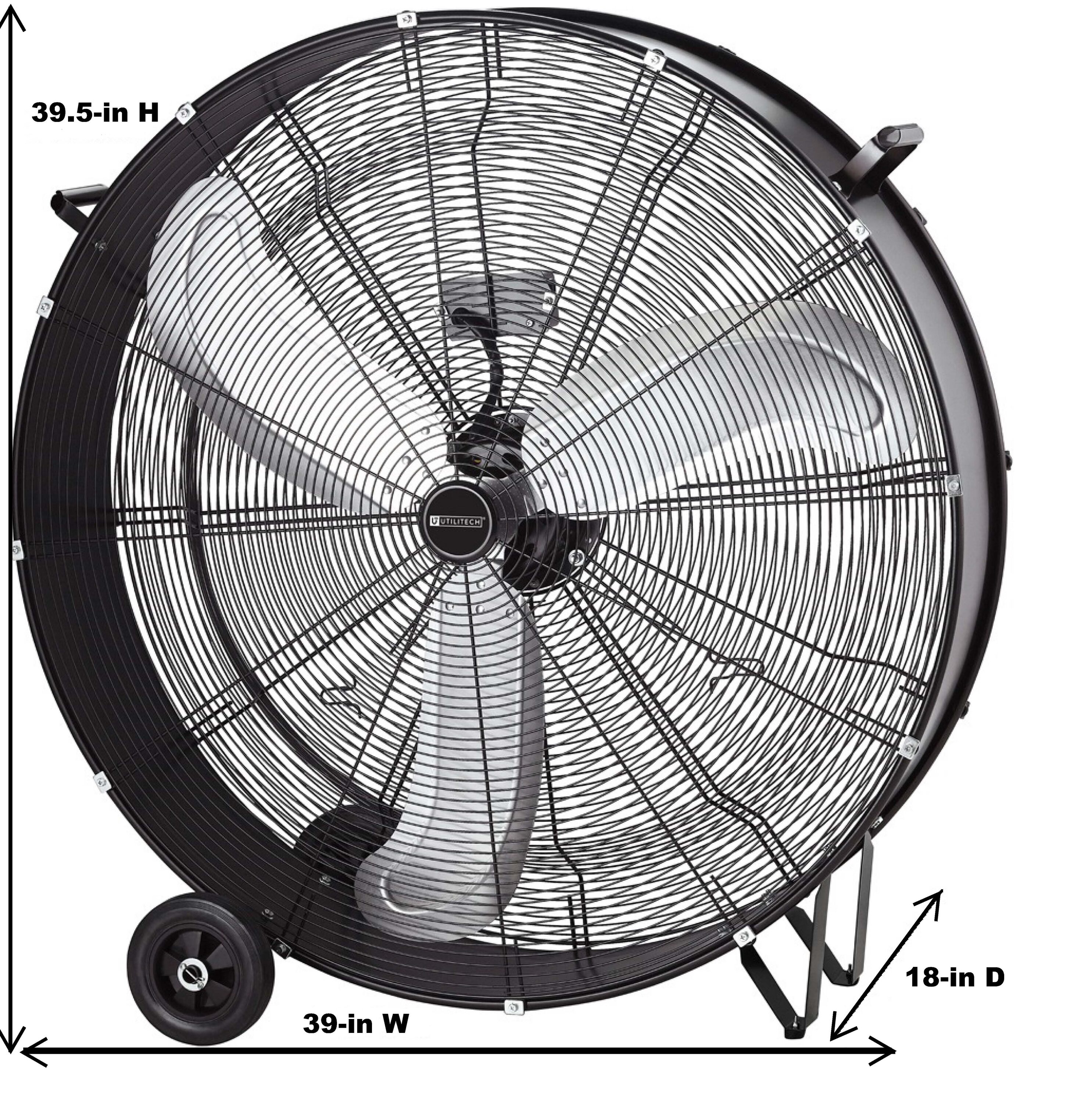 This UtiliTech 36-inch drum fan is powerful, portable, quiet and durable. This fan is perfect for industrial, job site, and agricultural applications where people, animals, or machines need airflow. Use this fan on jobsites to dry paint, cure concrete or dry standing water faster, or provide airflow in warehouses or barns. The fan is constructed with heavy duty materials with a high reliability motor for long life in tough environments. UtiliTech fans are packed with features to make your job easier.