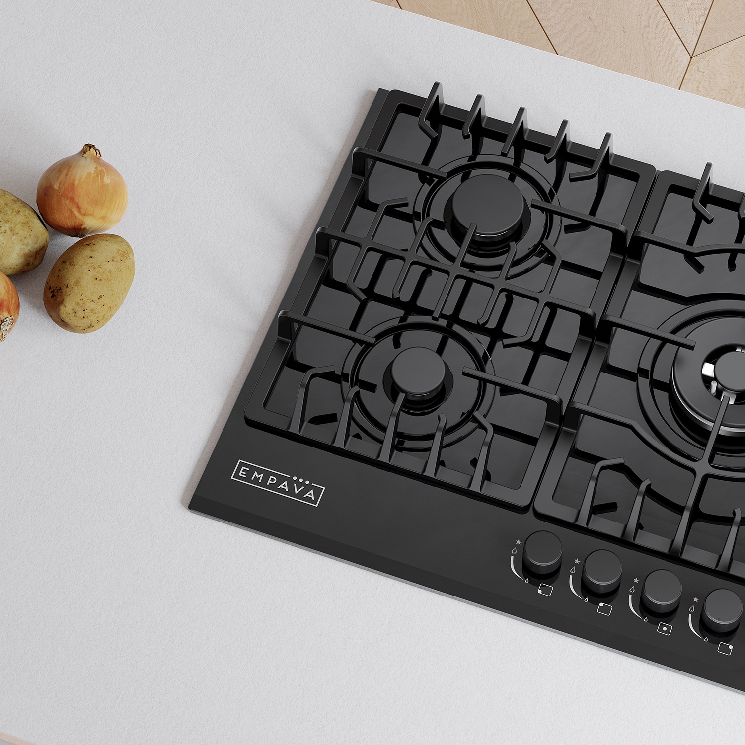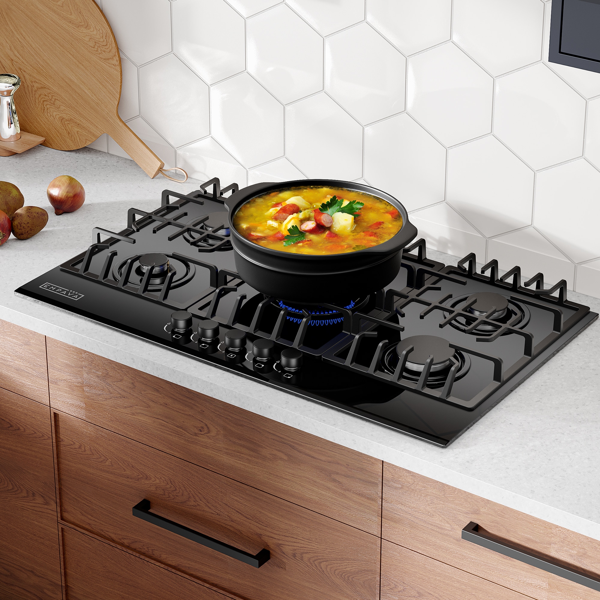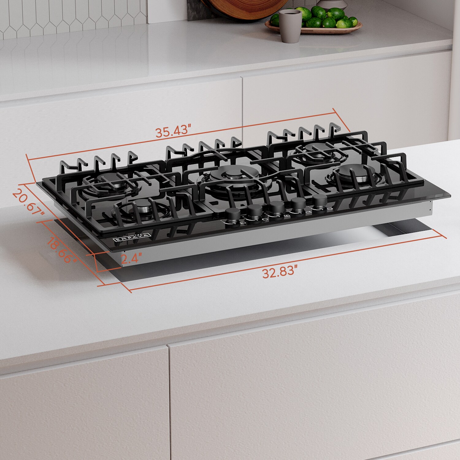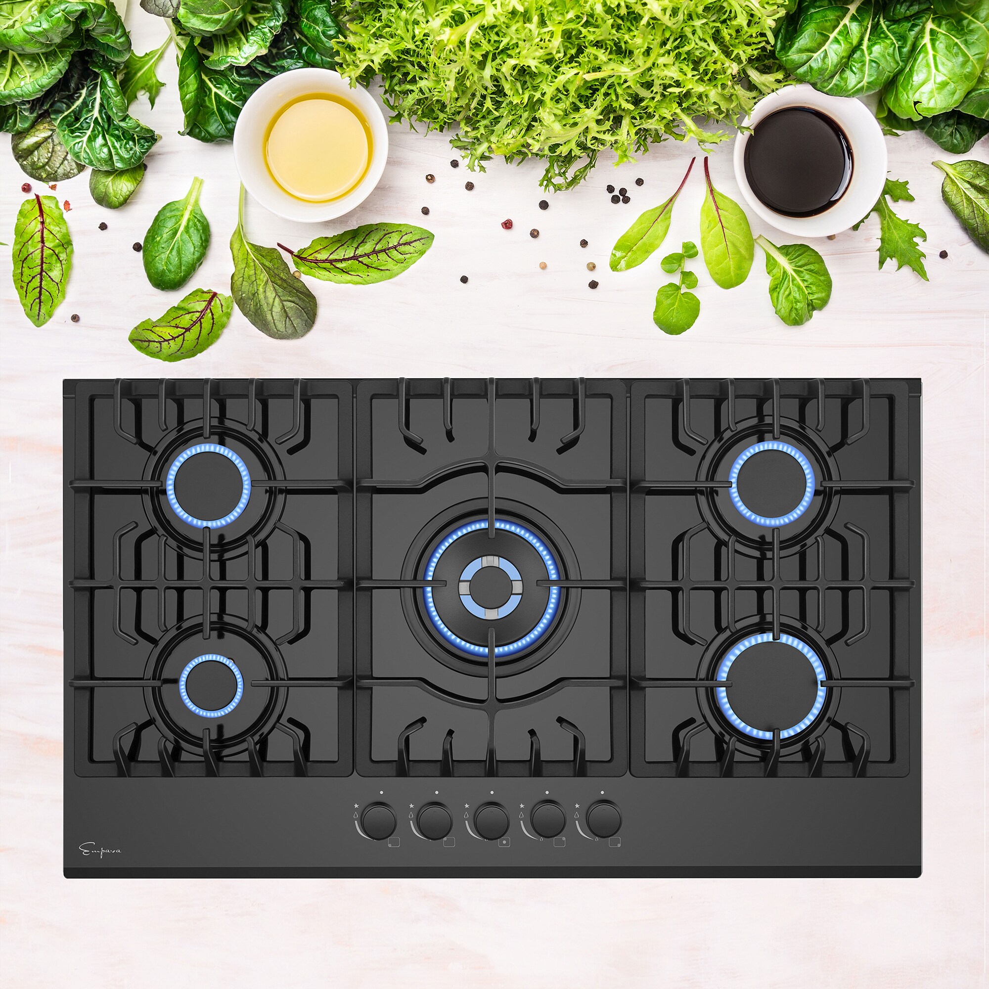 The Empava 36-inch gas cooktops with the CSA certified is a perfect combination of style and practicality. Constructed with tempered glass to prevent dents and scratches for long lasting use in your busy kitchen. The gas cooktops feature commercial-grade components (1x 13000-BTU burner, 1x 10200-BTU burner, 2x 6000-BTU burners and 1x 3800-BTU burner), the power burner designed to reach maximum temperatures quickly as well as a simmer burner for more delicate, controlled heat. The metal constructed knobs and the heavy-duty cast iron grates can be cleaned in the dishwasher. During the past years, 36-inch gas cooktops by Empava appliances have been a very popular choice for kitchen upgrades and new builds, allowing you to cook restaurant quality meals from the comfort of your own home.