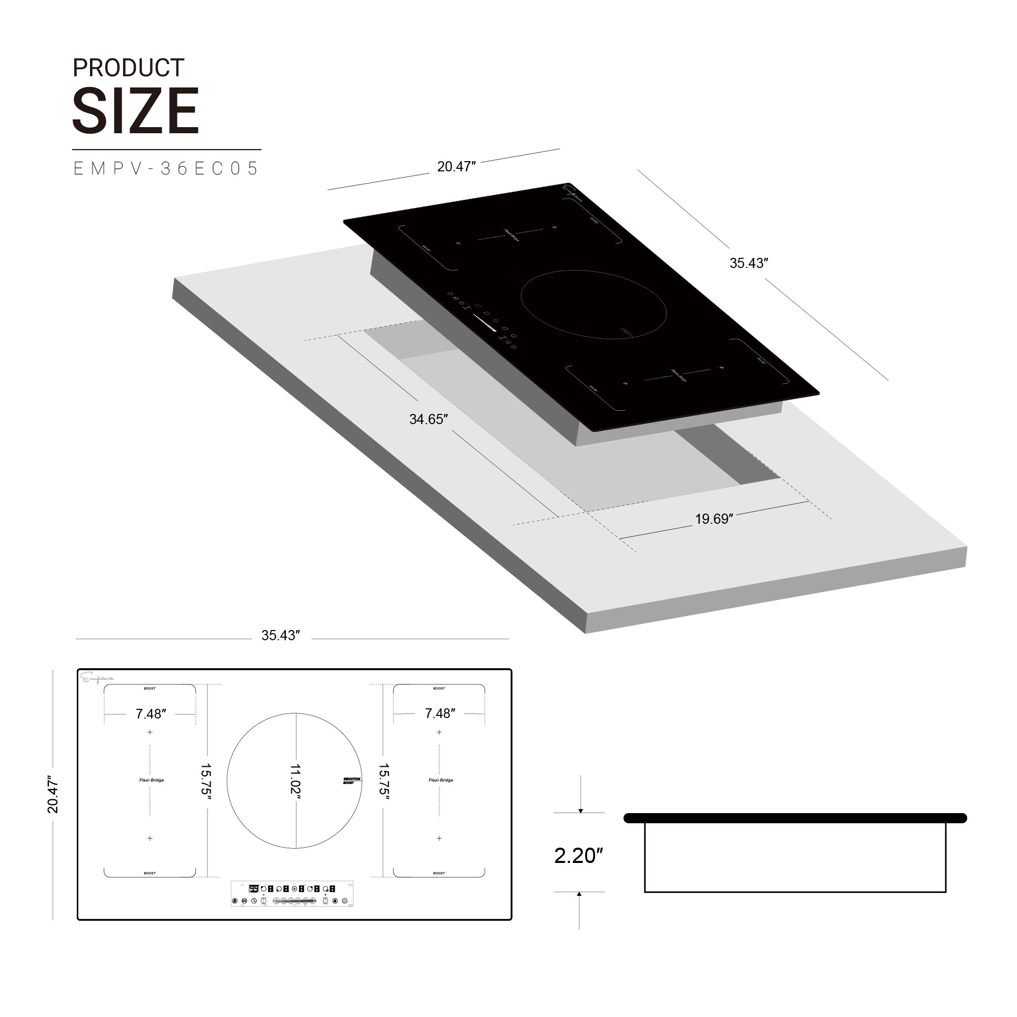 The 36-in 5 elements induction cooktop with certified is a perfect combination of style and practicality. The sleek black finish and built-in design offers an attractive look for any counter. Including 5 heating elements (1x 11-inch 2300-W element (power boost 3000-W), 2x 7.5-inch 2000-W element (power boost 2600-W), 2x 7.5-inch 1500-W element (power boost 2000-W)) distribute even heat for simmer, boil, stir-frying, steaming, melting! Red led display with black glass surface helps achieve a modern look that complements the entire kitchen. Hot surface indicator will let you know when elements are hot. Sensitive digital control and up to 99 minutes timer will help you to cook perfectly and accurately. Power boost mode for maximum power for a short period of time. During the past years, Empava induction cooktops have been a very popular choice for kitchen upgrades and new builds.