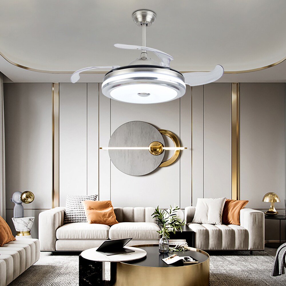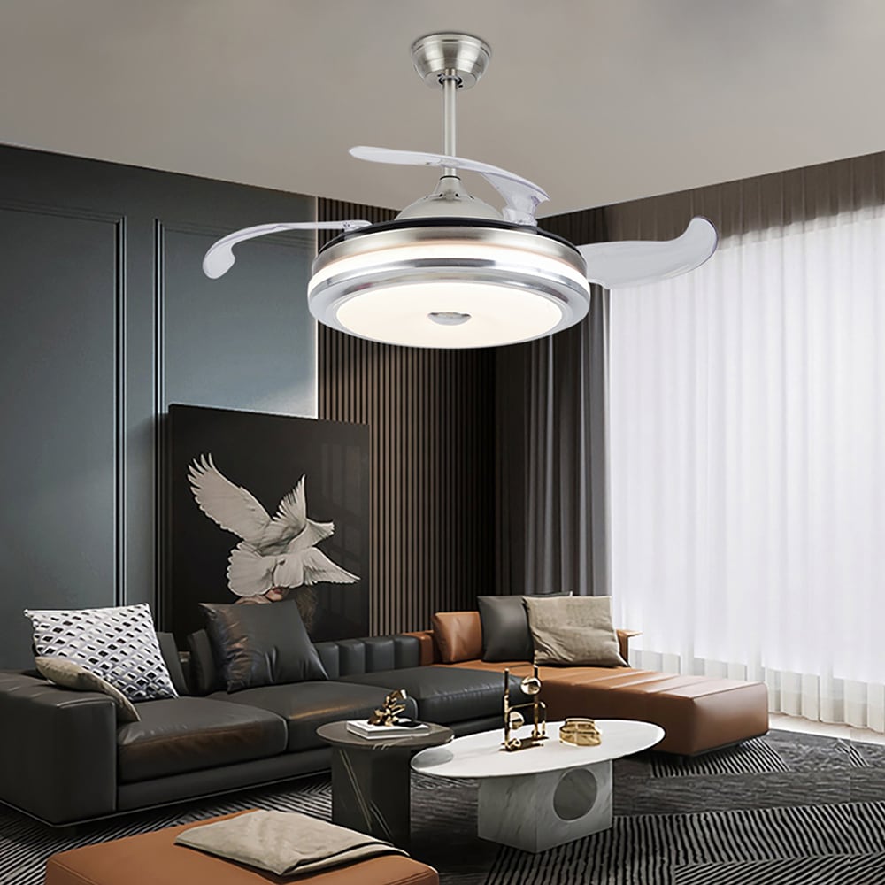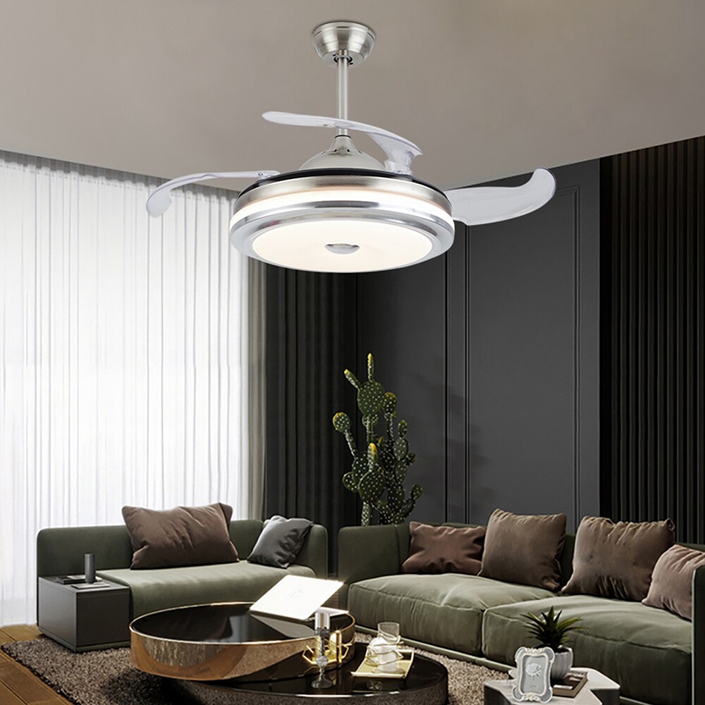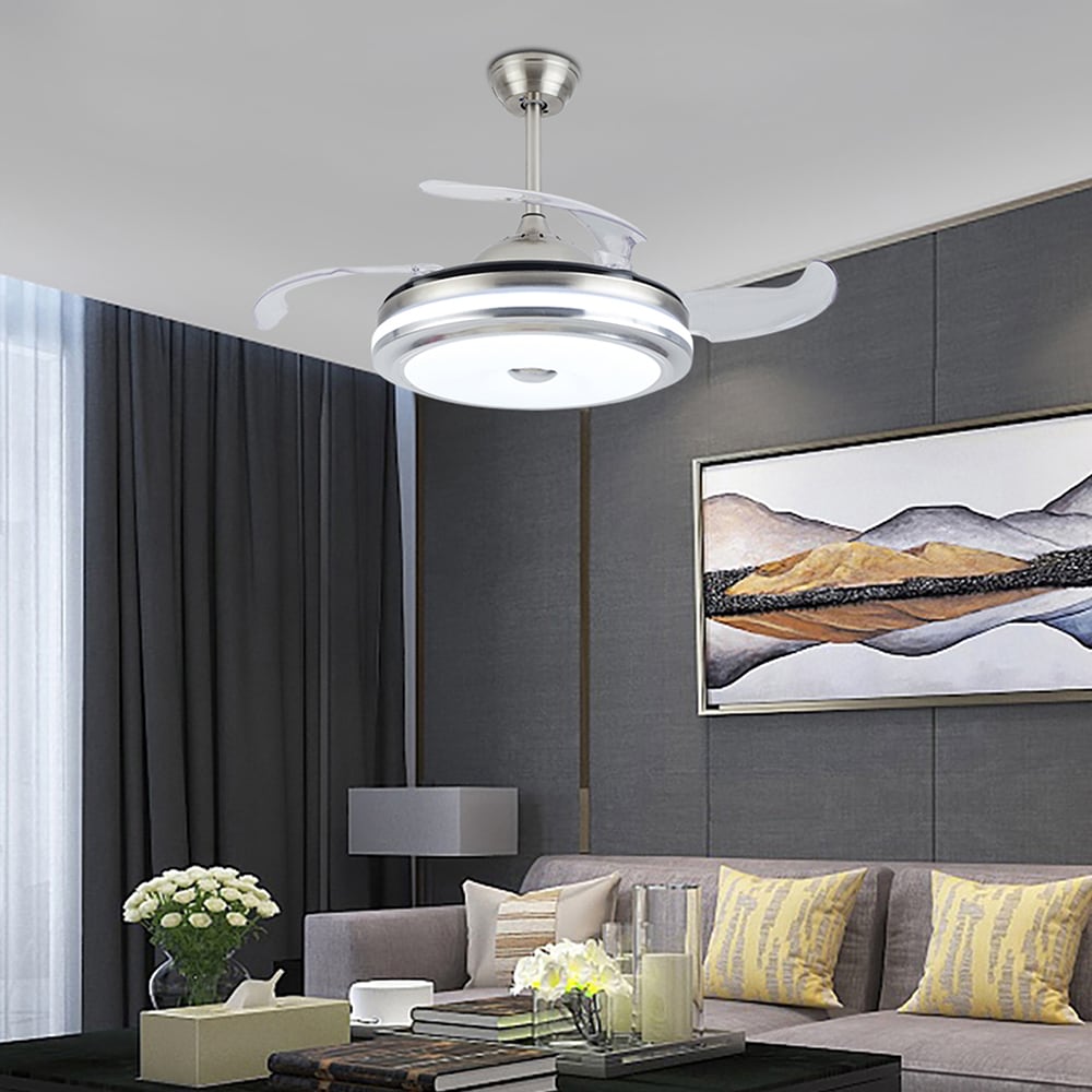 If you are looking for both function and elegance all in 1, this is the fan to get. This invisible fan light combines classic and innovative technology. Speeds Handheld remote control makes it easy to change fan speed and light settings from a distance. The brushed nickel never out of date. Install this beautiful retractable ceiling fan, will of course adding craftsman style and convenience to your living space.