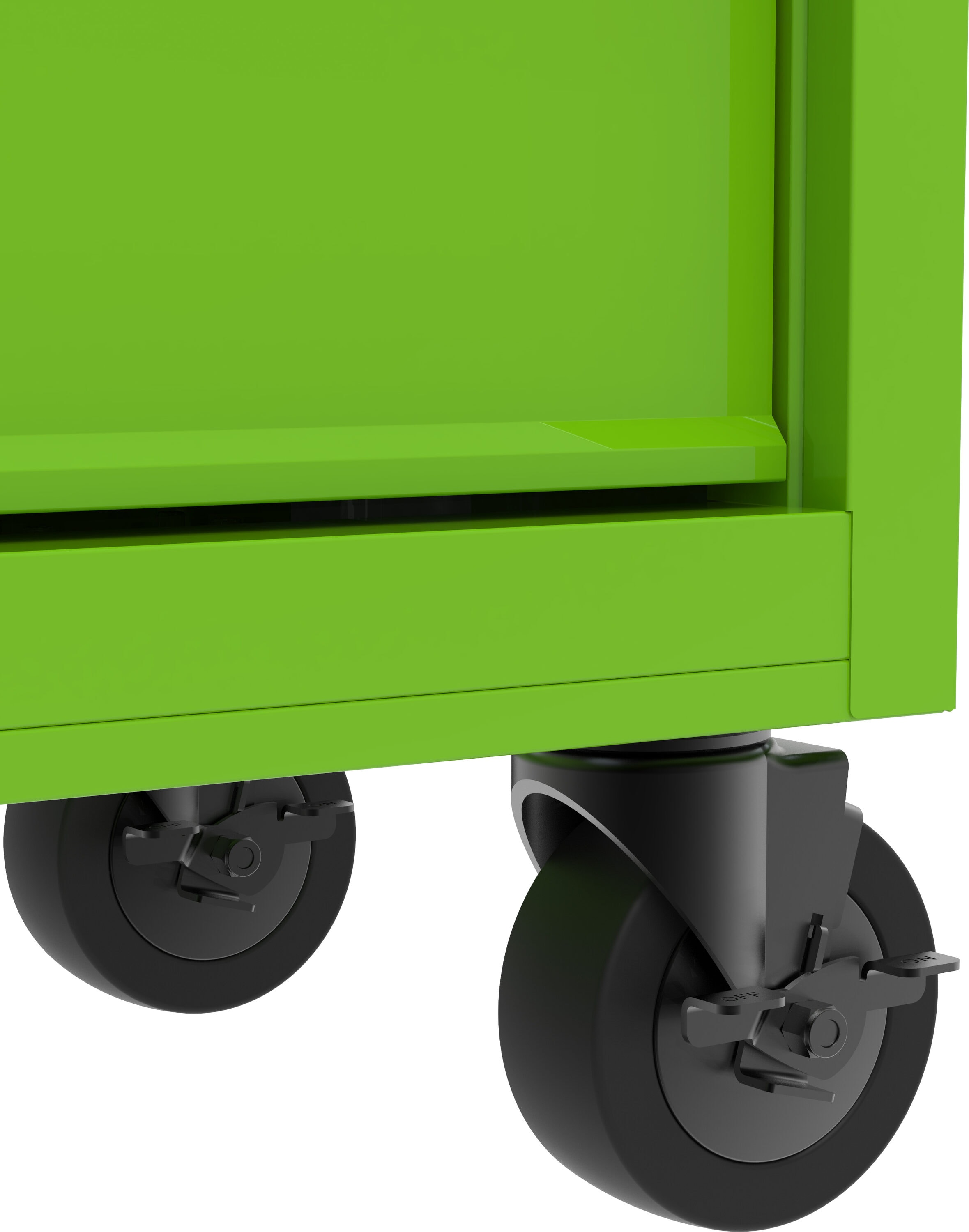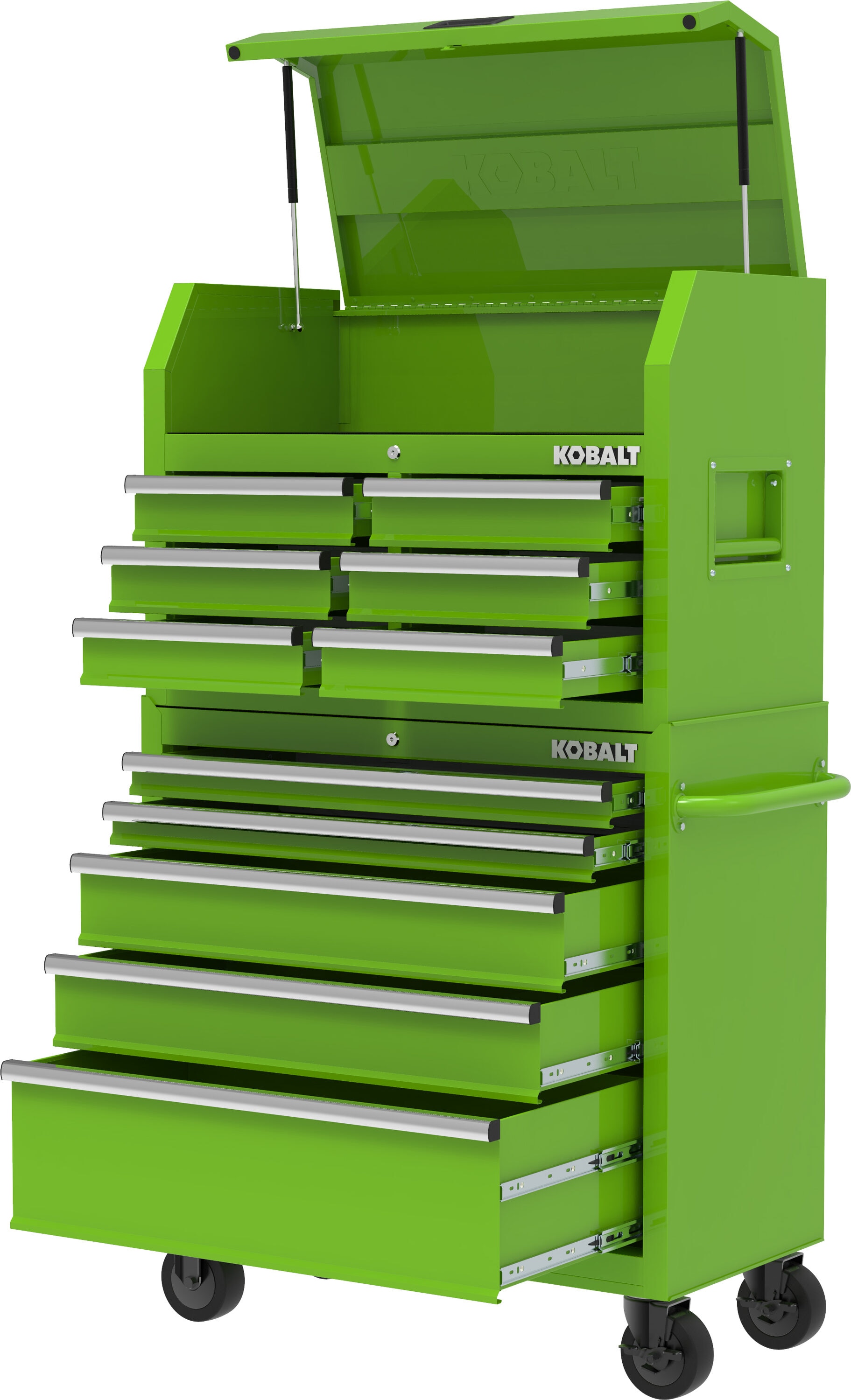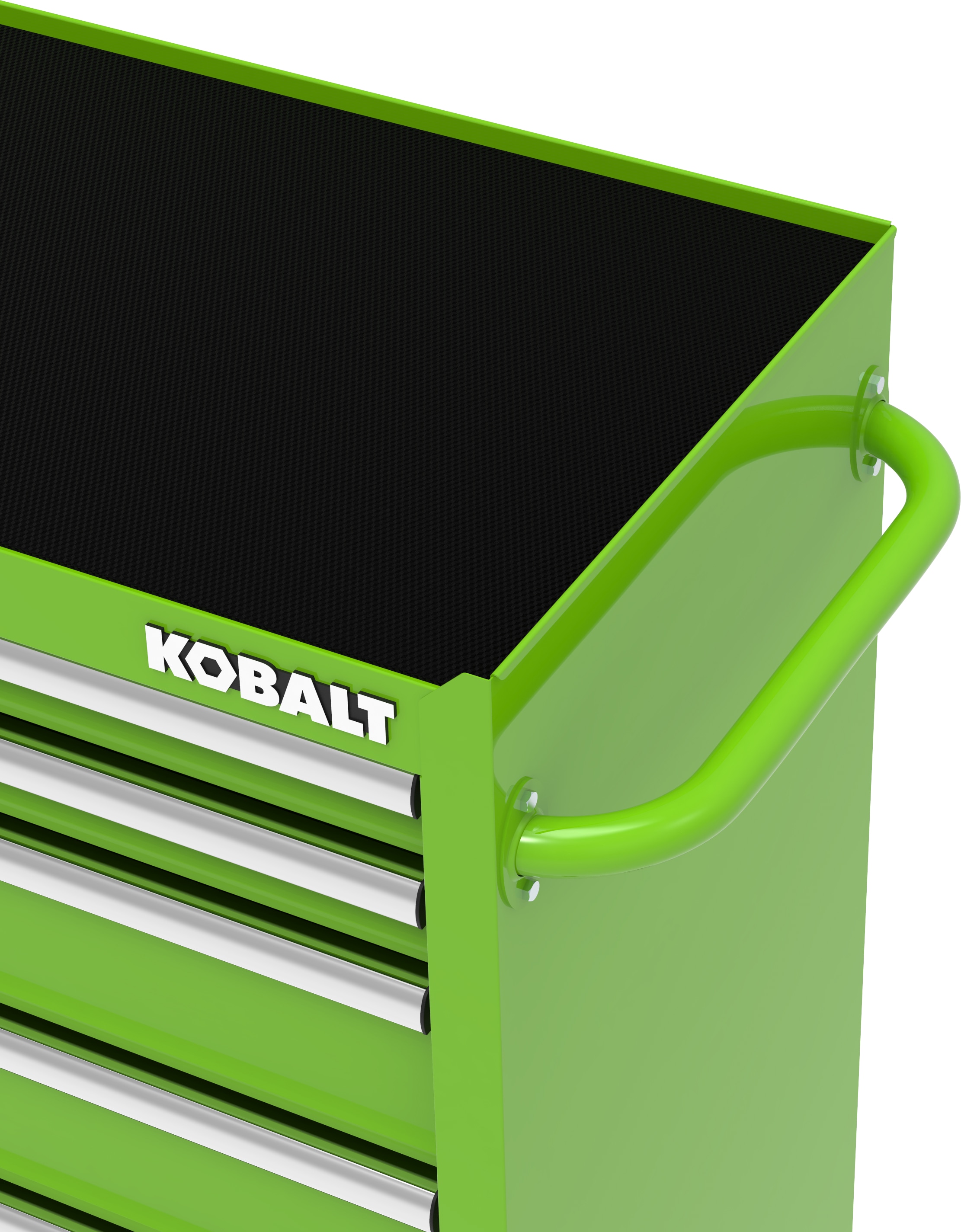 The Kobalt 36-In 5-Drawer Green Cabinet is great for storing and organizing all your tools and hardware. The unit is made from high grade all welded steel construction with a tough, rust-resistant powder coat finish. 5 Drawers are all soft-close full-extension and glide effortlessly on ball-bearing slides that can support up to 100 lbs. An ergonomic handle and 5 in. x 2 in. casters allow you to easily move your cabinet around your workspace. Total weight capacity of the unit is 1,200lbs. The cabinet has lock system for added security. Pair this cabinet with the Kobalt 36-In 6-Drawer Green Chest (item: 5215667, sold separately) to create the ultimate tool storage solution.