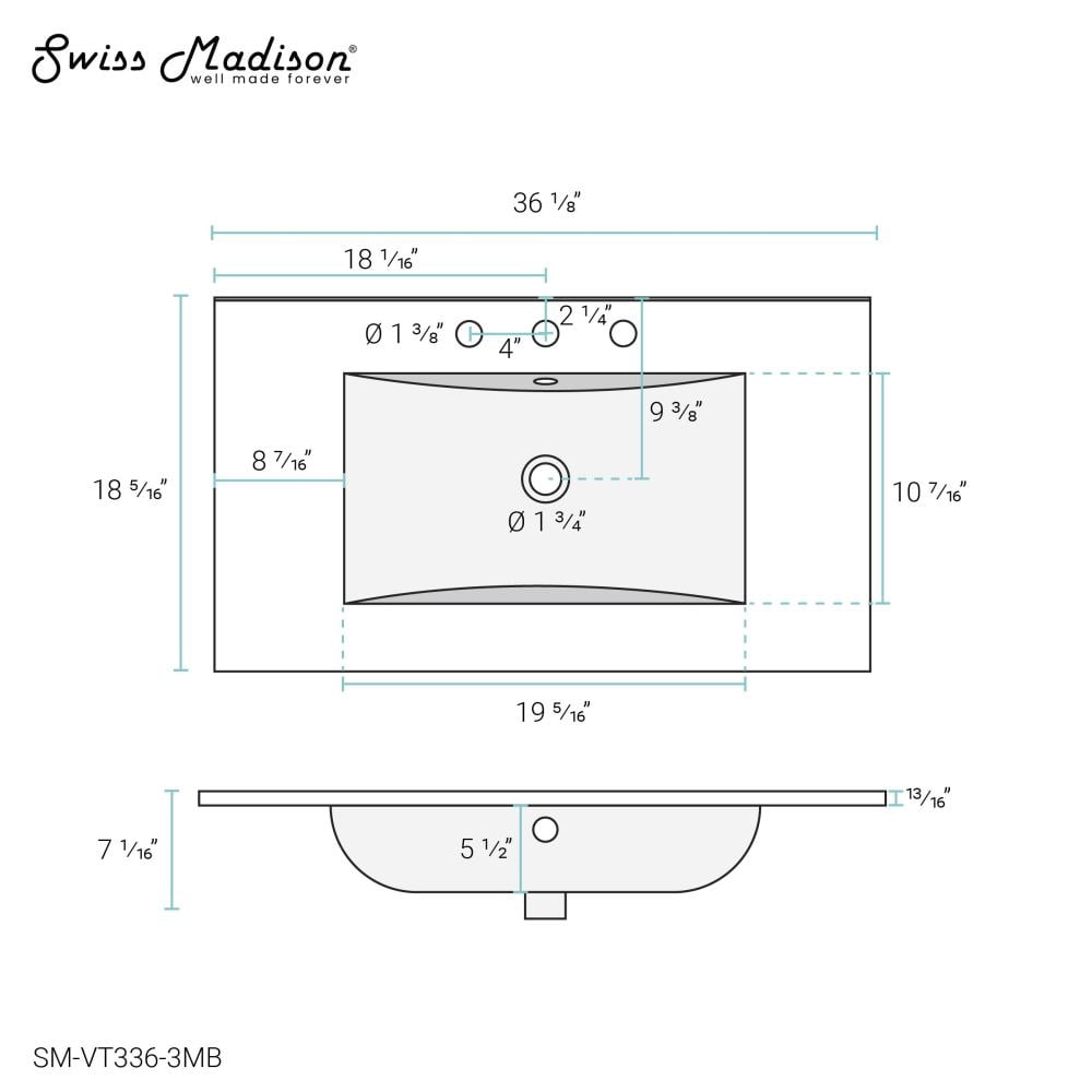 Drop-in installation Durable ceramic material Non-porous, Scratch-resistant Pre-drilled three hole widespread faucet mount Standard 1 3/4” drain opening Basin depth: 5 1/2” Included: Sink Required parts, sold separately: Sink Drain, Drain Trap, Faucet, Water Supply Lines