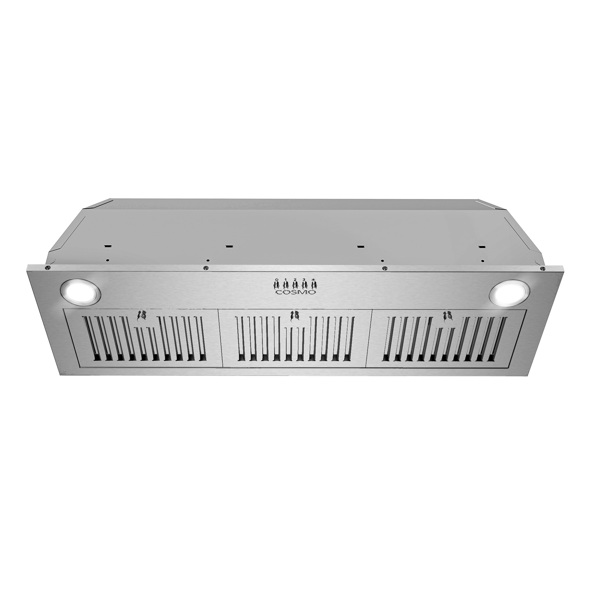 Upgrade your kitchen with Cosmo’s COS-36IRHP-DL insert range hood for a modern and seamless design. Fits easily into a custom cabinet enclosure with premium brushed stainless steel built to withstand high heat, grease, oil and steam. Trap grease and cooking odors with 3 fan speeds and illuminate your kitchen with the built-in energy efficient LED lights for easier visibility. Clean-up is a breeze with easily removable, permanent, dishwasher-safe stainless steel filters. Save money year-round with unlimited uses on these filters. A 3-prong power cord is included for easy installation. A better home starts with Cosmo. Part of the Lumin Collection bringing enhanced functionality and design, offering a well-rounded option for those looking for more convenience and style in an appliance.