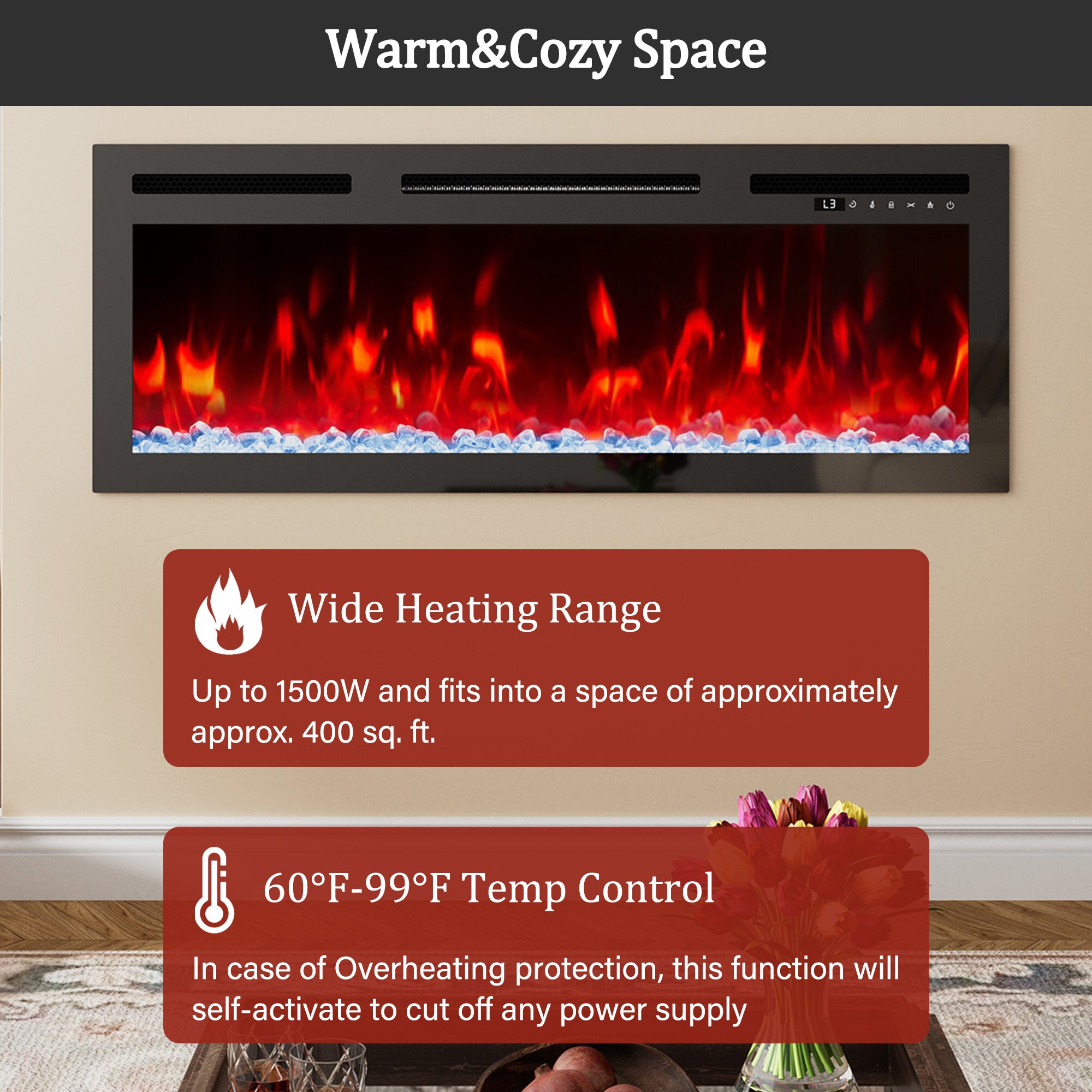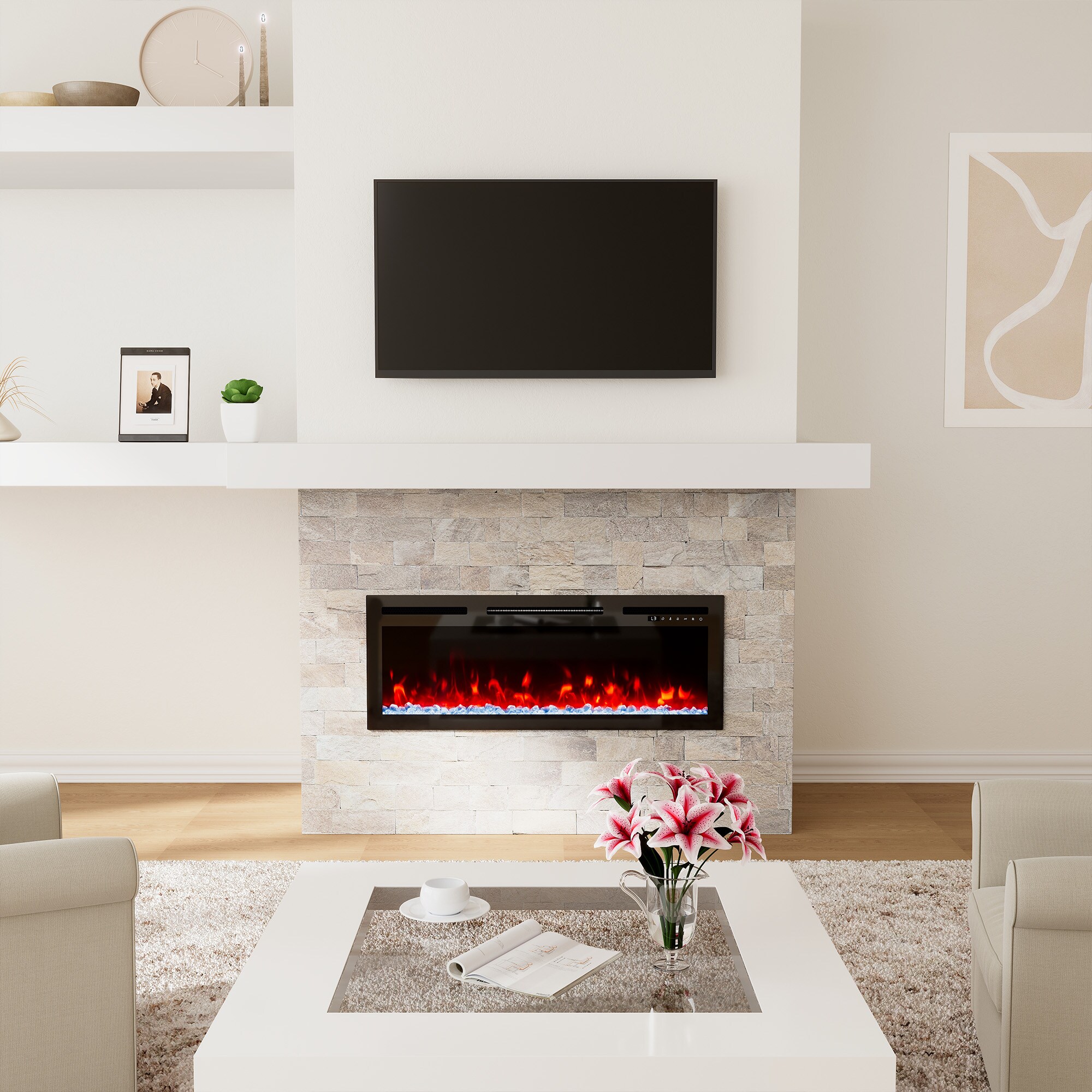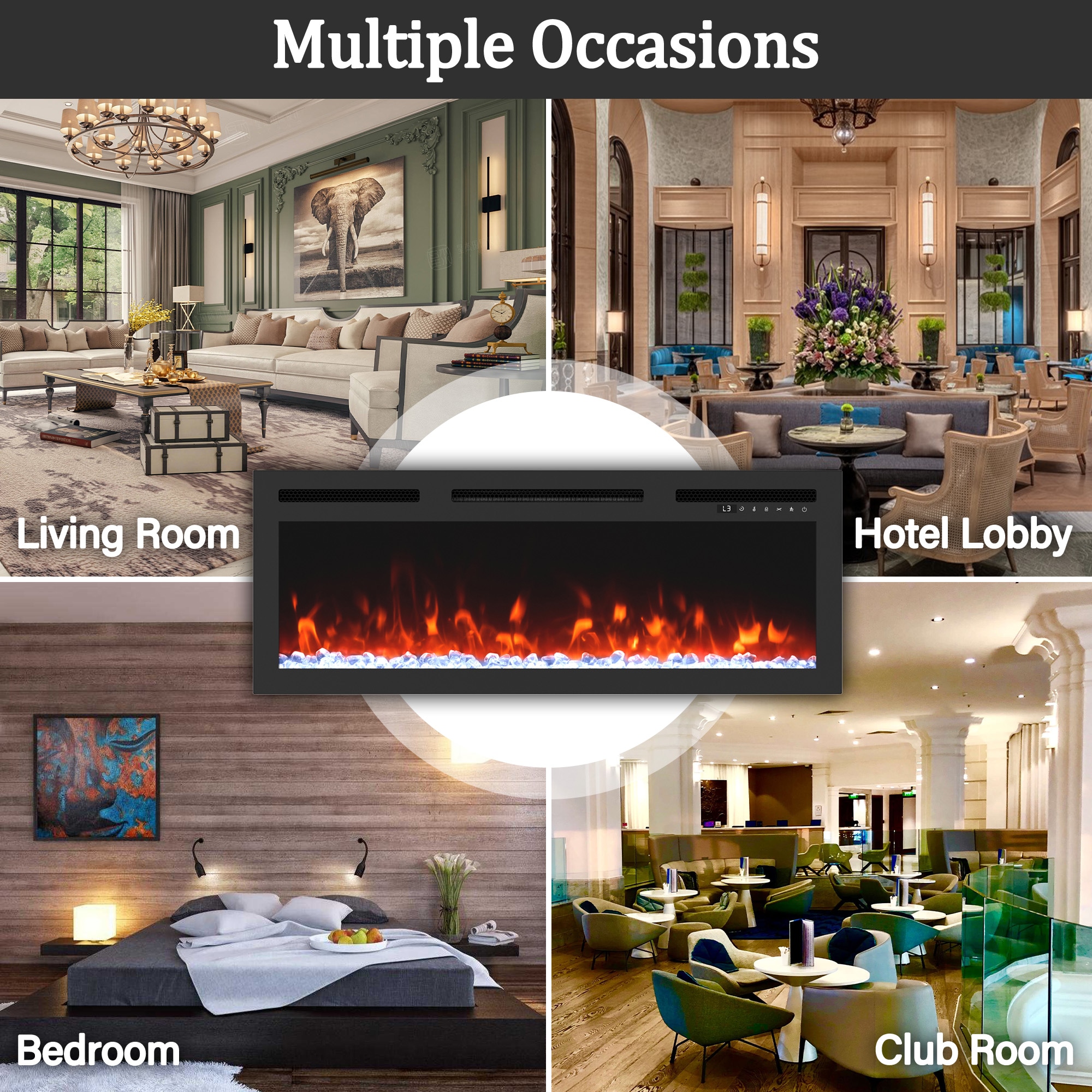 This 36-inch electric fireplace is ideal for insert a TV stand or mantel. There are remote control and touch screen control methods, easy to operate. With a silent motor, it is quiet while working to provide you with warm and quiet entertainment and rest space.