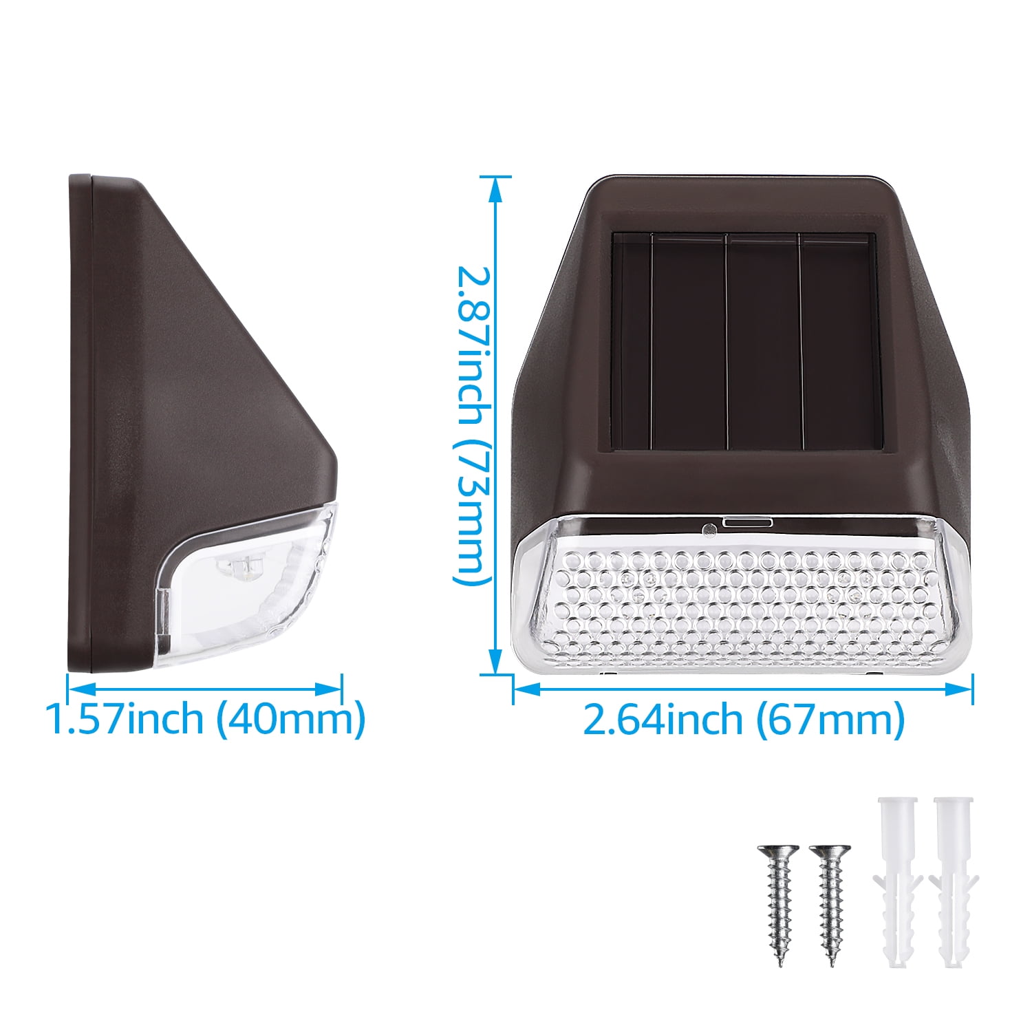 Dusk to dawn mode 12hrs continuous lighting High-quality PS lens Water draining holes design 12 months warranty Auto Lighting Turning on automatically at dusk and then off at dawn, the light’s Ni-MH and built-in solar panel let it stay lit continuously for 12hrs after being fully charged. User-Friendly Easy to install thanks to the included accessories, this solar deck light doesn’t need wiring. The compact design also helps it blend in with its surroundings while the durable PS material extends its lifespan. Warranty This product comes with a 12-month warranty for your rights and benefits as a customer. Specifications: Wattage: 0.12W Solar panel rated voltage: 2V Beam angle: 90° CCT: 4000K cool white Working temperature: -4°F-122°F Waterproof rating: IP44