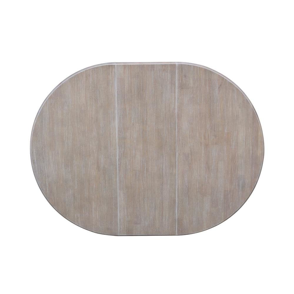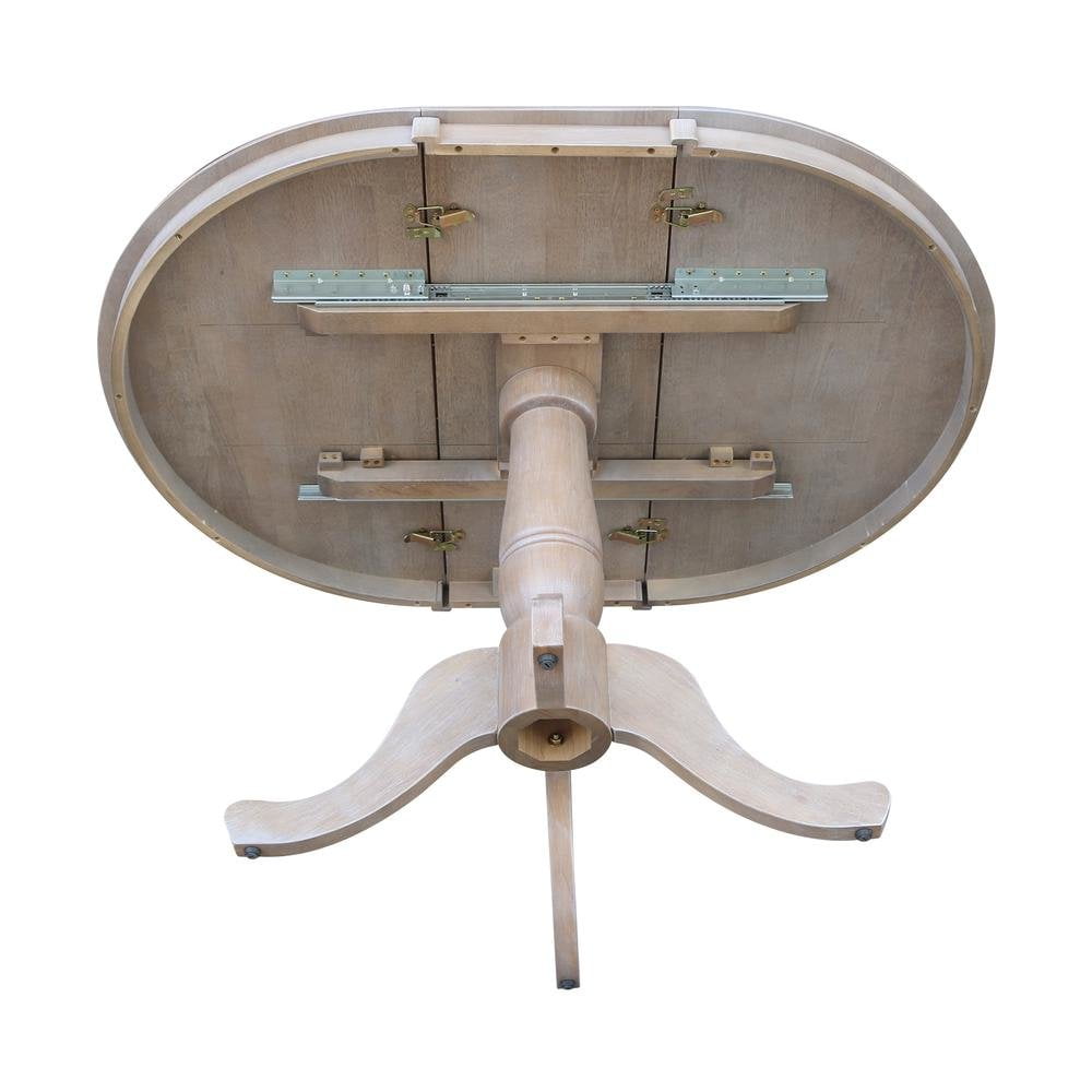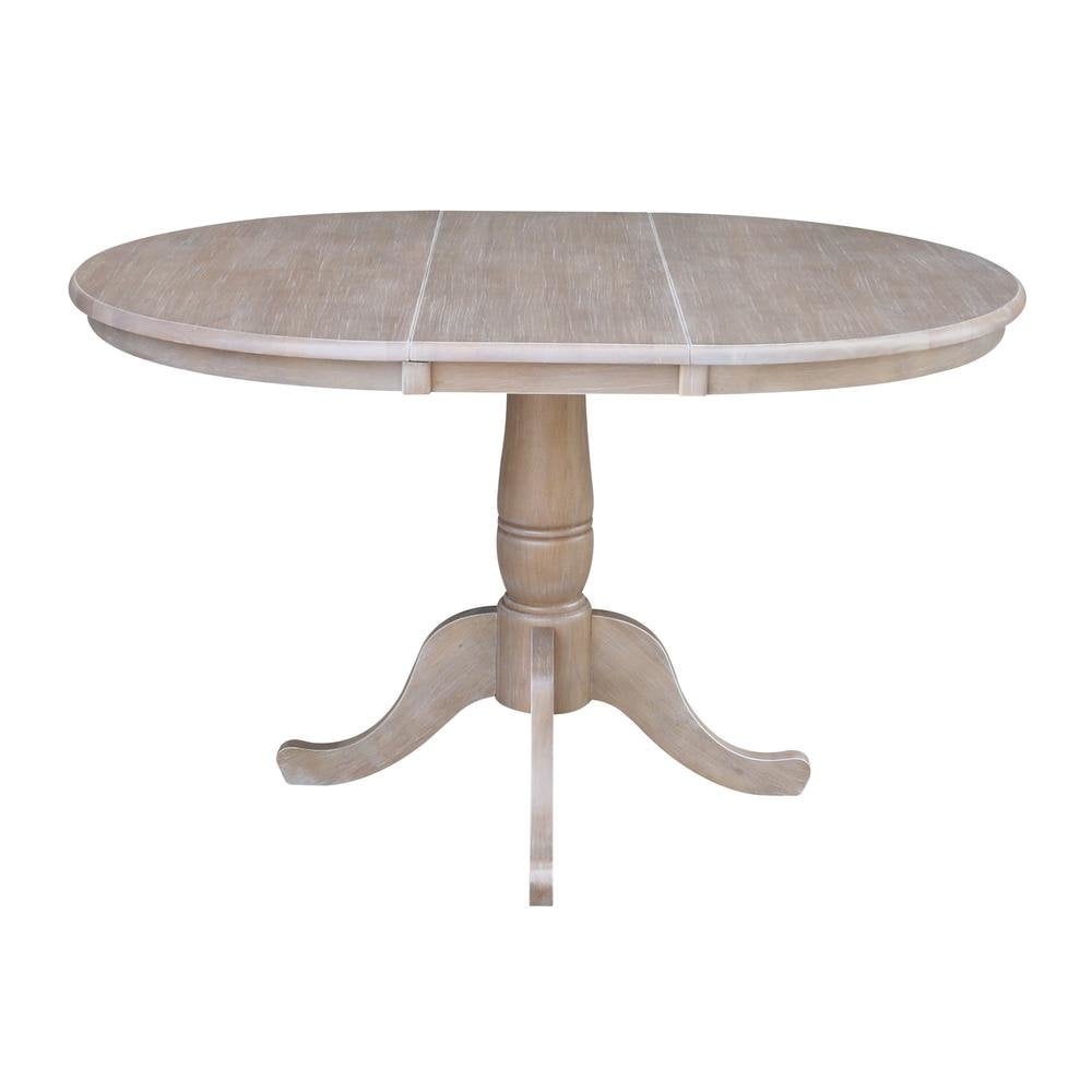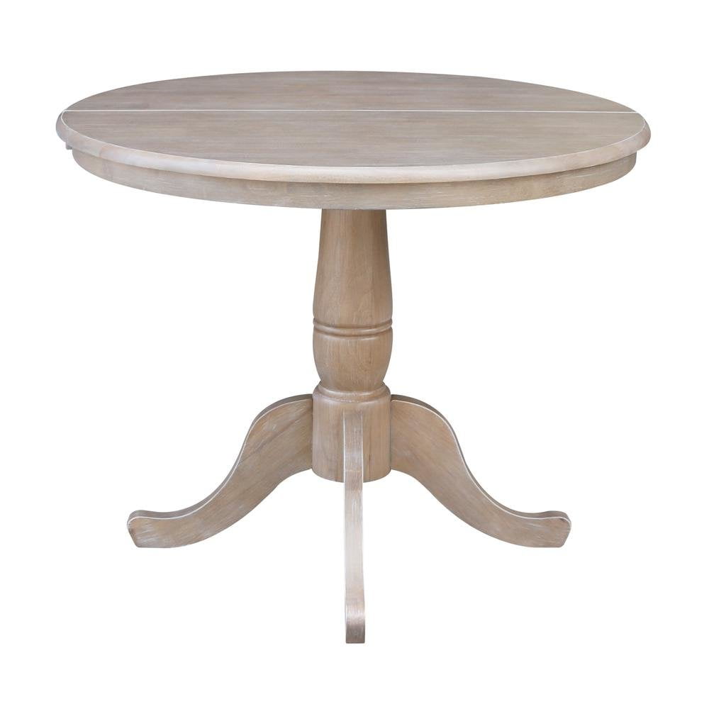 36″ Round Top Dining Table with 12″ Leaf, Washed Gray Taupe