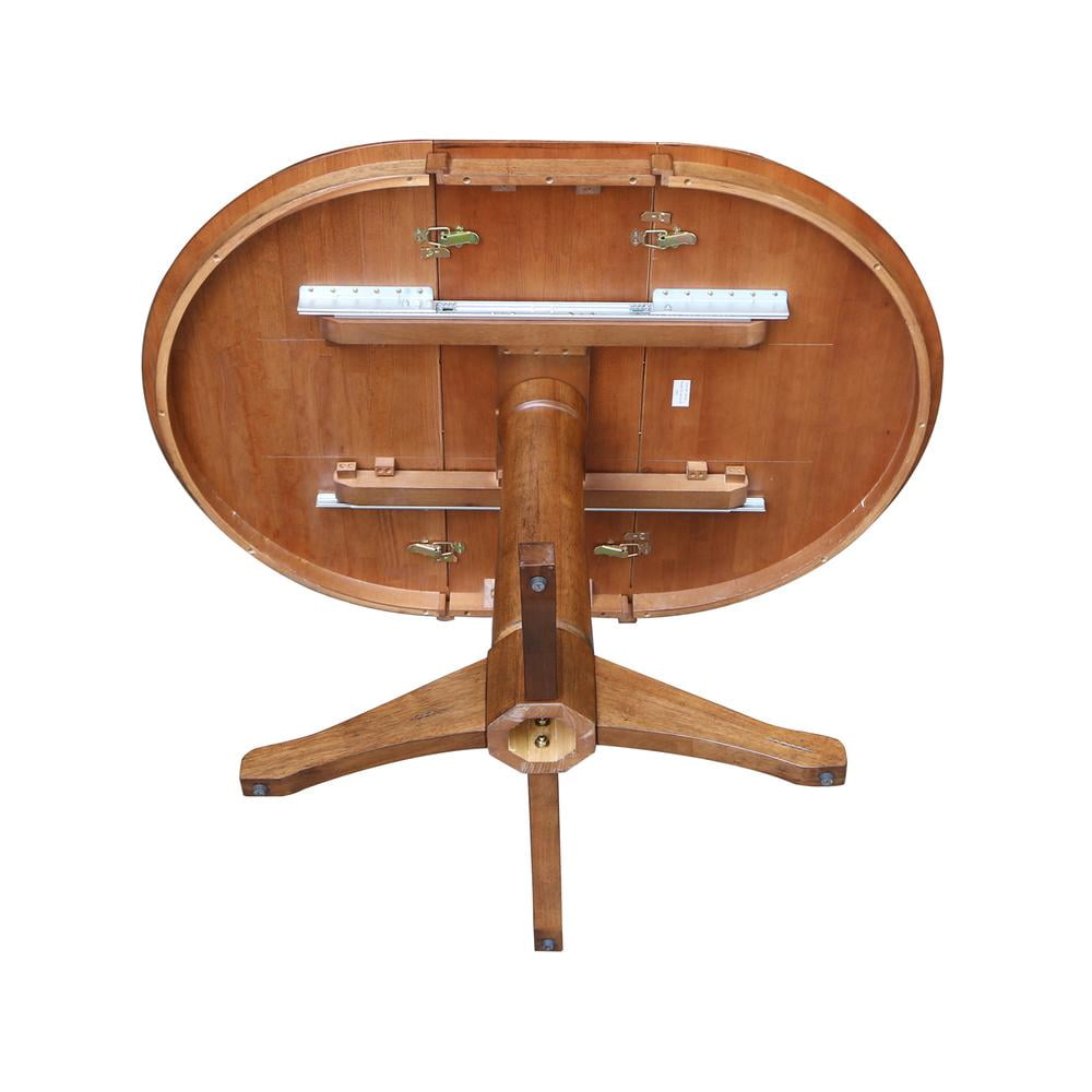 Create extra space when needed in your kitchen or dining room with this extension table from International Concepts. This versatile table is crafted from solid wood and is part of a high-quality collection of wood furniture that will easily complement any décor. Parawood – a hardwood known for its durable, strong, and environmentally friendly nature – is used to craft these traditional tables. This table easily pulls apart on metal glides allowing you to insert a 12-inch leaf, adding to your dining space and accommodating additional guests. Pair with a wide variety of chairs and stools from the International Concepts seating collections to create the perfect dining experience! Whether you are enjoying a cup of coffee, a daily lunch, or a Sunday dinner, you will have this extension table to appreciate for years to come.