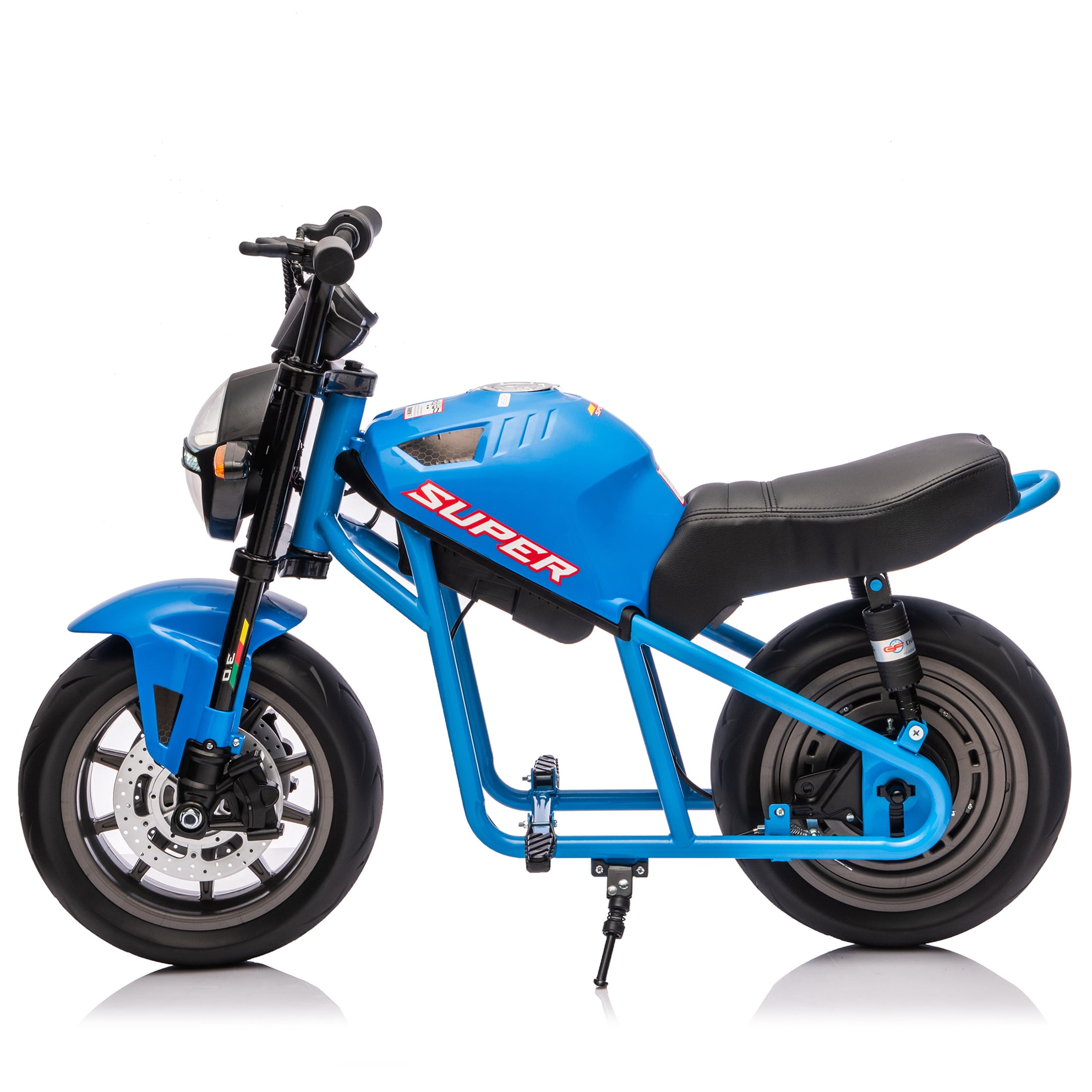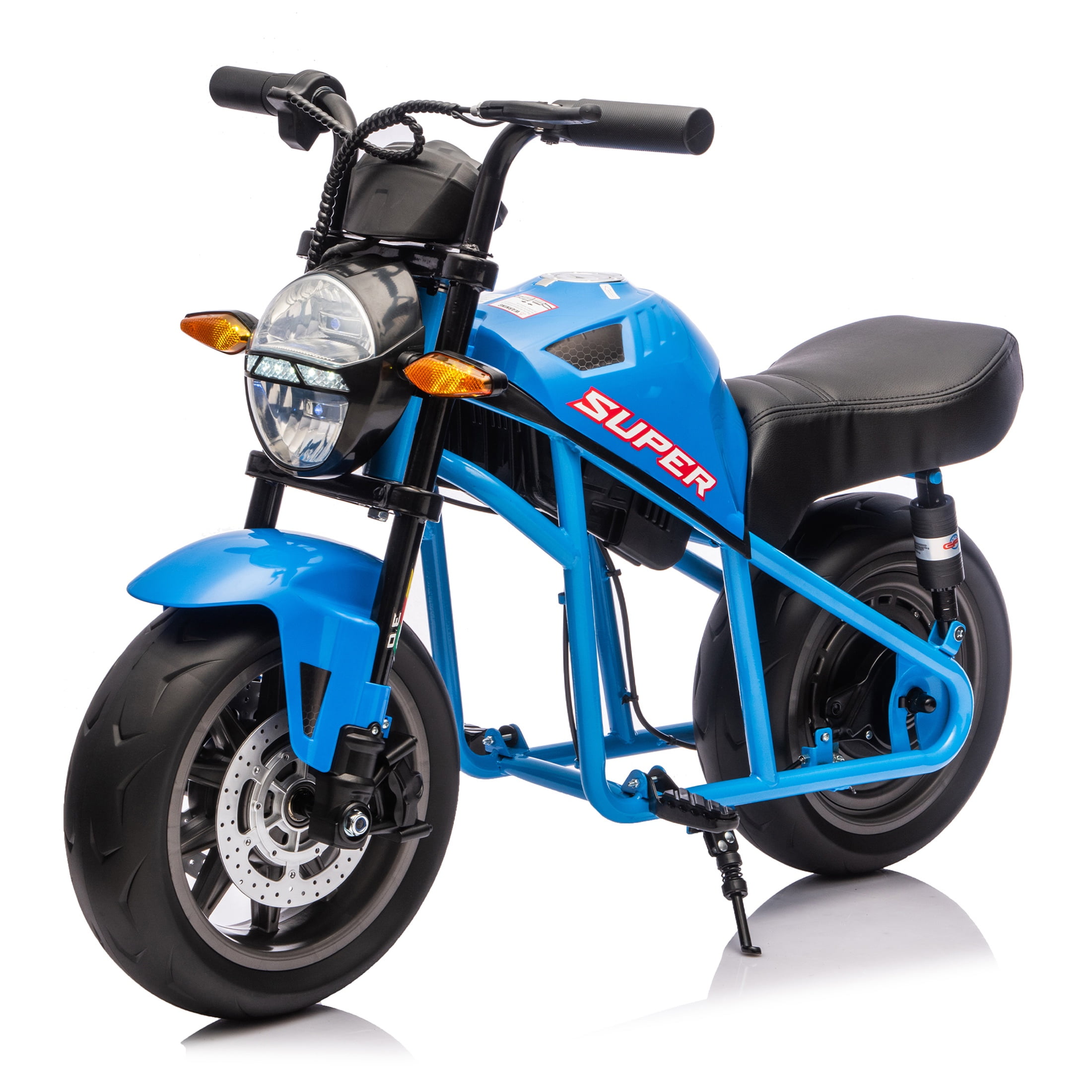 【Cool Exciting Motorcycle for Big Kids】:The 36V electric motorcycle has a cool and classic design. Features key ignition, roaring electronic horn, dazzling LED headlights, and real-time battery indicator for immersive rides. Detachable training wheels ensure stability for new riders (ages 13+). 【Powerful 36V Performance & Extended Runtime】: Equipped with a 350W brushless motor and UL-certified 36V 7.5AH lithium battery for 60-120 minutes of continuous fun. Achieves a top speed of 13.6 MPH (22 km/h) with stepless speed control, tackling inclines and rough terrain effortlessly. 【Safety Engineered for Peace of Mind】: ASTM F963 & ASTM F2641 certified with front spring suspension, pneumatic tires, and mechanical disc brakes. Supports max load 132 lbs and includes parking brake lock for secure rides. 【Premium Comfort & Durable Build]: PU leather seat with high-density foam padding ensures all-day comfort. Rugged metal frame and PP-material tires provide all-terrain durability. Ergonomic handlebars with non-slip grips enhance control. 【Ultimate Adventure Gift for Teens】: The perfect electric dirt bike for boys and girls 13+. Sparks outdoor exploration and confidence! Ideal for birthdays, Christmas, or other special occasions. Easy assembly with included charger and manual.