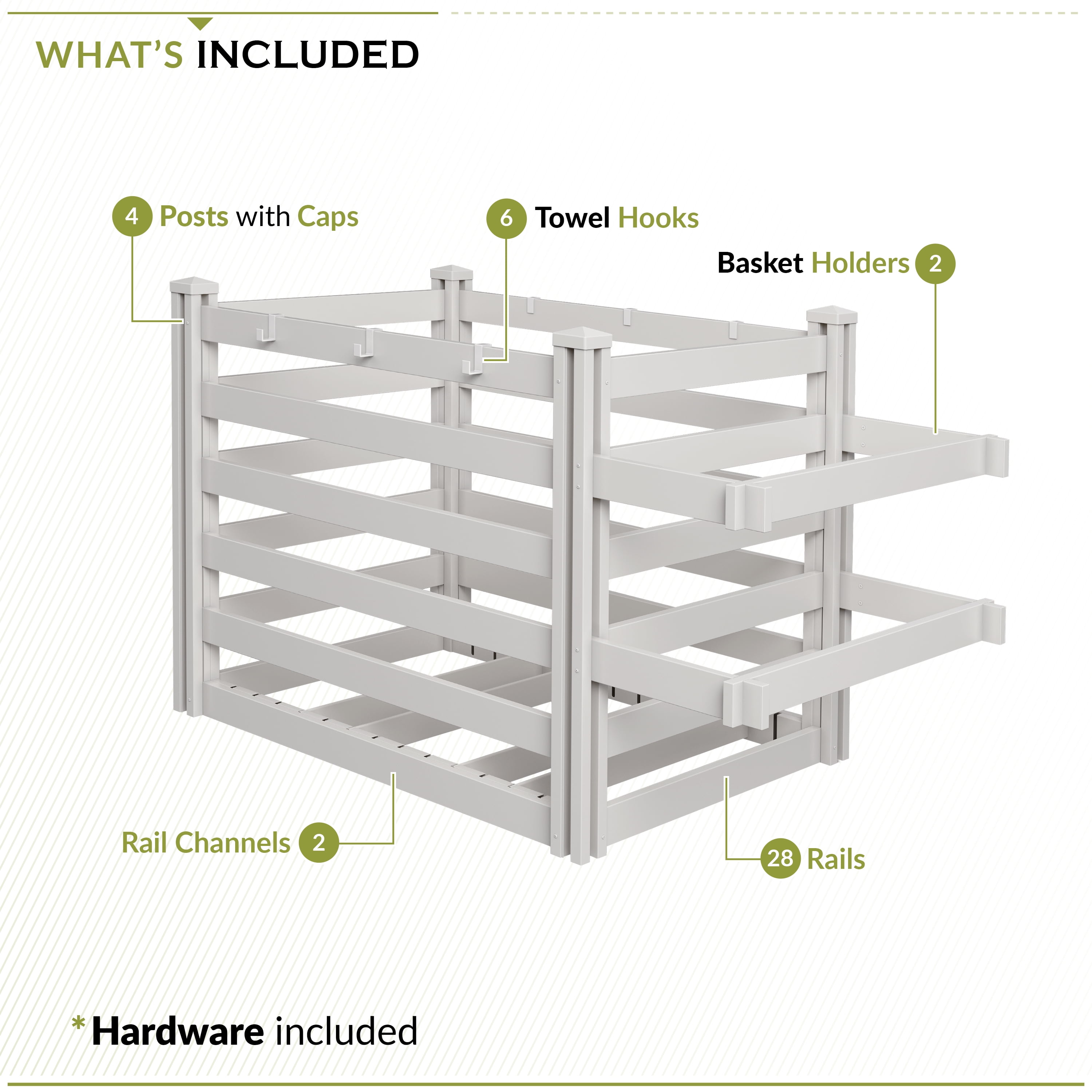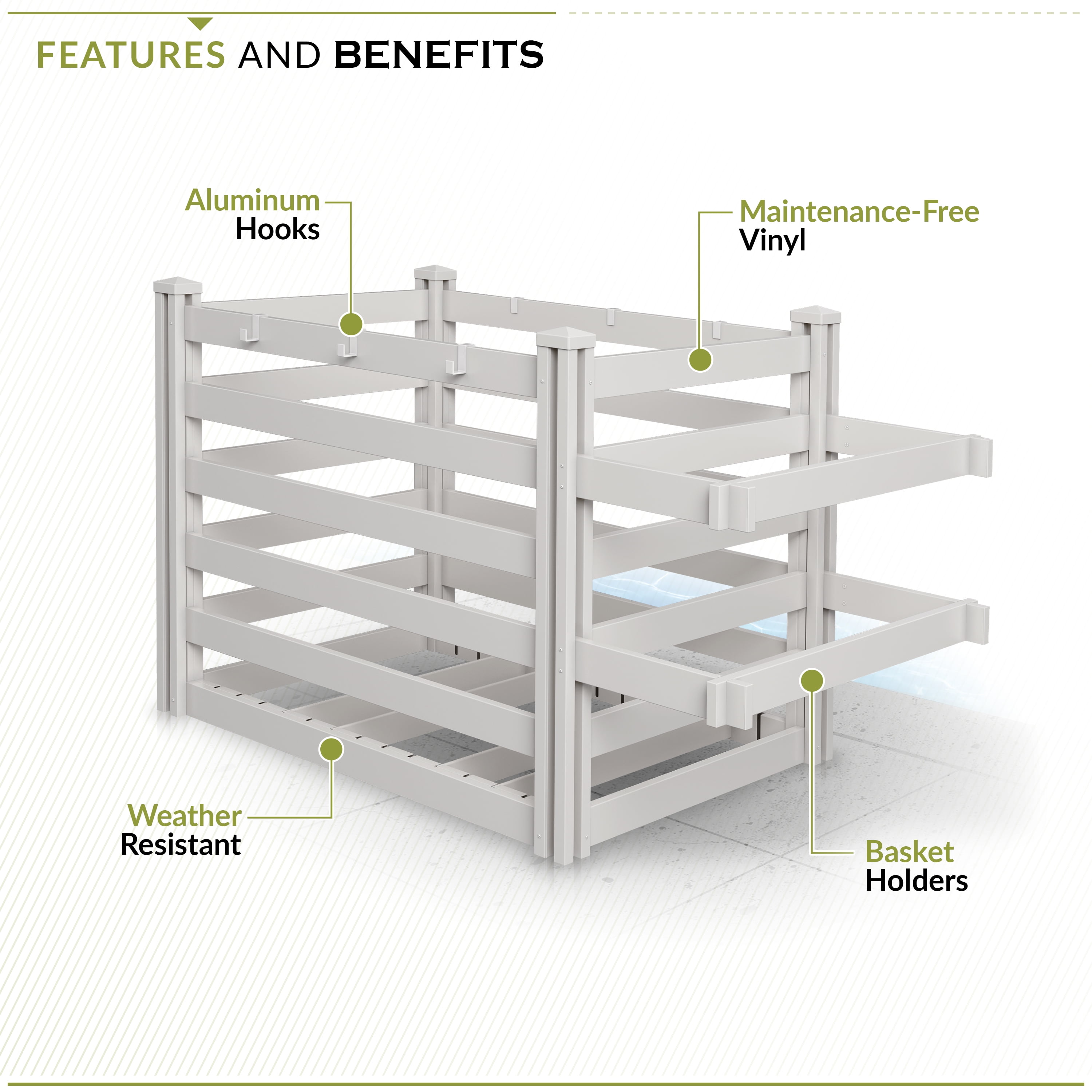 PERFECT FOR POOL TOY STORAGE: Great for the pool, lake, or beach, your poolside organizer is a great and simple solution to store items such as swimming rings, noodles, balls, floats, goggles, and beach towels. BASKETS ARE NOT INCLUDED: Baskets must be purchased separately. Baskets shown in images are the Sterilite 16268006 Large Ulta Storage Basket. EASY TO ASSEMBLE: Using only a power drill, this freestanding outdoor toy storage is easy to assemble in approximately 60 mins DIMENSIONS: Once assembled, your pool storage bin will measure 36in W x 64in L x 38in H. Without the basket holders, this pool equipment enclosure measures 36in W x 44in L x 38in H. Please note that BASKETS ARE NOT INCLUDED. PREVENTS WATER BUILD UP: Made from premium grade, weatherproof vinyl and a slatted base, our vinyl outdoor deck caddy does not absorb water. It’s virtually maintenance free and will last longer than mesh organizers. TONS OF STORAGE SPACE: This freestanding pool toy storage organizer has plenty of room for rafts, noodles, and large pool toys. Keep goggles and smaller toys organized with basket holders. Includes 6 moveable hooks to hang towels or other pool toys. EXCEPTIONAL CUSTOMER CARE: Backed by a 10 year warranty, we stand by our poolside organizer and are confident that you will be satisfied for years to come. For any issues, contact Zippity Outdoor Products.