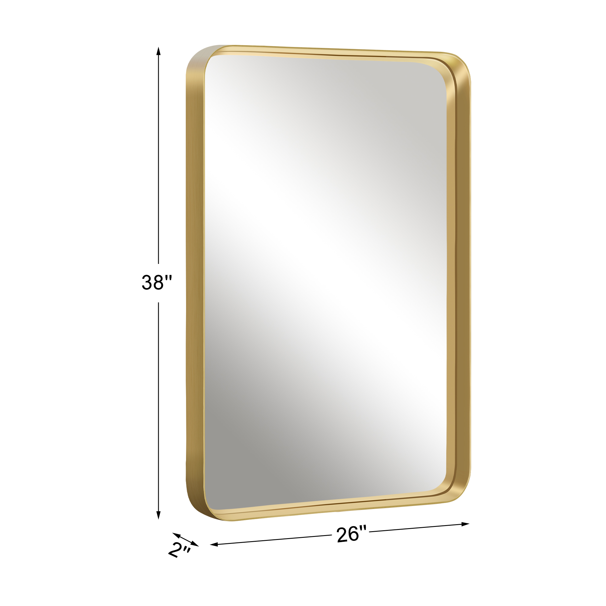 38″x26″ Aluminum Alloy Wall Mount Rounded Corner Rectangular Mirror,Gold
