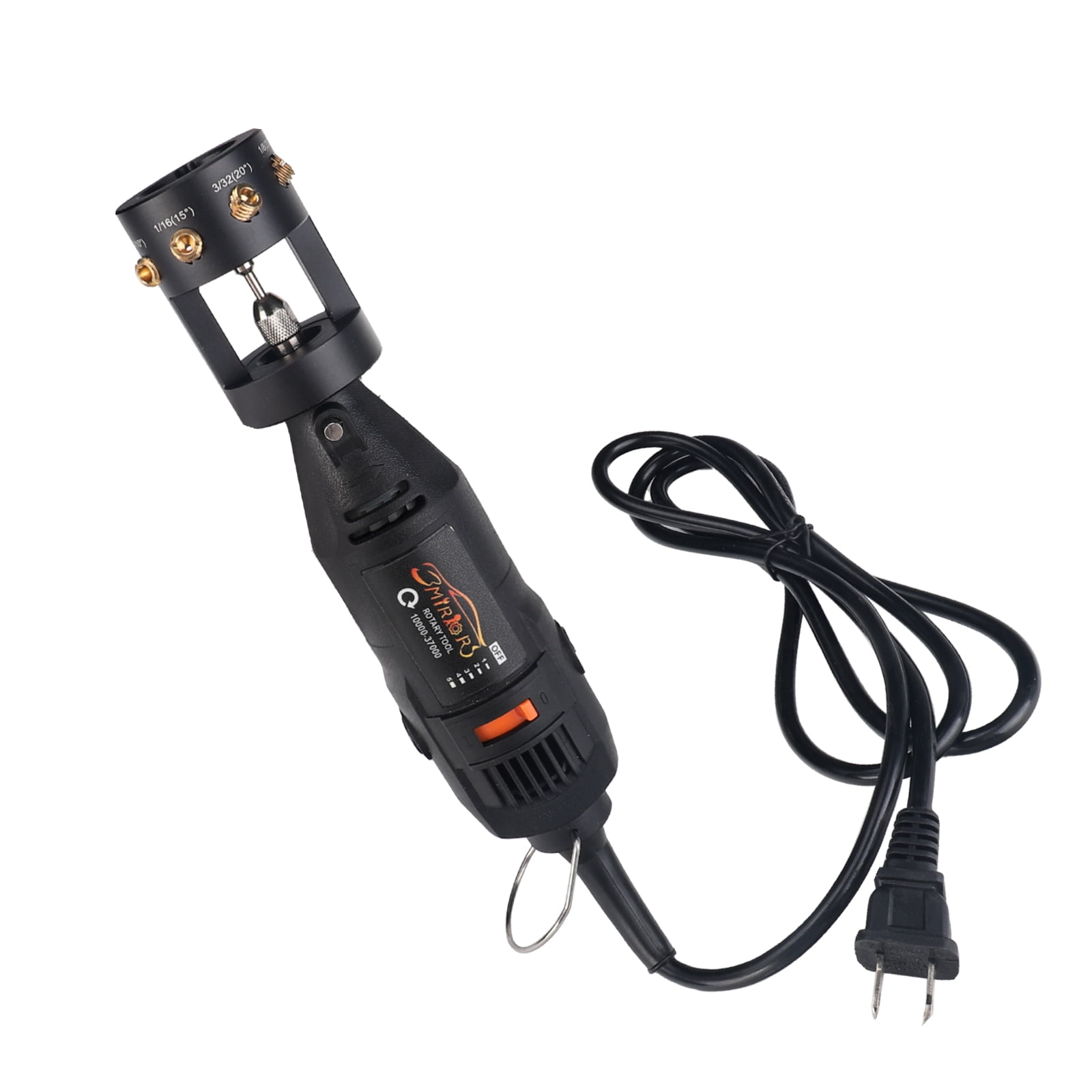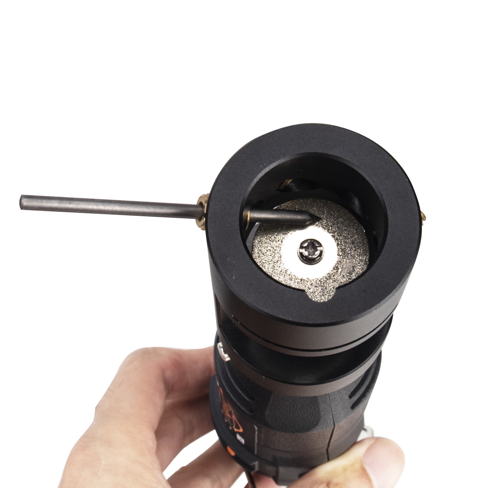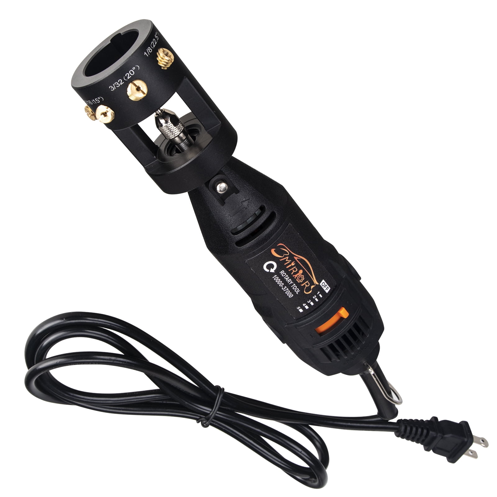 [Size] 0/40, 1/16″, 3/32″ and 1/8″ (1mm, 1.6mm, 2.4mm, 3.2mm). [Angle] 22.5°, 20°, 15° and 10° (45°, 40°, 30°, 20° Tips Angle respectively) [Fitment] It fits most Rotary Tools with a 3/4-12 thread including Black and Decker, Milwaukee, Bosch Dremel, and More. [Cut Off Slot] For cutting off blobs if you’ve had a rare “whoopsie”. [Diamond] Our diamond discs are double-sided for longer life, flip, and you’re on your way! [Brass] This comes with a set of brass knurled preset at certain degrees for different sizes of tungsten, which you can customize. [Rotaty Tool] It is 110V/220~50/60Hz,180W. 10000-37000RPM/min; This comes with a 5-Speed control and US charger which can be durable used for many years.