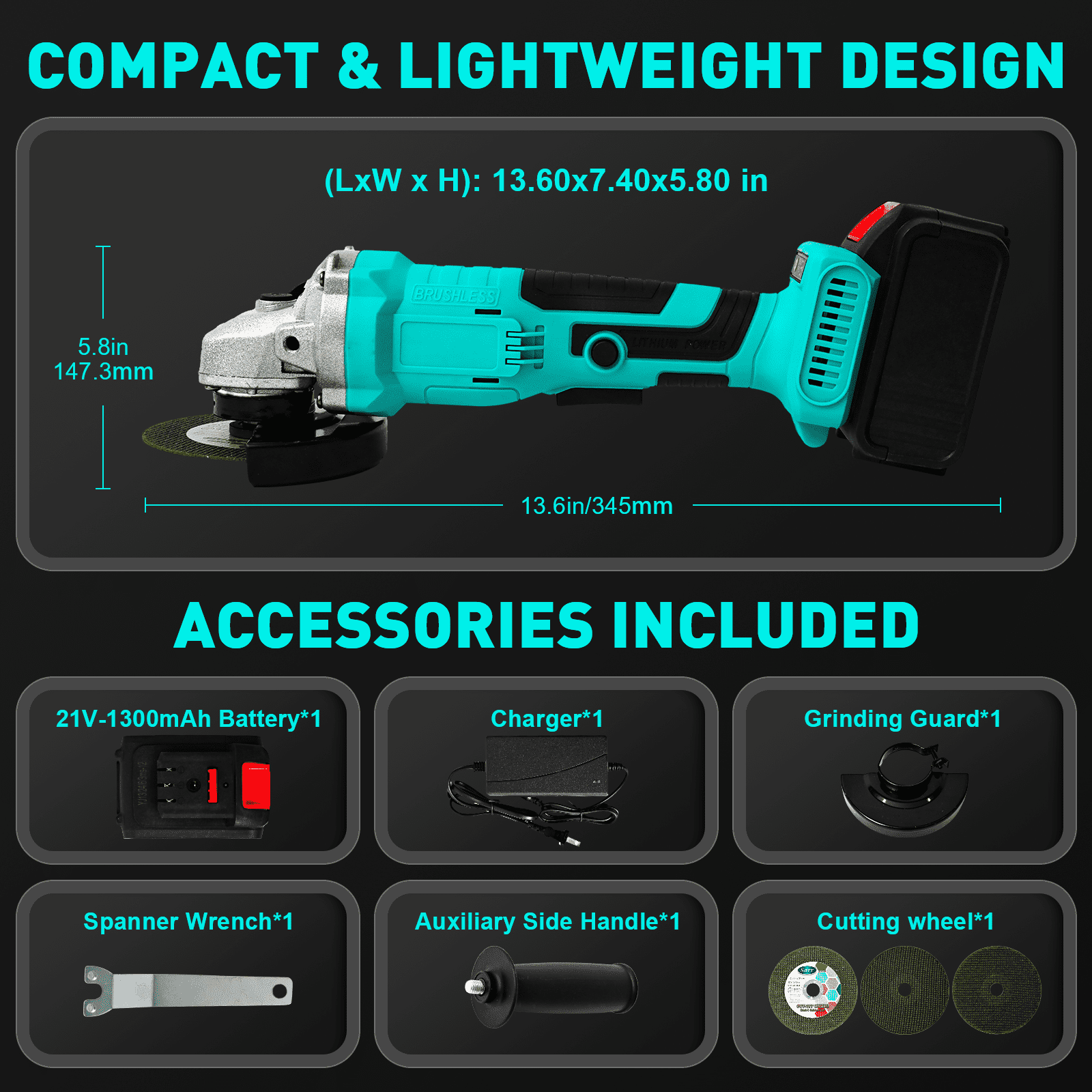4″ 21V 1500mah Electric Cordless Angle Grinder,Angle Grinder Tool Cutting Tool with 1 Batteries,Charger, and 3 Cutting Discs for Cutting, Polishing, Grinding, and Rust Removal