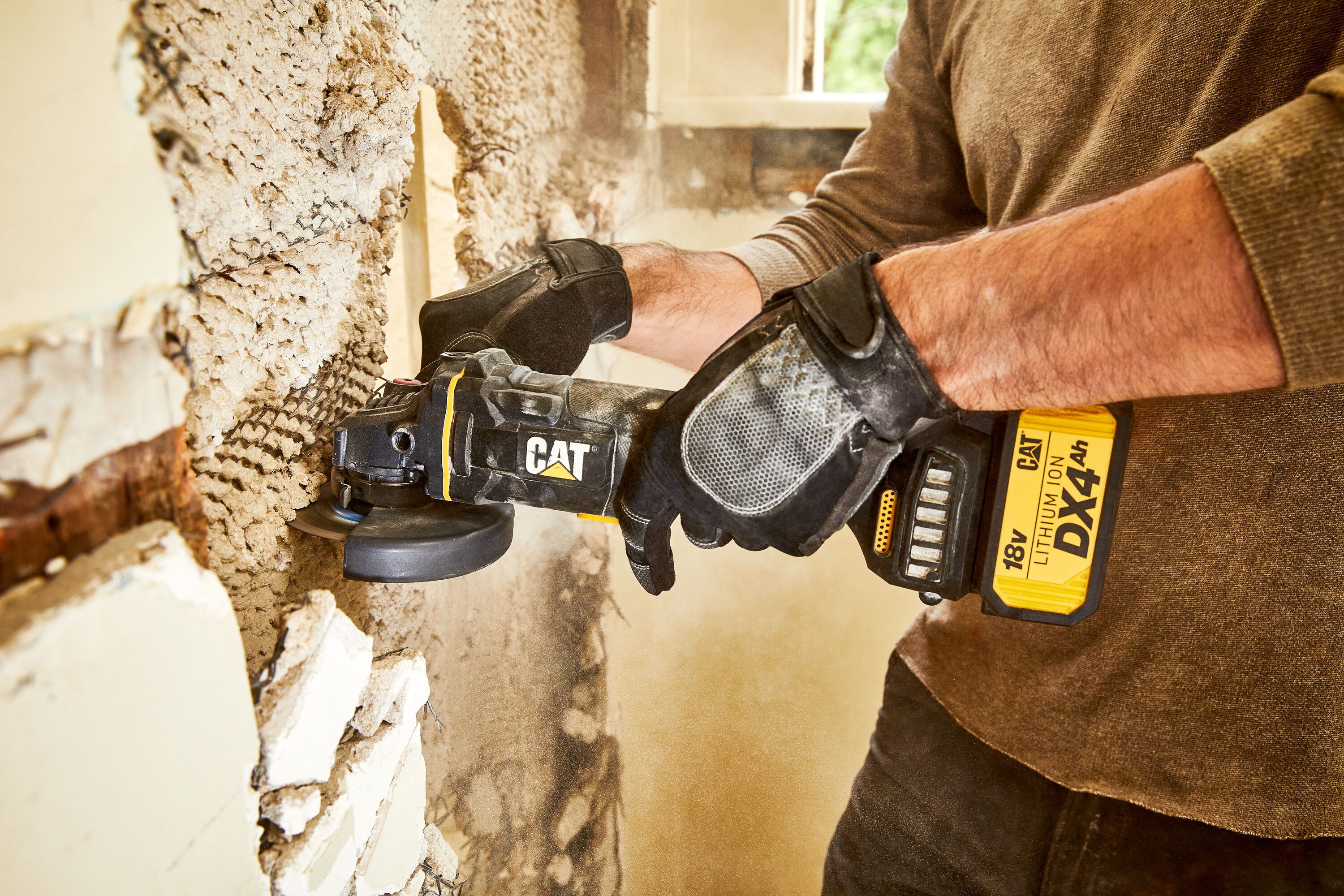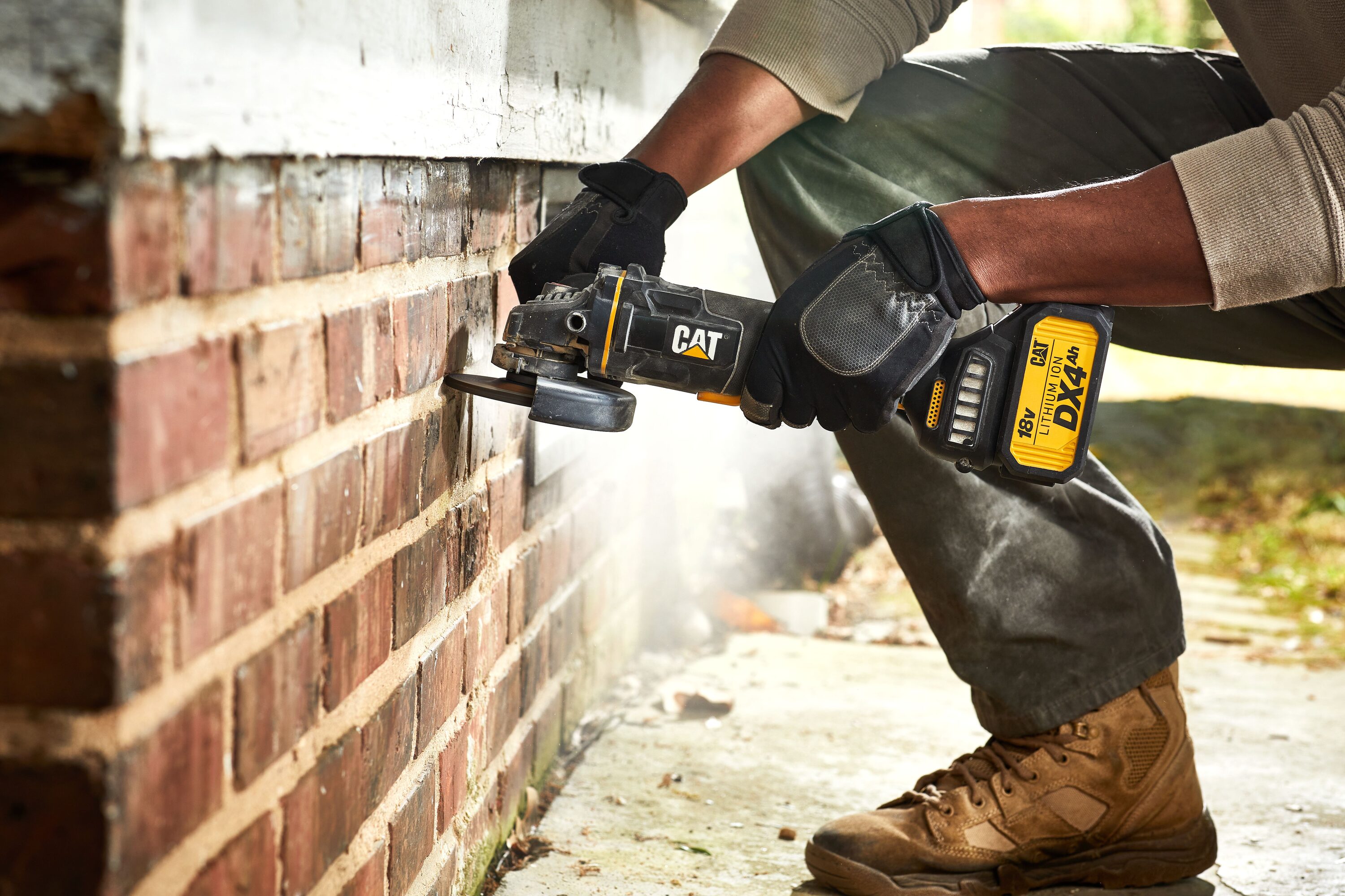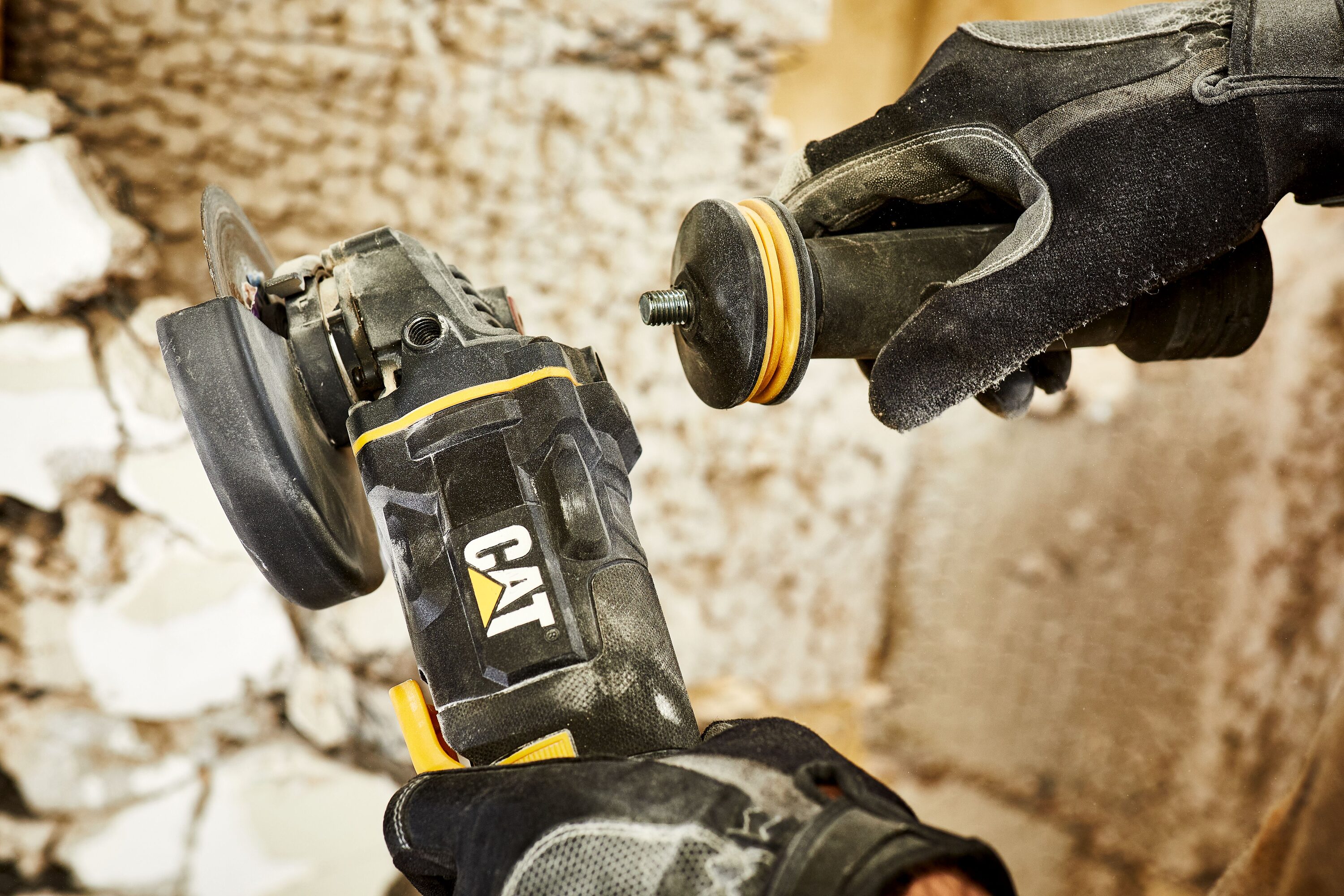 The Cat® DX312B 18V 1 FOR ALL 4.5” Cordless Angle Grinder with Brushless Motor uses advanced technology and design to enhance power and performance for pro-grade cutting and grinding projects. Supported by a High-Efficiency Brushless Motor, this angle grinder delivers 25% more power, 50% longer run time, and 10X longer life than brushed-motor grinders. Brushless technology also helps the tool run cooler and quieter. With enhanced power, this cordless grinder has a no-load speed of 8,500 RPM to cut and grind tile, metal, concrete, and masonry materials. Mesh filters help extend equipment life by preventing dust and other debris from entering the tool and damaging internal components. The tool is also equipped with Overload Protection to protect against damage under abusive applications. Prolonged use is made comfortable with the angle grinder’s ergonomic design that features a slim body, an anti-vibration 3-Position Side Handle for reduced fatigue, and a Textured Overmold for enhanced grip. Save time with the tool-free guard adjustment to quickly modify guard positioning. Includes stackable, easy-transport Slide Lock case with innovative locking and durable construction to defend against dust, water, and impact damage. Power the angle grinder with any battery that’s part of the Cat® 1 For All platform—including the 2.0Ah Li-Ion, 4.0Ah Li-Ion, or 5.0Ah Graphene models. For optimal performance and run time, choose the 5.0Ah Graphene battery over lithium-ion options. The 1 For ALL battery platform is a rechargeable, interchangeable system that supports all tools within the expansive 18V cordless power tool line from Cat®.