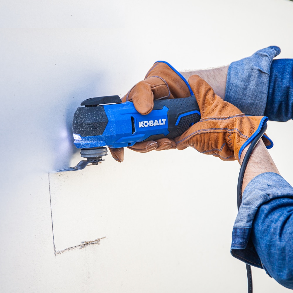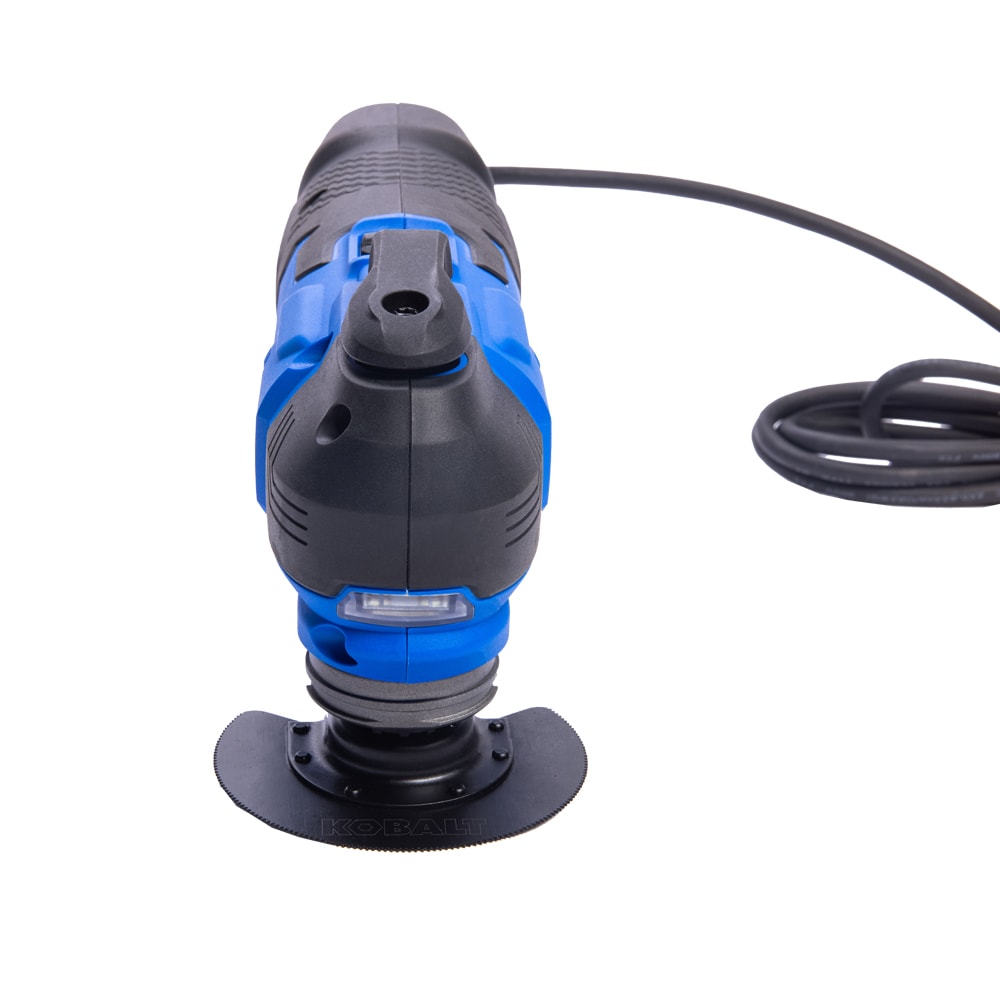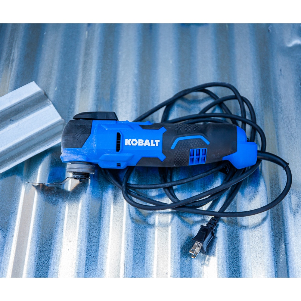 Whether you need a tool for sanding or cutting, the Kobalt 4-Amp Oscillating Multi-Tool features new innovative technology that highly reduces the vibration and noise for the ultimate user experience. The tool also features an 6-position variable-speed dial to control the speed of the tool. The speed can be set between 11,000 and 18,000 oscillations per minute so the user can pick the correct speed for the application. The blade oscillates at +/-1.8 degrees for a combined oscillating angle of 3.6 degrees for superior cutting performance. A 10 foot long durable cord is included with this tool for easy maneuverability around the job site. The tool-free blade changes allows the user to quickly change blades to complete the next task on their to-do list. The center pin can be removed to easily and quickly adapt to star lock blades. The kit includes a soft bag, (2)wood blades, (1) bi-metal blade, (1) scraper blade, (1) flush-cut blade, and a sanding pad along with (7) 60/120/180 grit sand papers.