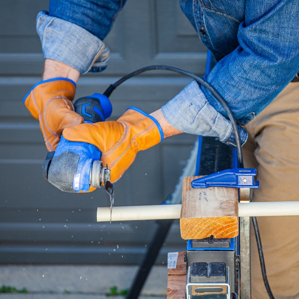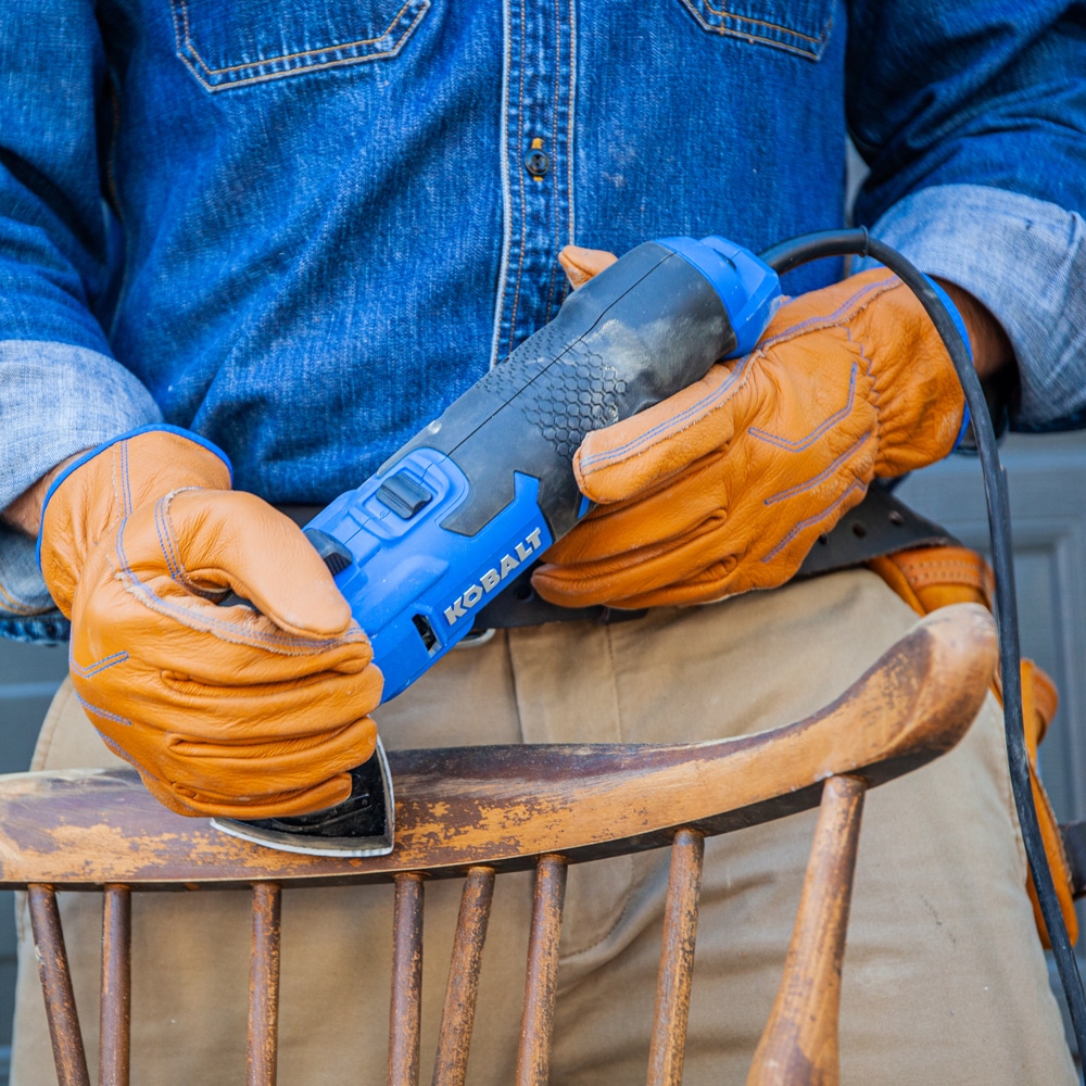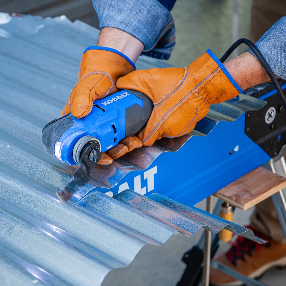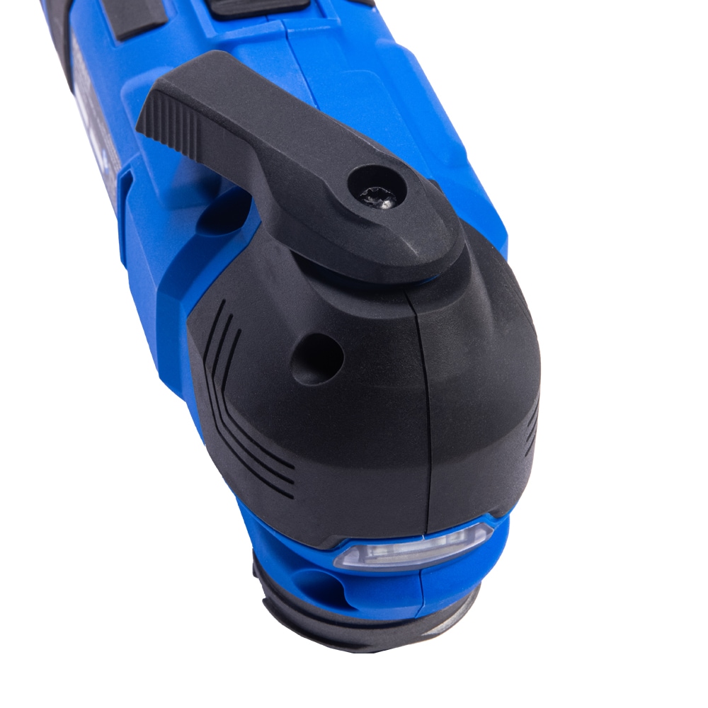 Whether you need a tool for sanding or cutting, the Kobalt 4-Amp Oscillating Multi-Tool features new innovative technology that highly reduces the vibration and noise for the ultimate user experience. The tool also features an 6-position variable-speed dial to control the speed of the tool. The speed can be set between 11,000 and 18,000 oscillations per minute so the user can pick the correct speed for the application. The blade oscillates at +/-1.8 degrees for a combined oscillating angle of 3.6 degrees for superior cutting performance. A 10 foot long durable cord is included with this tool for easy maneuverability around the job site. The tool-free blade changes allows the user to quickly change blades to complete the next task on their to-do list. The center pin can be removed to easily and quickly adapt to star lock blades. The kit includes a soft bag, (2)wood blades, (1) bi-metal blade, (1) scraper blade, (1) flush-cut blade, and a sanding pad along with (7) 60/120/180 grit sand papers.