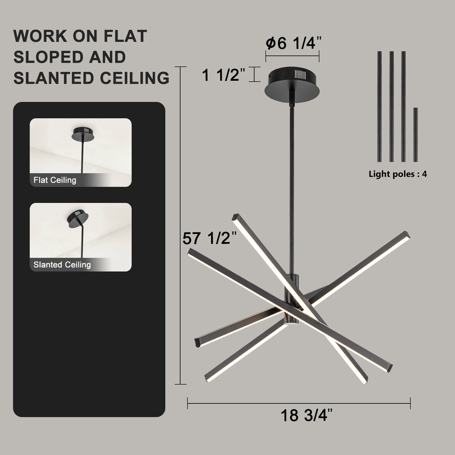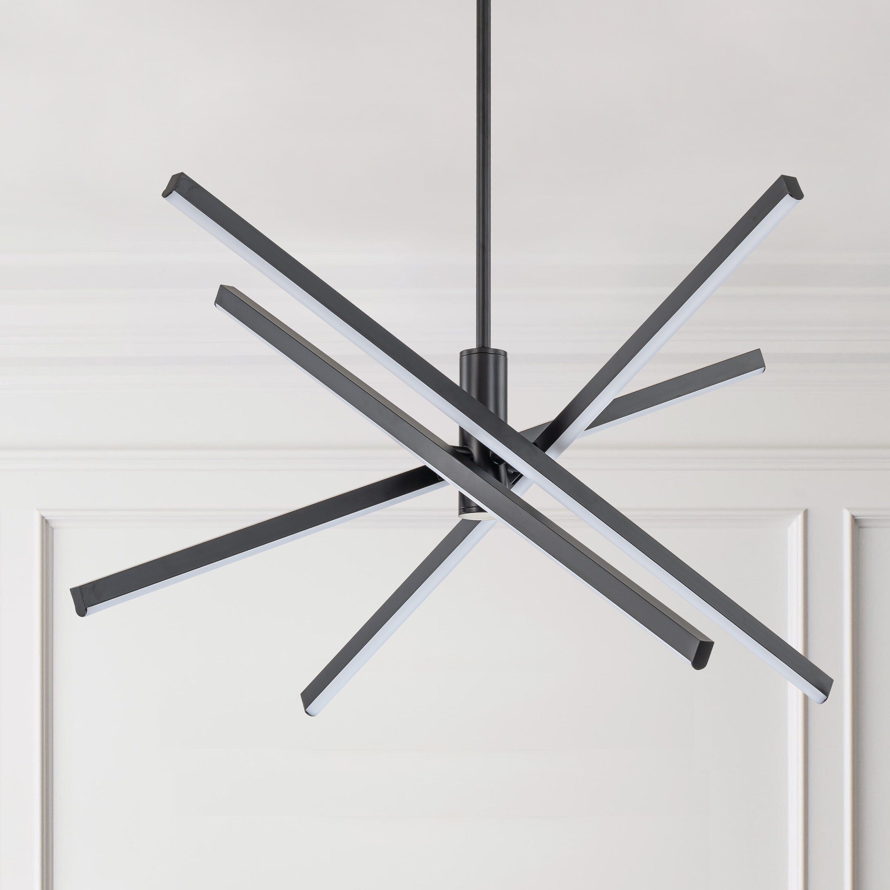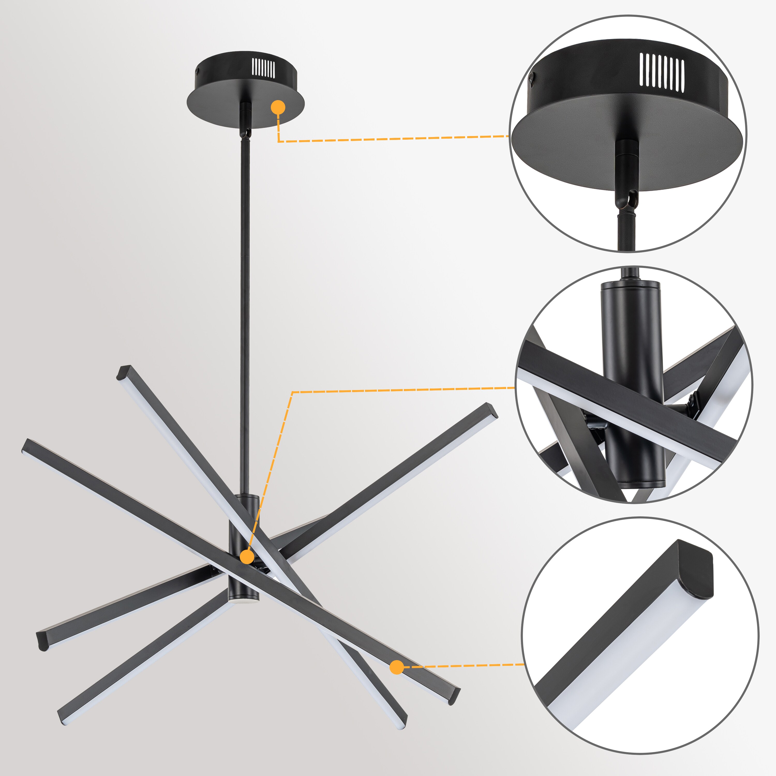 Add a touch of contemporary charm to your home with this 4-Light chandelier. A creative mixture of refined traditional starburst personality and minimalist linear design strikes at the heart of it. A rotatable design allows you to decide the tube’s directions and create the best configuration for your home design. As a blend of practicality and artistry, the modern chandelier was crafted from die-cast aluminum and with energy-efficient LED illumination. Geometric and eye-catching, this sputnik chandelier stylizes up the style in your living room, dining room, bedroom, entryway, office, or foyer.