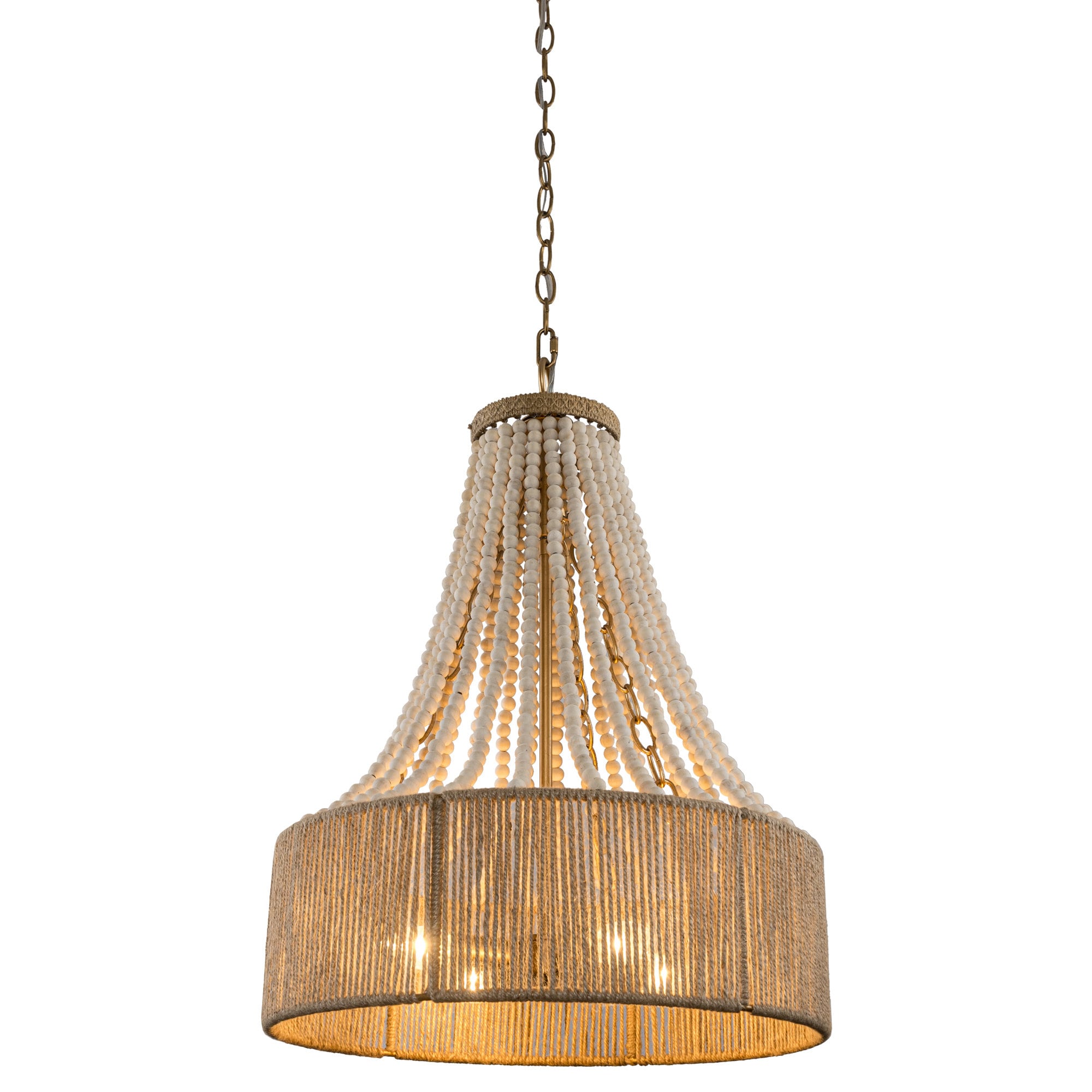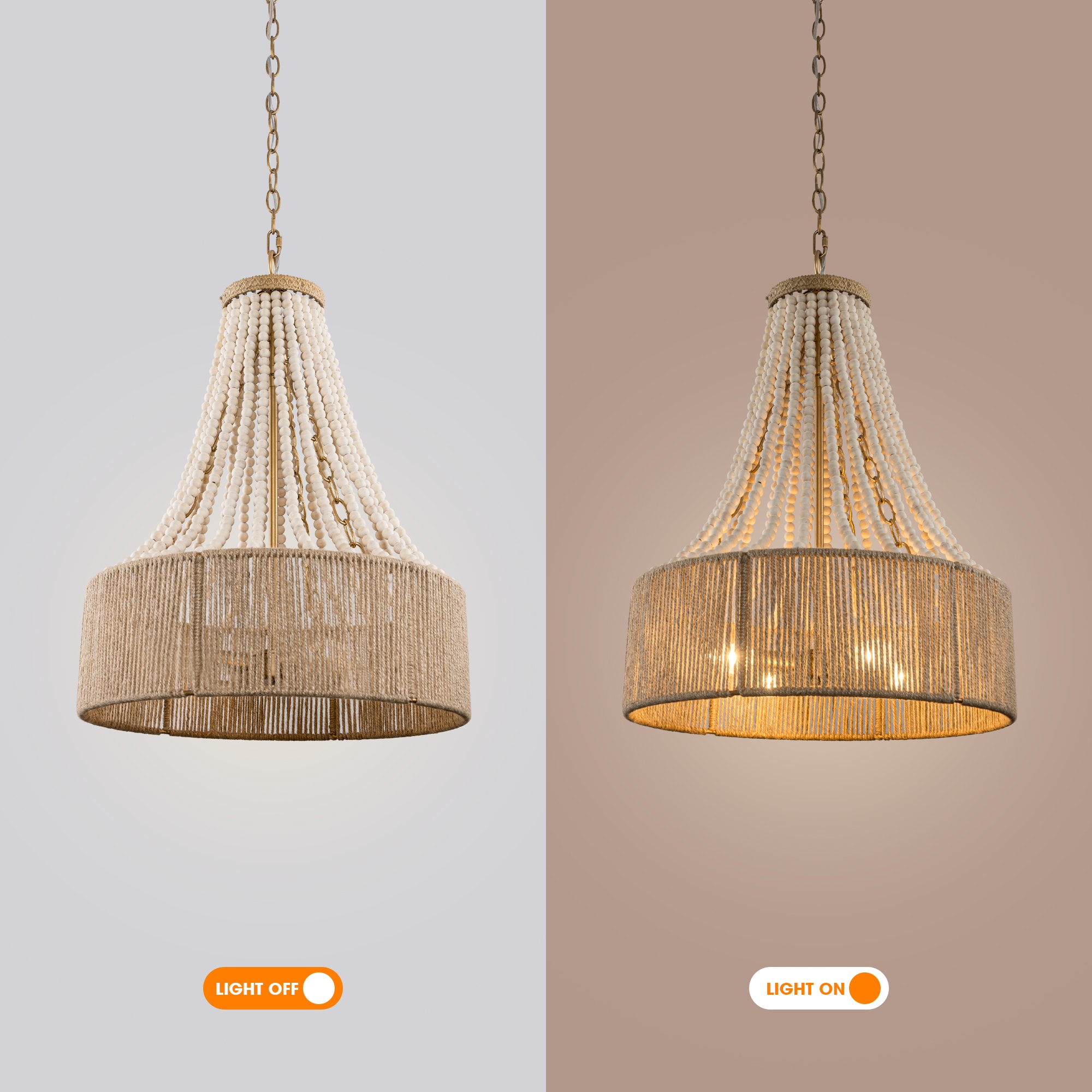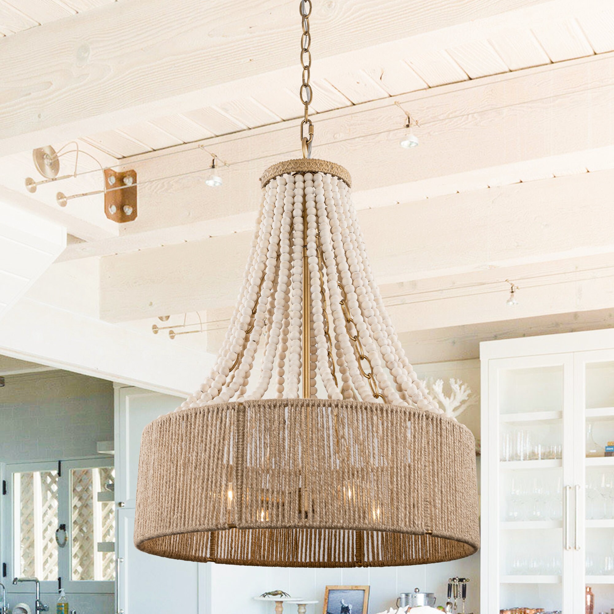 This farmhouse boho 4-light beaded empire chandelier is handmade with wood, and casts a gorgeous light when the light on, an antique rustic look that will bring warm elegant vibes in your new room. It can be as hanging dining room light, hanging chandelier kitchen, bedroom chandelier, chandelier for living room.