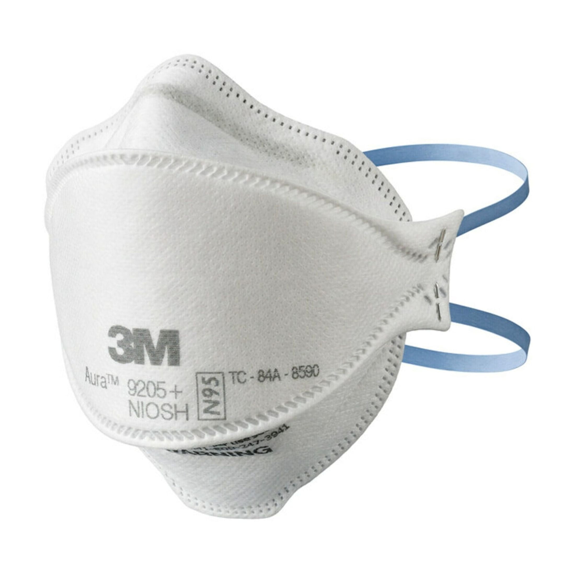 3M™ Aura™ Particulate Respirator 9205+ is an N95 disposable particulate respirator that is designed to help provide respiratory protection of at least 95 percent filtration efficiency against certain non-oil based particles. The lightweight, three-panel designed respirator helps provide comfortable and convenient respiratory protection. 3M uses a variety of innovative technologies and features to help you meet your respiratory protection and comfort needs. 3M`s proprietary filter media, 3M™ Advanced Electret Media, filters dust and other airborne particles, while allowing for easy breathing. The soft inner material provides added comfort and the adjustable nose clip help provide a custom seal.