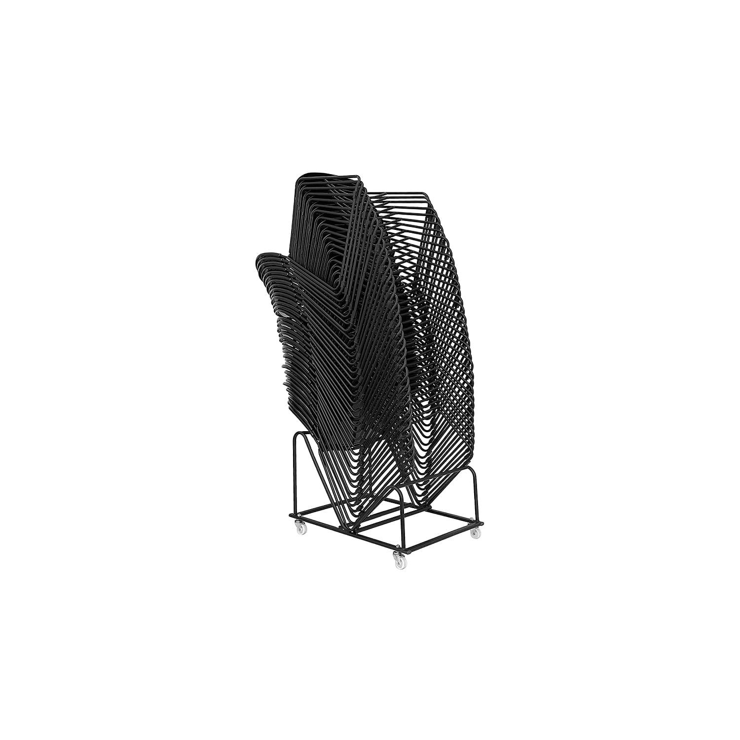 Sold as 4/Carton. Stacking chair. Partial assembly required. Material: Black no-fade infused polypropylene seat and back, plastic floor glides, chrome frame finish. Stacks up to 35 high on dolly. Fabric is upholstered. Seat: 17″H x 17.6″W x 17.4″D, Back: 17.625″W x 15.5″H. Injection molded and textured seat and back. Lifetime limited warranty on frame. Black seat/back. Sled base. 12 mm x 1.8 mm metal gauge. Overall dimensions: 31″H x 19.5″W x 20.75″D. Weight capacity: 880 lbs. Supportive front cross-brace and features carrying handle for easy movement.