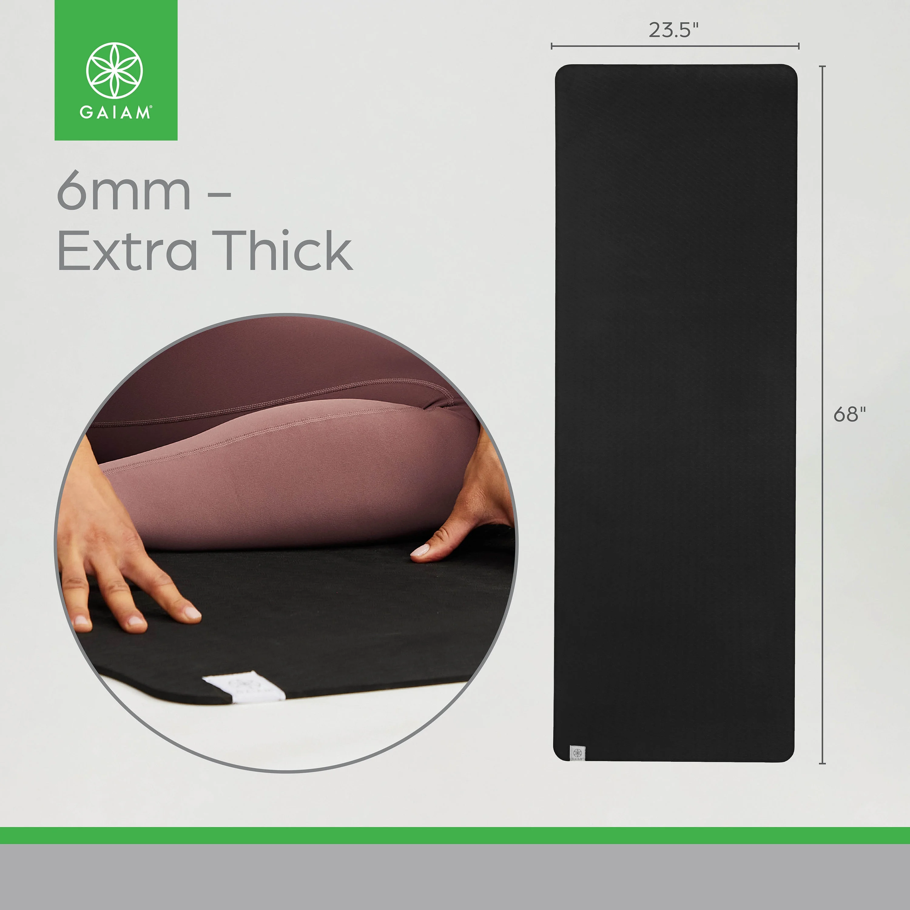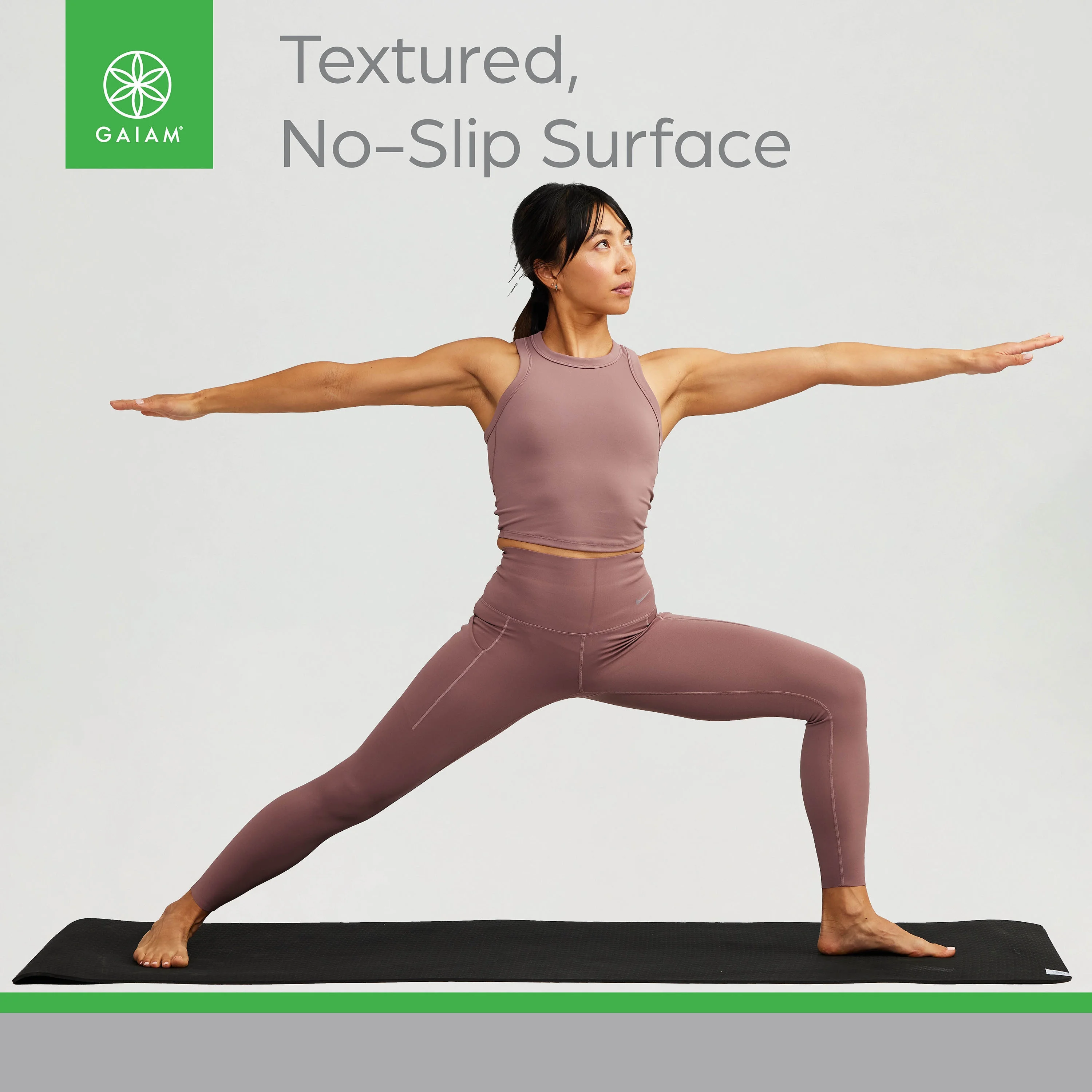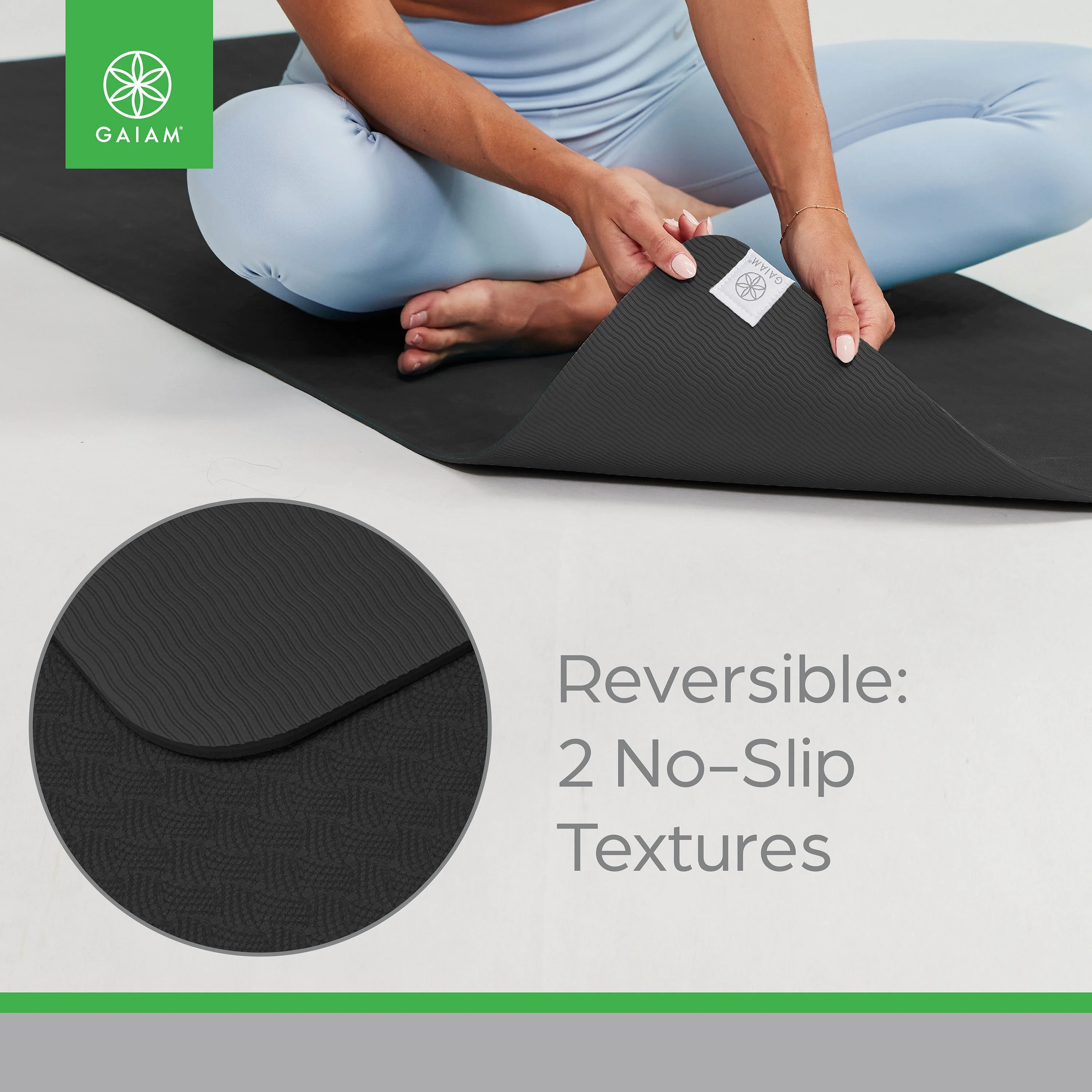 Gaiam Fit Yoga Mat, 6mm Eco-friendly TPE is non-toxic, biodegradable and recyclable Closed cell design seals out odors and bacteria 6mm thick with non-slip, reversible surface for superior cushion, support and traction 24″ x 68″ 1 Each