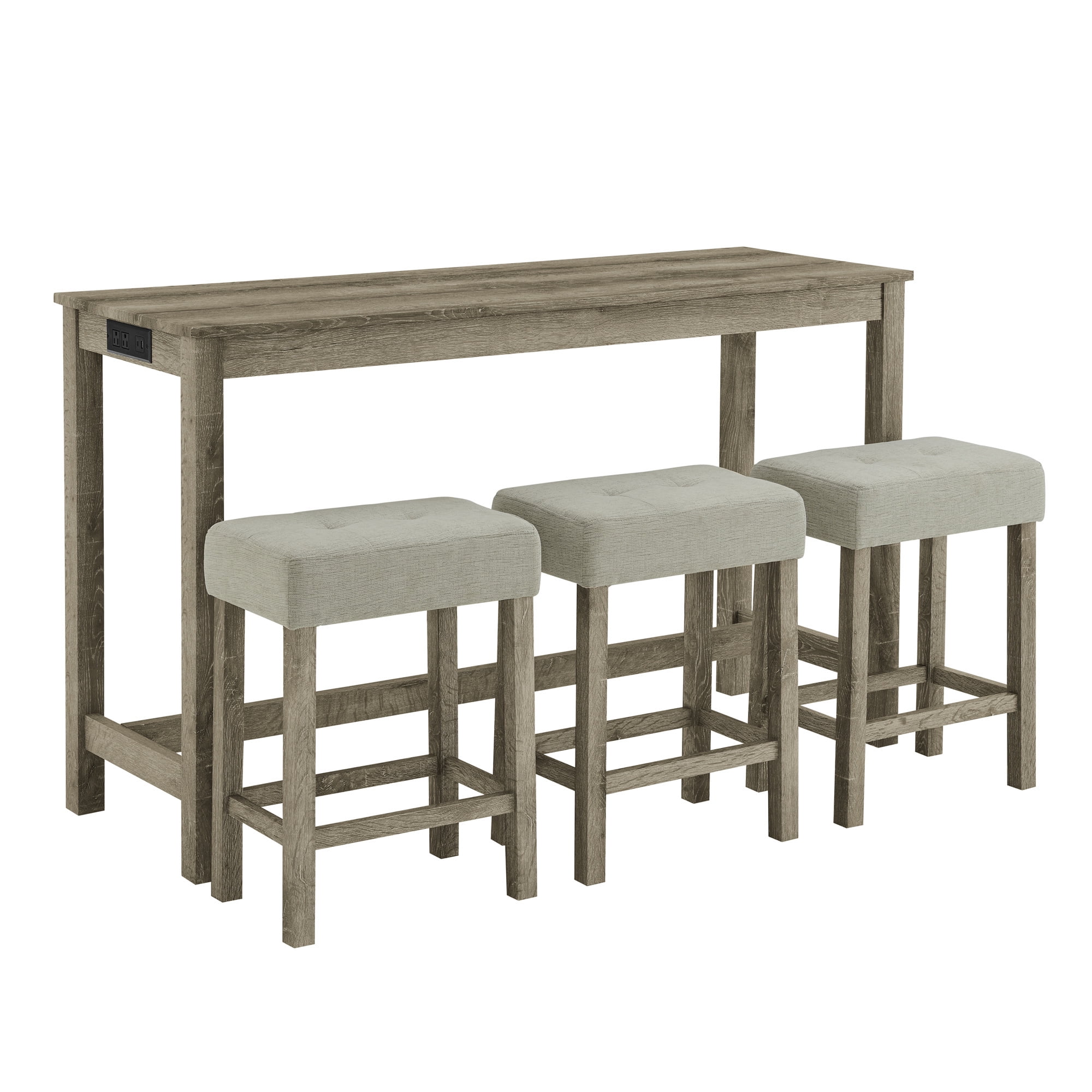 4 Piece Bar Table Set with Power Outlet,Rustic Counter Height Bar Dining Table with 3 Upholstered Stools,Kitchen Dining Table Set for Living Room, Dining Room, Game Room,Brown