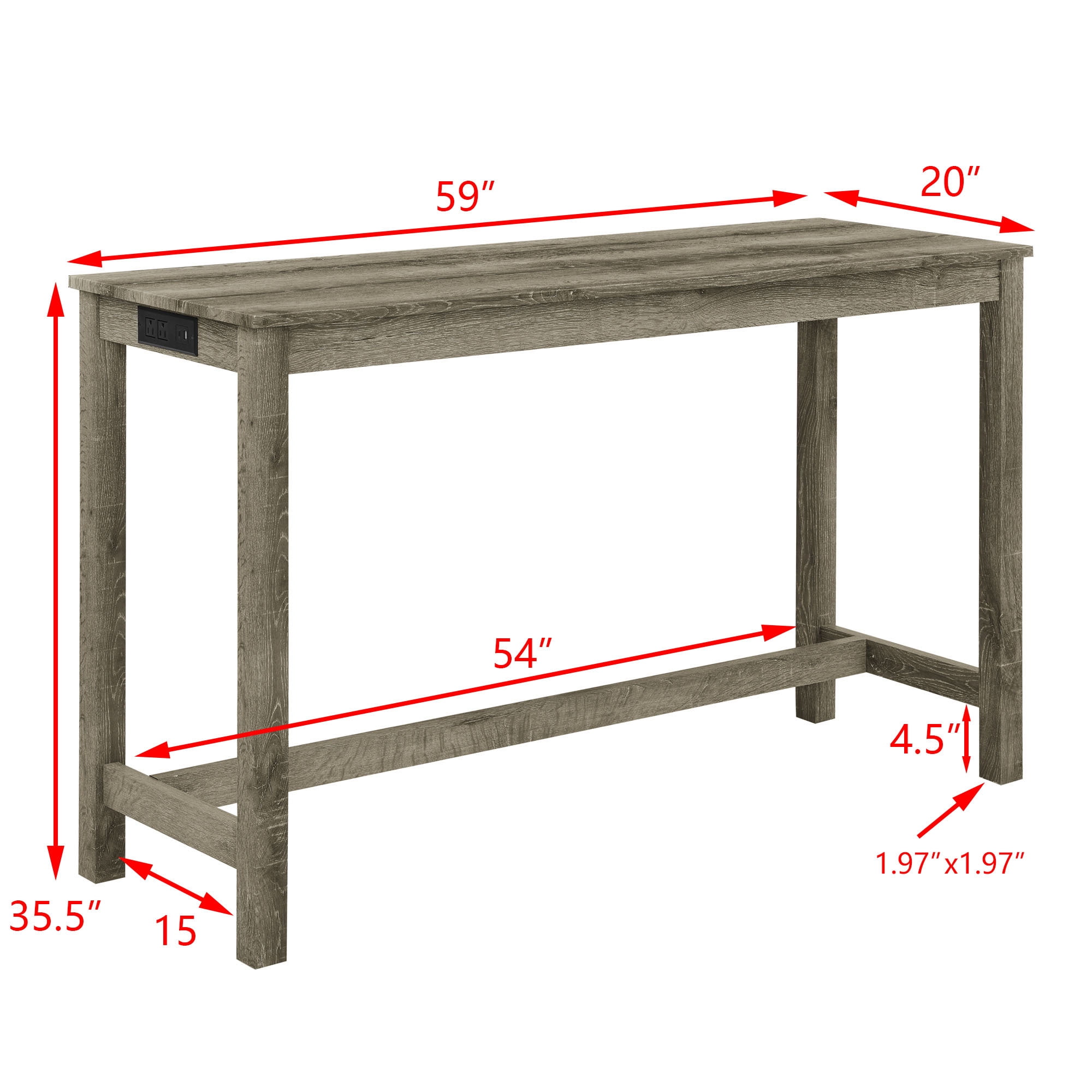 【Built-in power outlet and charging hub】”Integrated 1 USB port and a Type-C connector and 2 AC power outlets (110V) let you seamlessly charge your laptop, phone or appliances – perfect for the kitchen, home bar or open living space. 【Industrial Grade Durability】The 59-inch table is equipped with an all-solid wood frame and solid wood legs. The MDF table top is made of PVC stickers. The structure is solid and anti-scratch, heat-resistant and splash-proof. The all-solid wood rubber wood table legs and chair legs ensure the stability of daily use. 【Comes with 3 Linen Upholstered Stools】 Soft linen upholstered stools (24-inch seat height) with sturdy solid wood legs provide ergonomic support so you can dine, work, or entertain guests in comfort. 【Space-saving multi-purpose design】The 4-piece bar table set is perfect for an apartment, loft, living room or dining room. Modern industrial style and farmhouse, the three stools can be stored under the table to save space and make cleaning easy, and the stools and table legs have foot pads to effectively protect the floor from scratches. 【Easy to assemble】: All hardware and accessories provided. It comes with detailed assembly instructions.