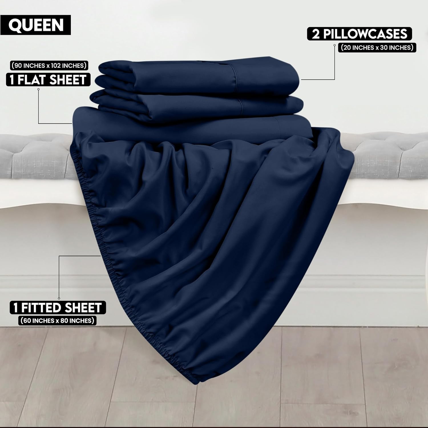 This soft sheet is resistant to Wrinkles, fade, stain and shrink.It’s easy to care for and can be machine washed with mild detergent. Do not bleach. Dry on low heat and iron on low heat if desired. Please wash the dark and light colored products separately. These high-quality queen sheets ensure an ultra-soft touch against the skin while providing enhanced breathability for a relaxed state of mind. The queen sheet set features an exquisite blend of aesthetics and creativity. The solid sheets adjust well to modern bedding, turning the place into a style-filled room.