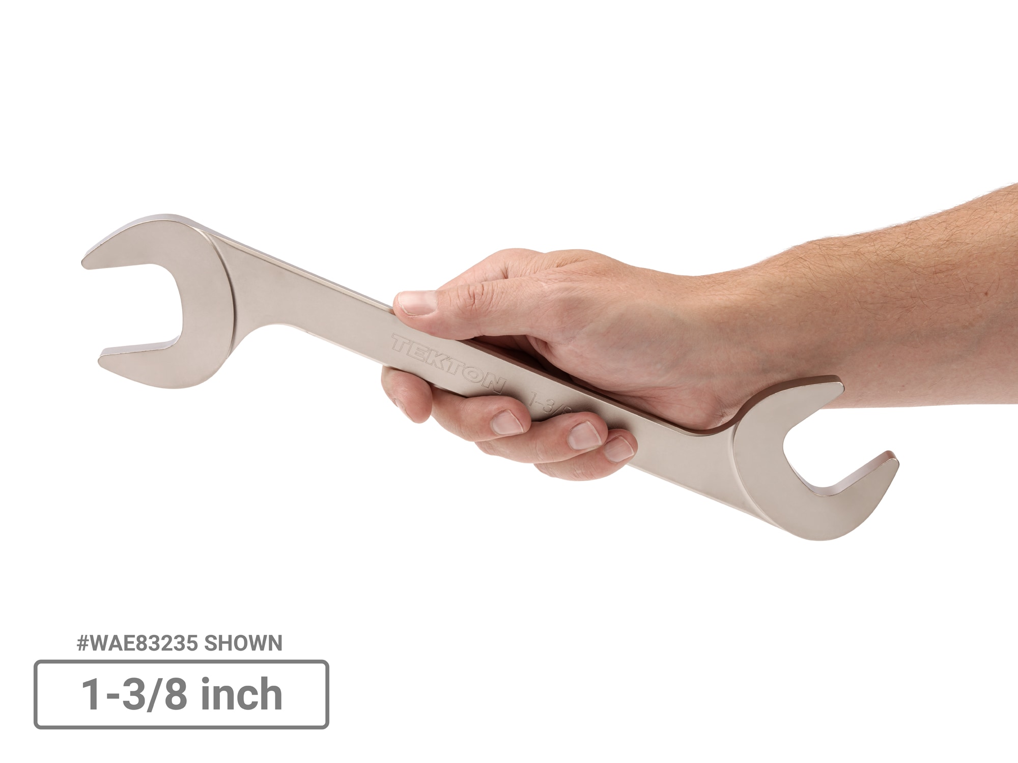 Tekton Angle Head Open End Wrenches allow you to progressively turn fasteners and fittings in confined spaces, saving you time because you can continue to work without disconnecting or dismantling equipment to access hard-to-reach areas. The 30 and 60 degree angled heads provide greater coverage with fewer blind spots in limited access situations, and the beam is shifted up and out of the way to achieve the greatest range of motion in confined spaces. The shape of the head is also optimized for access and strength while also preventing jaw spread. We make our angle wrenches from 4140 chromium-molybdenum steel and harden them to 50–53 HRC. The wrenches are abrasive-blasted to create a finely textured satin finish and then plated with corrosion-resistant nickel. The wrenches have laser-engraved size markings and (with the exception of the smallest wrench sizes) chamfered handles. Our angle wrenches are manufactured entirely in the USA with USA-made materials. Machining, engraving, vibration polishing, abrasive-blasting, and plating take place at our Grand Rapids, Michigan manufacturing facility.