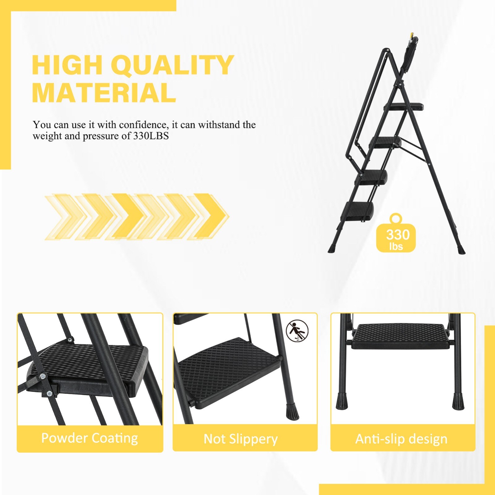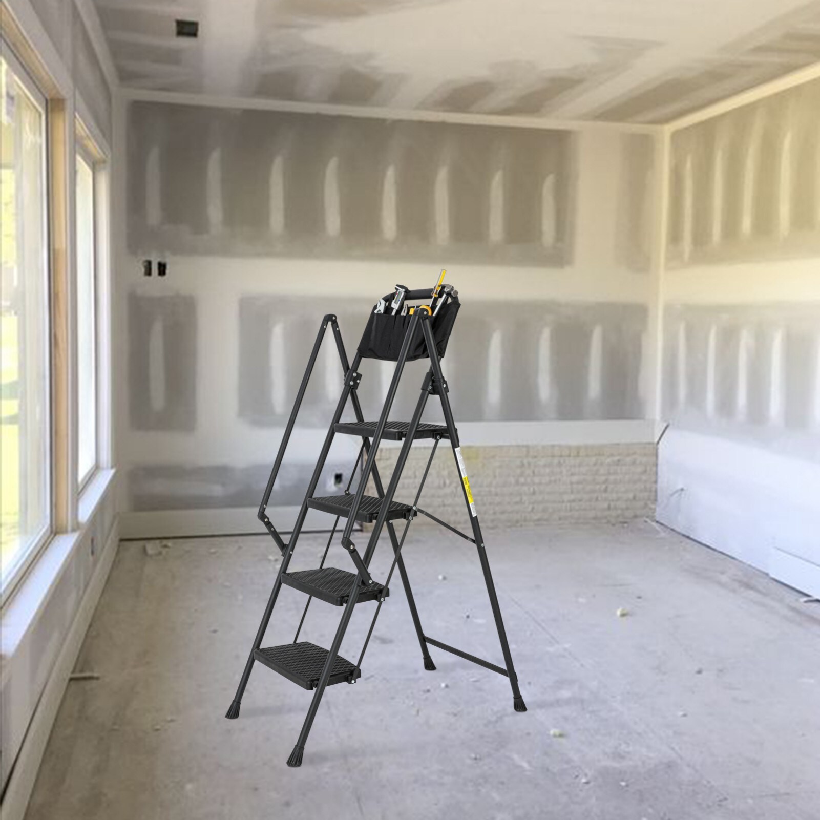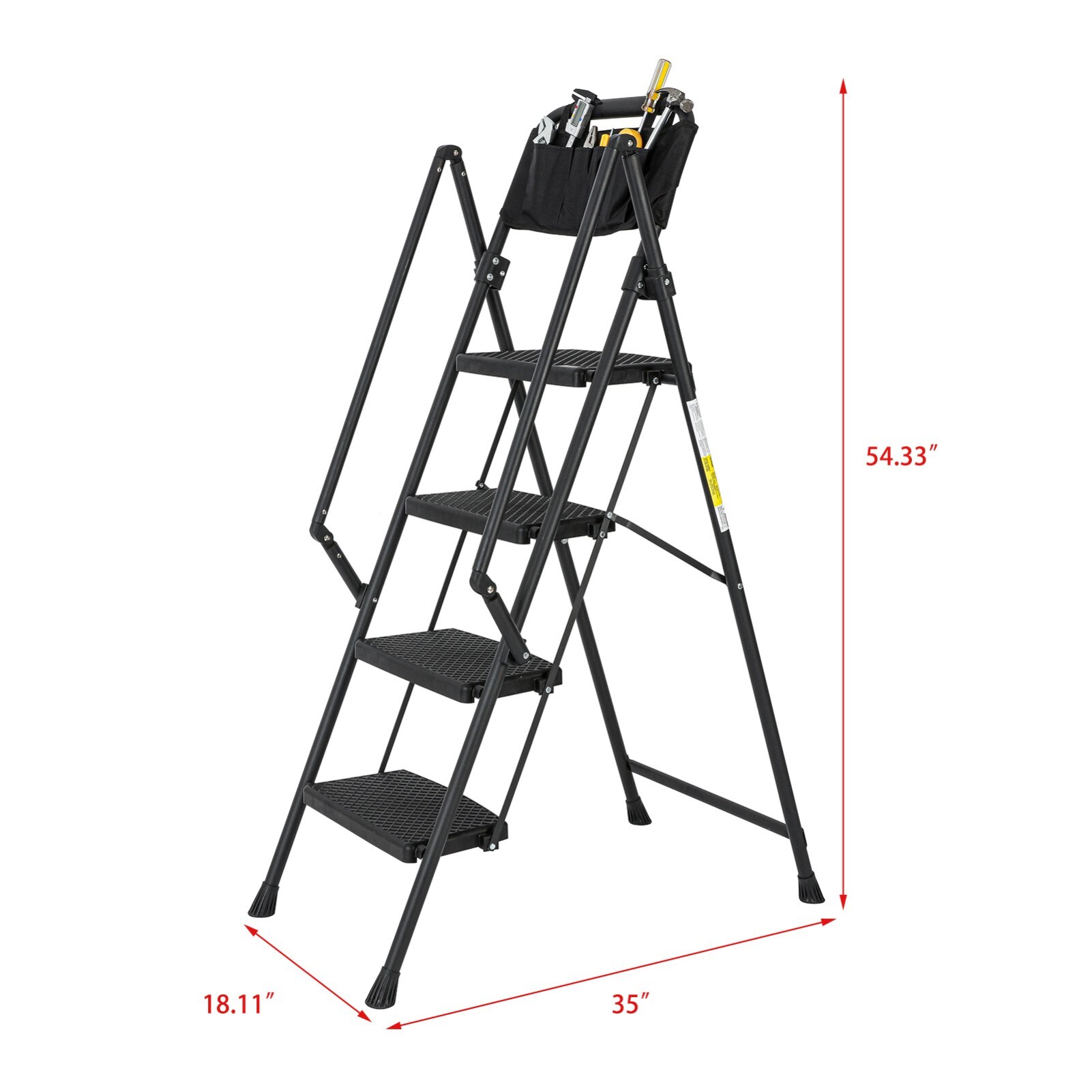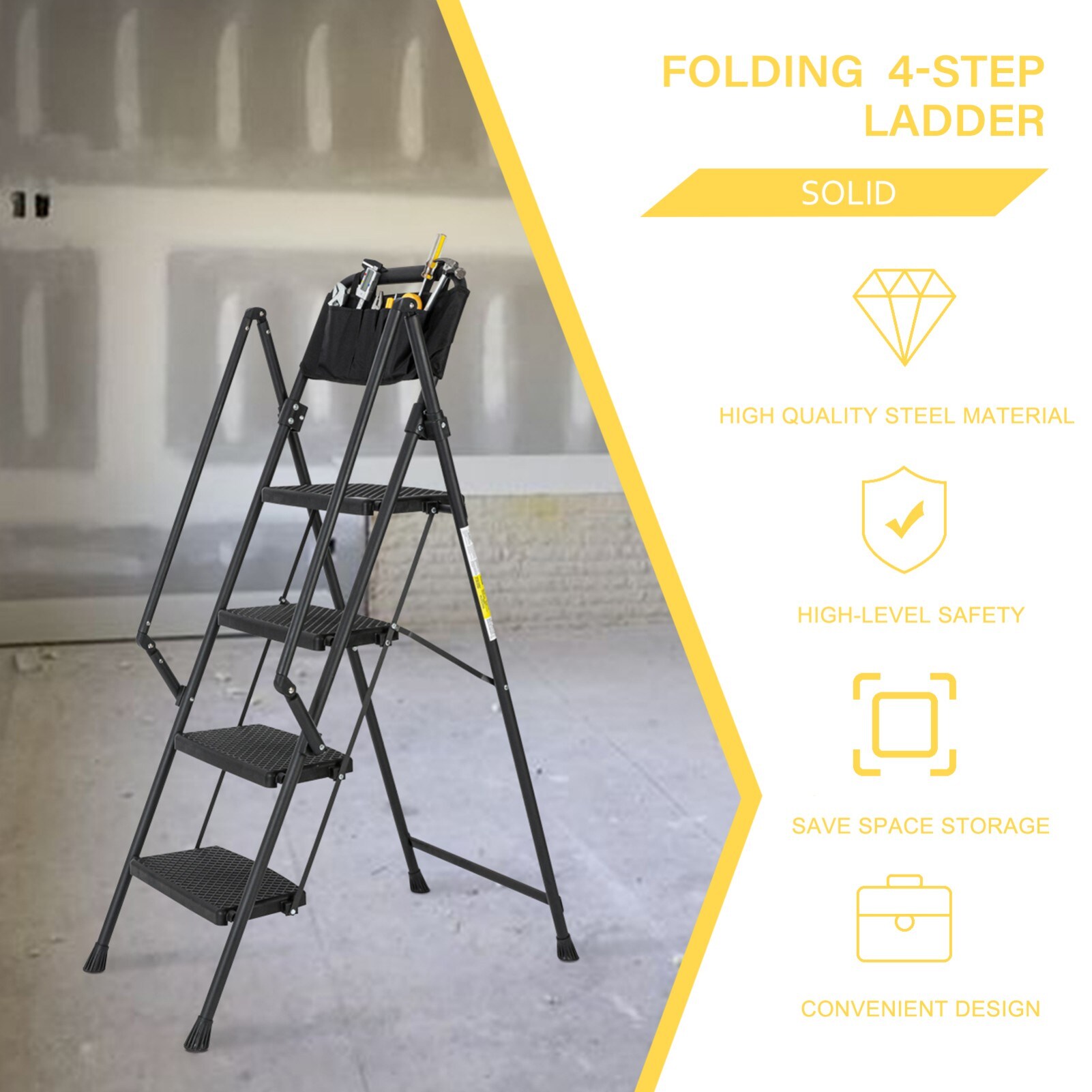 Introducing our exceptional ladder, designed with your safety and convenience in mind! Crafted with a high-strength steel frame, it offers durable construction and a 550lb weight capacity. The anti-slip pads and pedal ensure stability and safety on various surfaces. The sponge handle makes it easy to carry, while its versatile use extends beyond traditional ladder tasks. Portable and space-saving, it’s a must-have. Plus, the storage bags enhance work efficiency at heights.