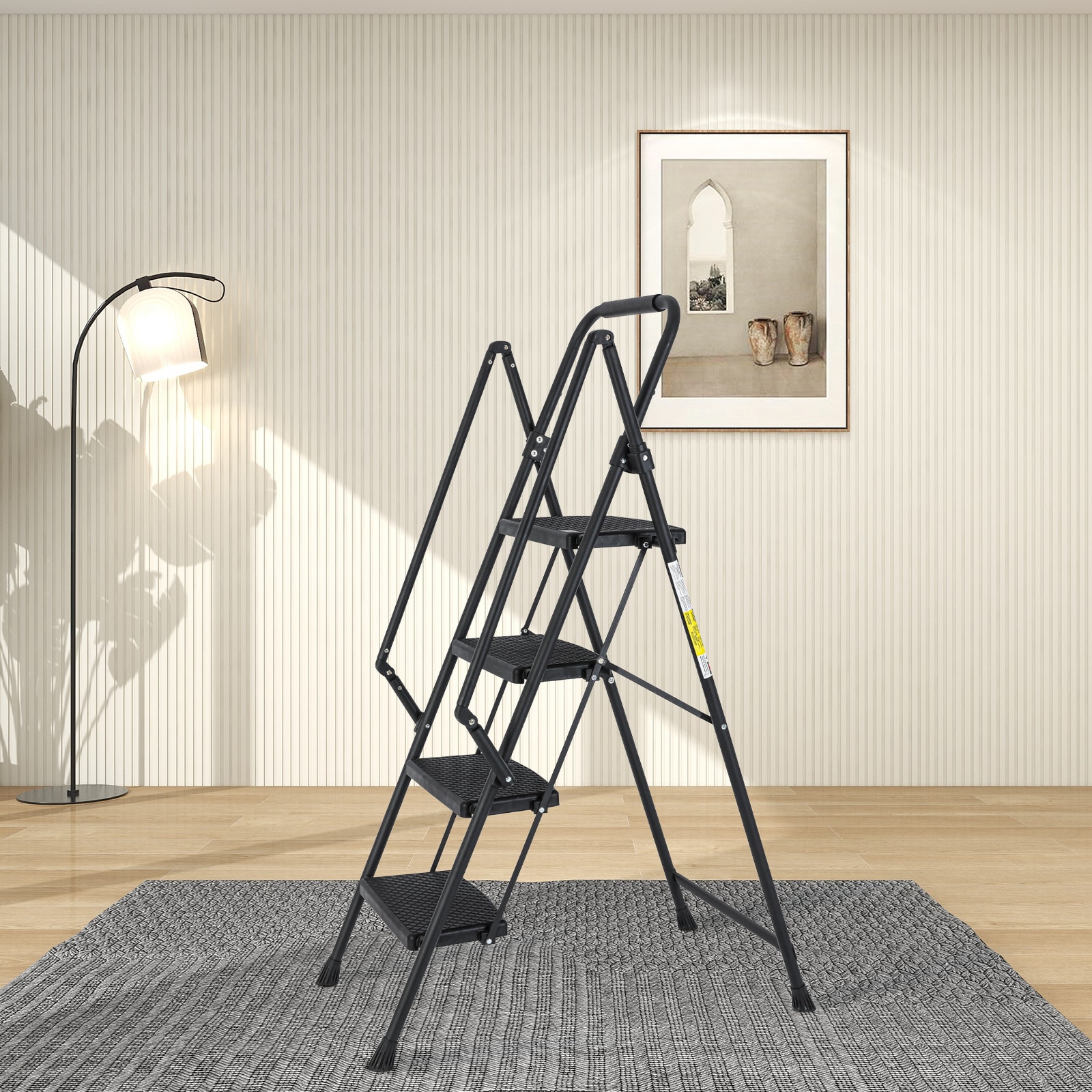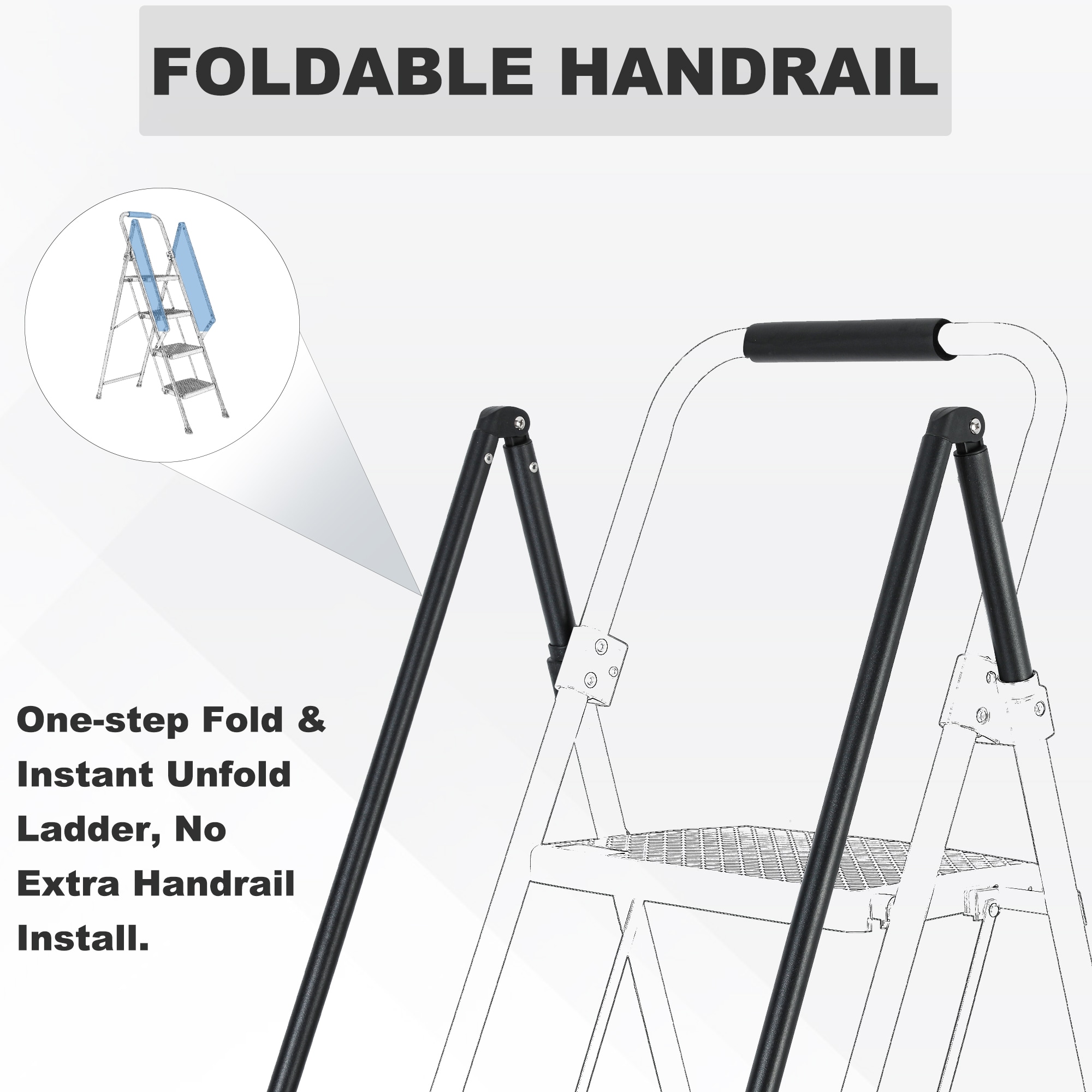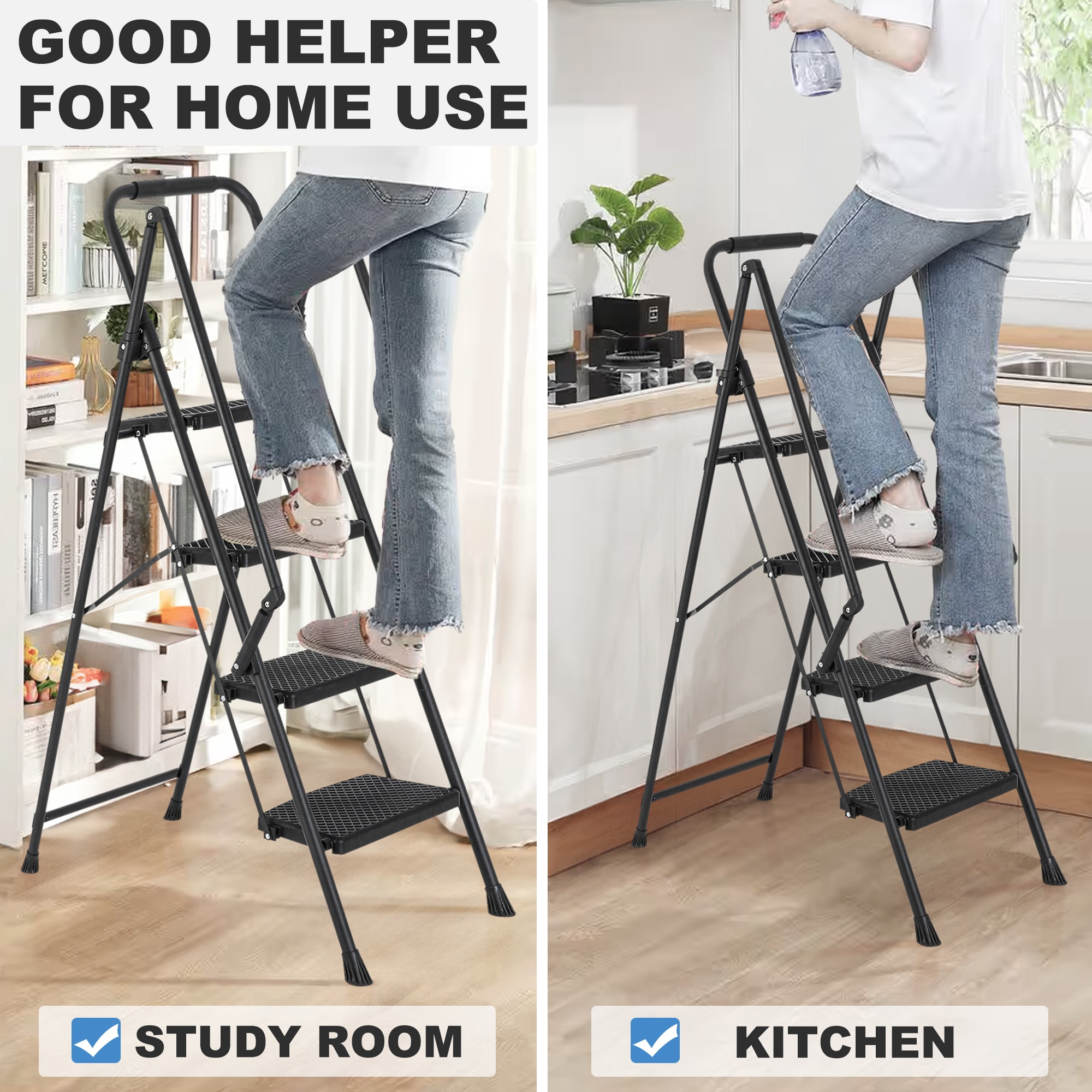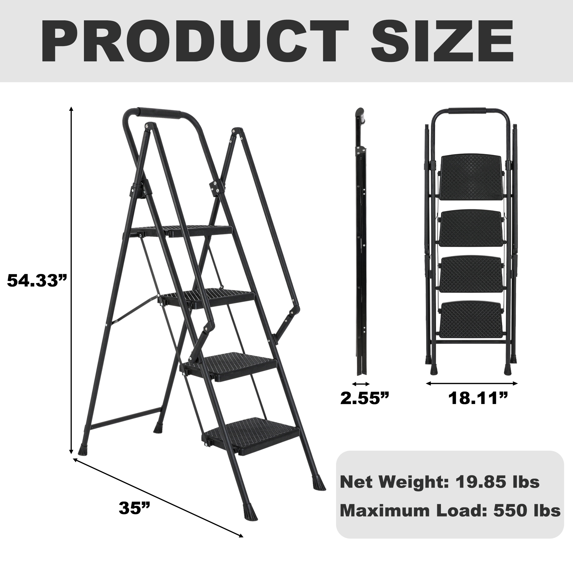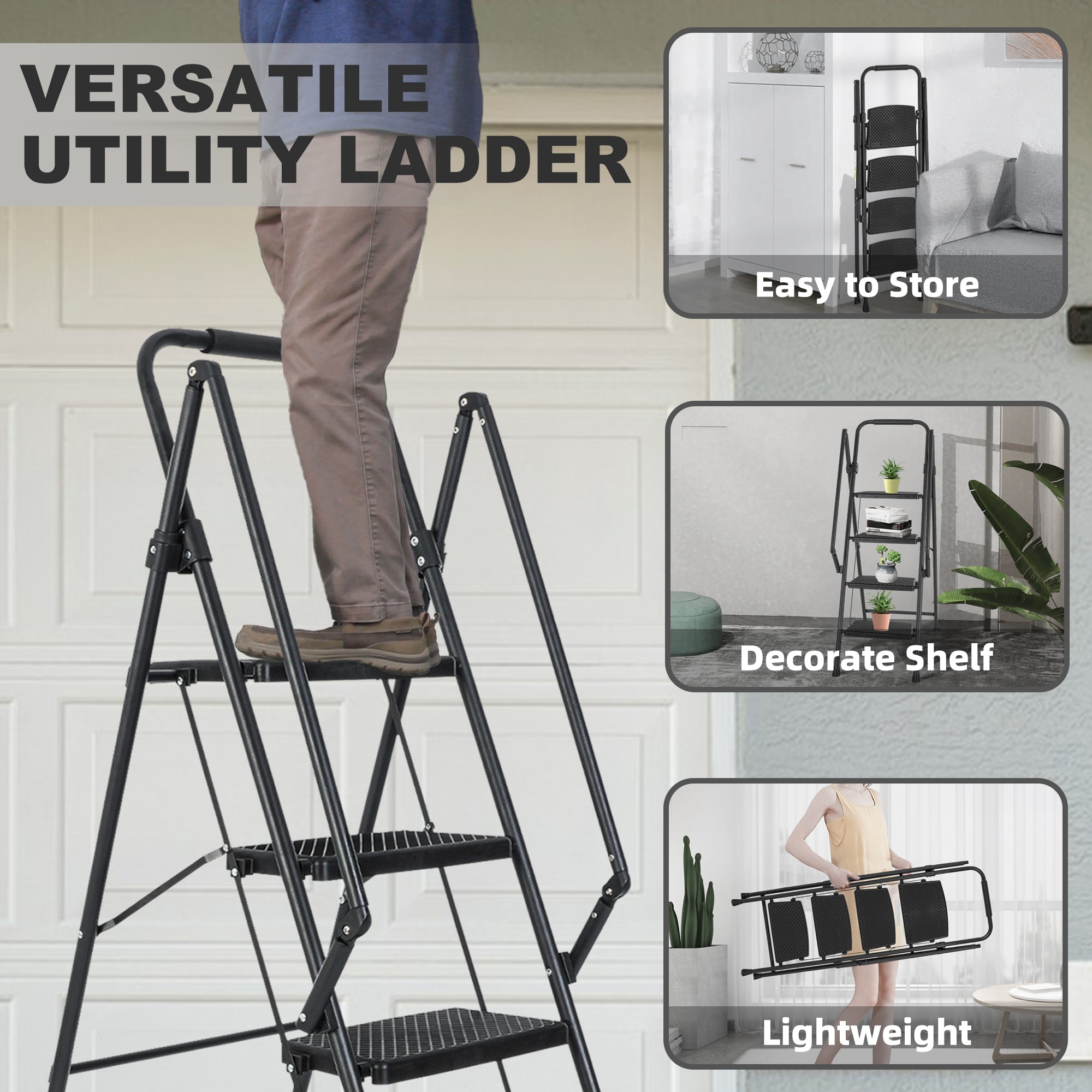 Introducing our heavy-duty foldable ladder, the ultimate solution for all your height-related needs! Built with a high-strength steel frame, it can support up to 550 pounds, providing unwavering stability. The anti-slip pads, traction-enhancing pads, and anti-slip pedal ensure your safety every step of the way. The comfortable sponge handle makes carrying a breeze. It’s incredibly versatile, suitable for household tasks, DIY projects, and even as a plant support. With its easy setup and storage feature, it’s a must-have for both indoor and outdoor use. Upgrade your ladder game today!