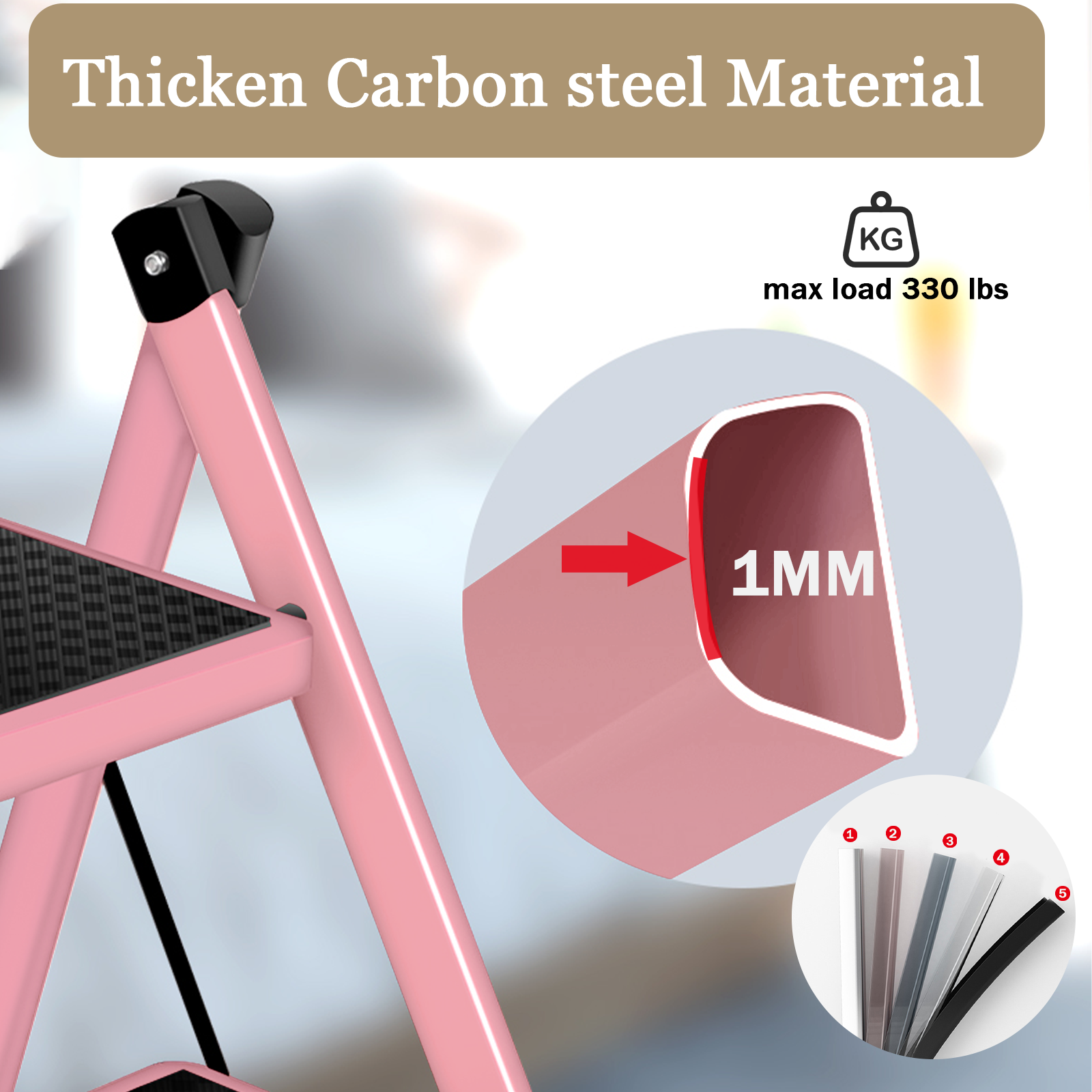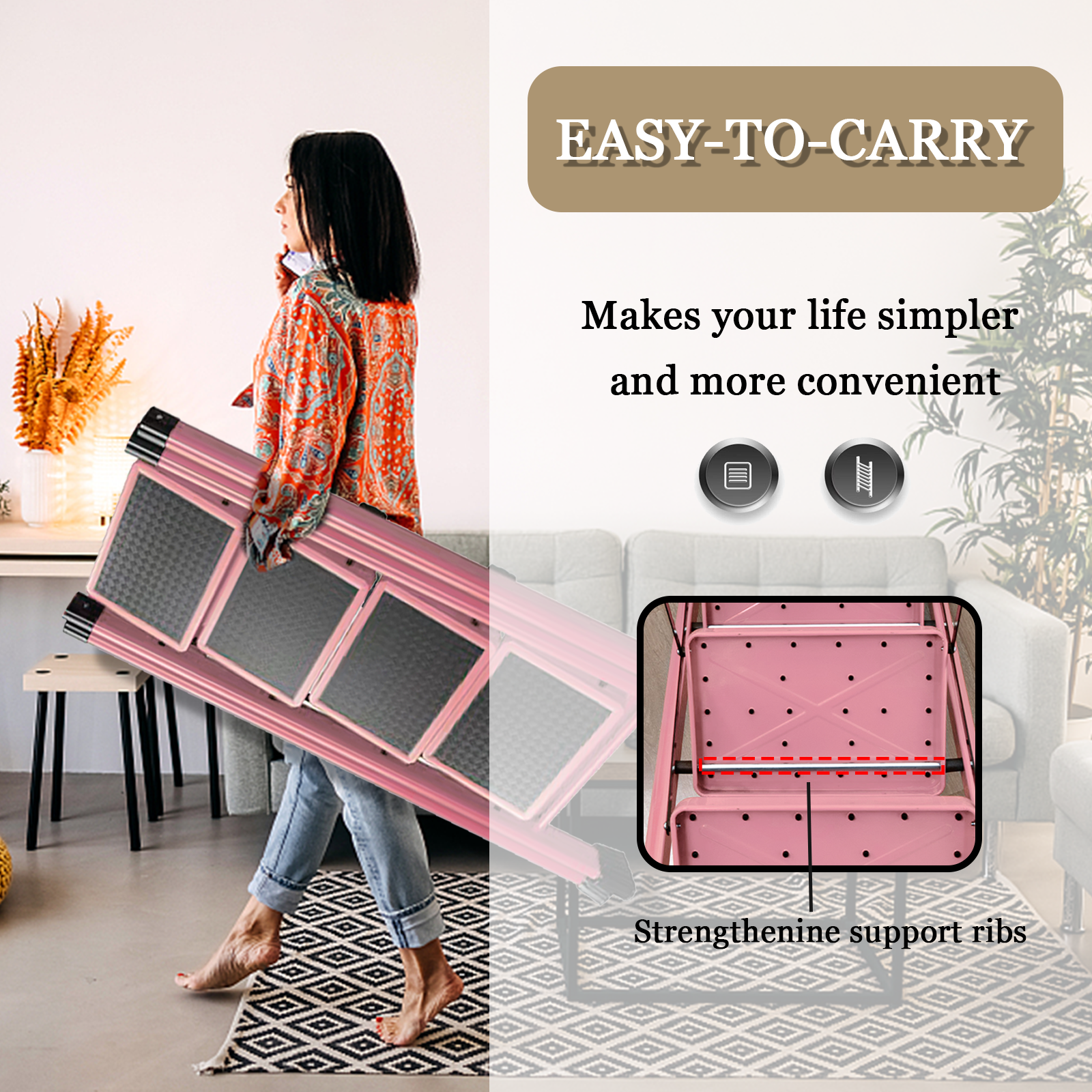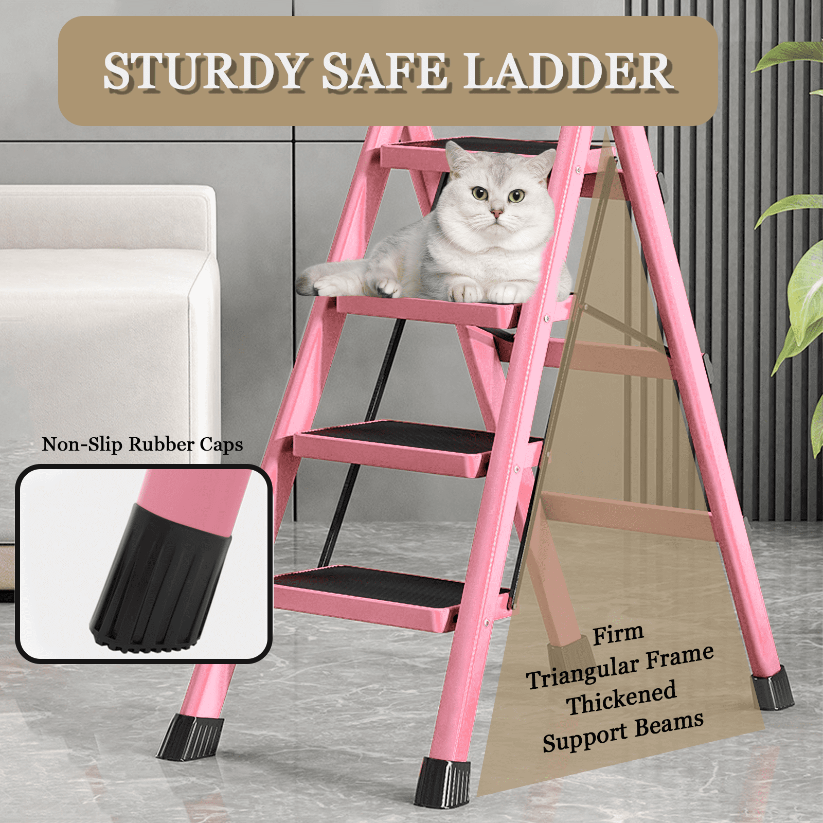 4 Step Ladder, 4 Step Folding Ladder With Wide Anti-Slip Pedals, Portable Lightweight Multi-Use Step Stool For Home(Pink)