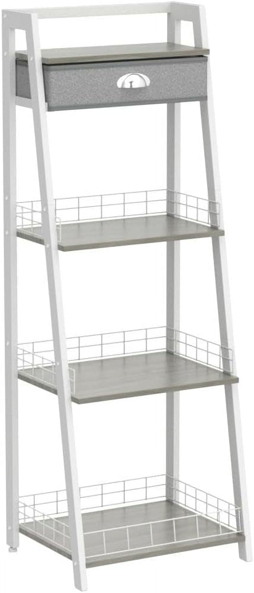 4-Tier Ladder Shelf with Drawer,x-Cosrack Ladder Bookshelf Bookcase Storage Rack Shelves,Industrial Bookcase with Steel Frame,White