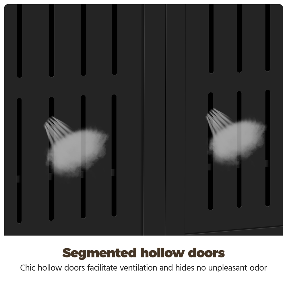 Selected material: Our shoe storage cabinet is crafted out of P2 compliant MDF to reduce the formaldehyde emissions to the minimum amount possible, providing you and your family a safe and healthy living environment. Adjustable tier height: The height of the removable upper tier and lower tier (middle tier is fixed) can be easily adjusted to 9.5cm/ 3.7″ and 16cm/ 6.3″ in 6.5cm/2.6″ increments for storing different types of shoes. Louvered door design: For extending the service life of shoes and personal hygiene, we’d better store our shoes in a dry place with good air circulation. Ample storage space: This shoe cabinet comes with a spacious drawer for keeping small items like keys, belts, shoe inserts, shopping cards for your convenience. Practical chic home/office furniture: Combined with minimalist design and classic black finish, our shoe cabinet will be an aesthetically pleasing and elegant storage addition to your living room/ entryway, bedroom and office. Safe to use: This shoe cabinet comes with an anti-tipping strap for attaching it to the wall for extra safety and stability. Easy to assemble: All necessary hardware and parts are included. Also comes with an illustrated user manual to help you set up this shoe storage cabinet quickly and easily.