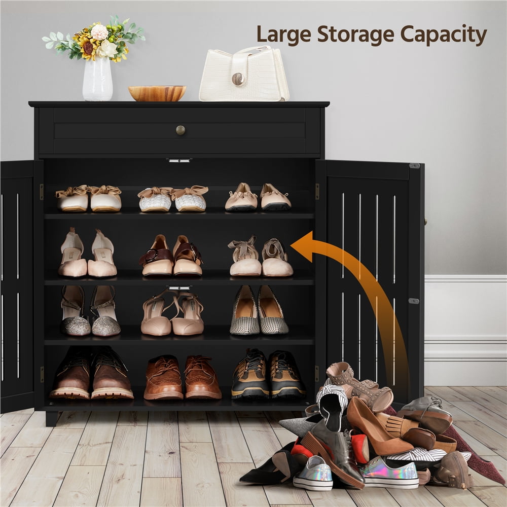 4 Tier Shoe Storage Cabinet 1 Drawer 2 Doors Black