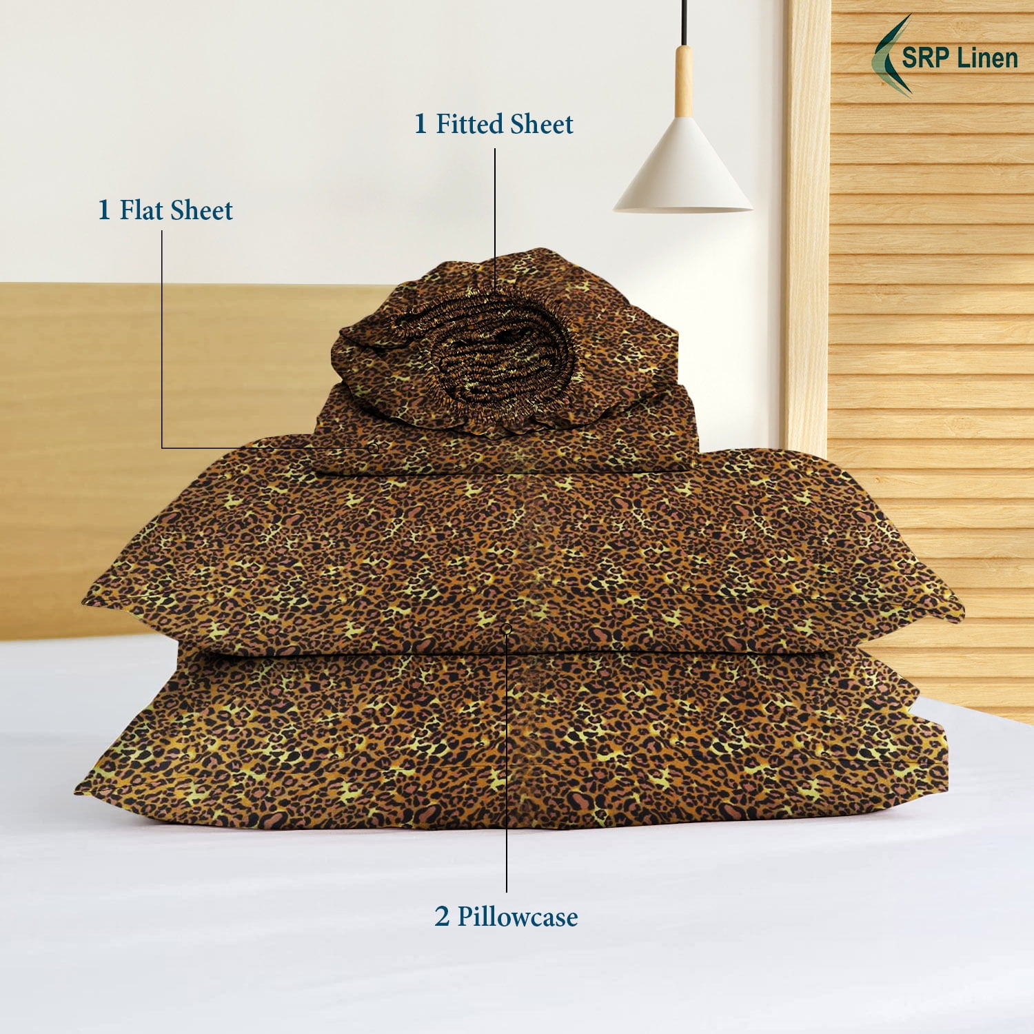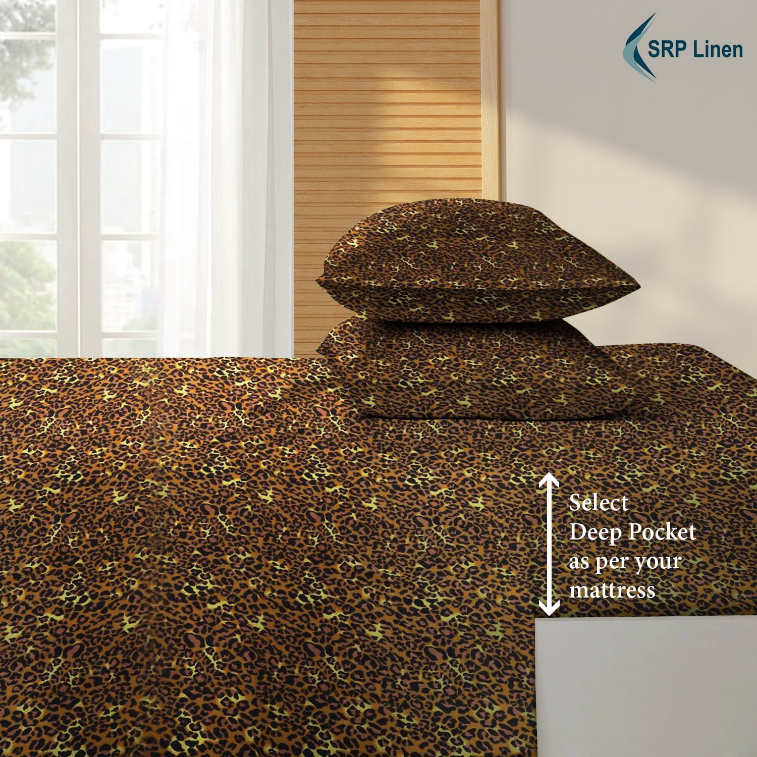 400 Thread Count 4 Piece Sheet Set Deep Pocket 8 Inch 100% Egyptian Cotton Color Leopard Print Size Queen
