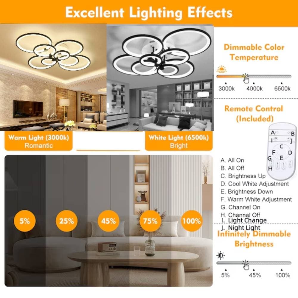 It can be used as a decorative light for living rooms, bedrooms, reading rooms, lounges, etc. This is a unique and high-quality LED ceiling light. The multi-layer design has a unique sense of technology and modernity. This ceiling lamp is suitable for 110-220V American households. We provide after-sales service, if you have any questions, please feel free to contact: oukaning@188com.