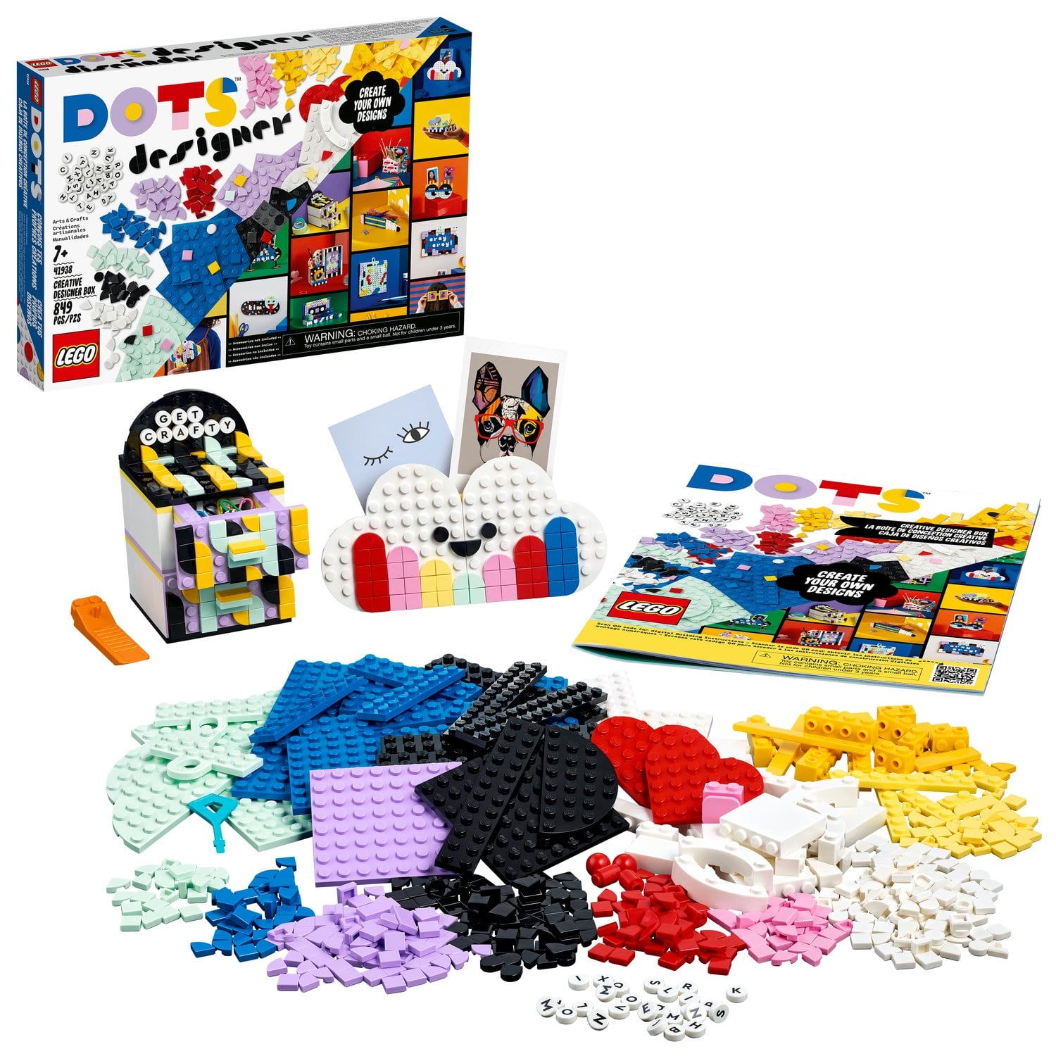 Reward a deserving child with this DIY craft LEGO DOTS Creative Designer Box (41938) kit and inspire their creativity as they boost their design skills and make their own unique pieces,Boost a child s imagination with 5 models, plus inspiration for many more online, and more than 650 tiles, including 72 alphabet-printed tiles to create messages on the models or other DOTS sets,What s in the box? Lots of multi-colored DOTS tiles, 5 room decor items to make and decorate, an inspirational magazine with more design ideas, and a diamond-shaped tile remover for easy redecorating,Any child aged 7 and up with a passion for arts and crafts will love this Creative Designer Box (41938) set. The tiles and models will make a fun everyday gift for boys and girls who deserve a treat,Decorative and useful. With endless possibilities for imaginative fun and free self-expression, this exciting DIY creative kit is perfect for young designers to practice their creations