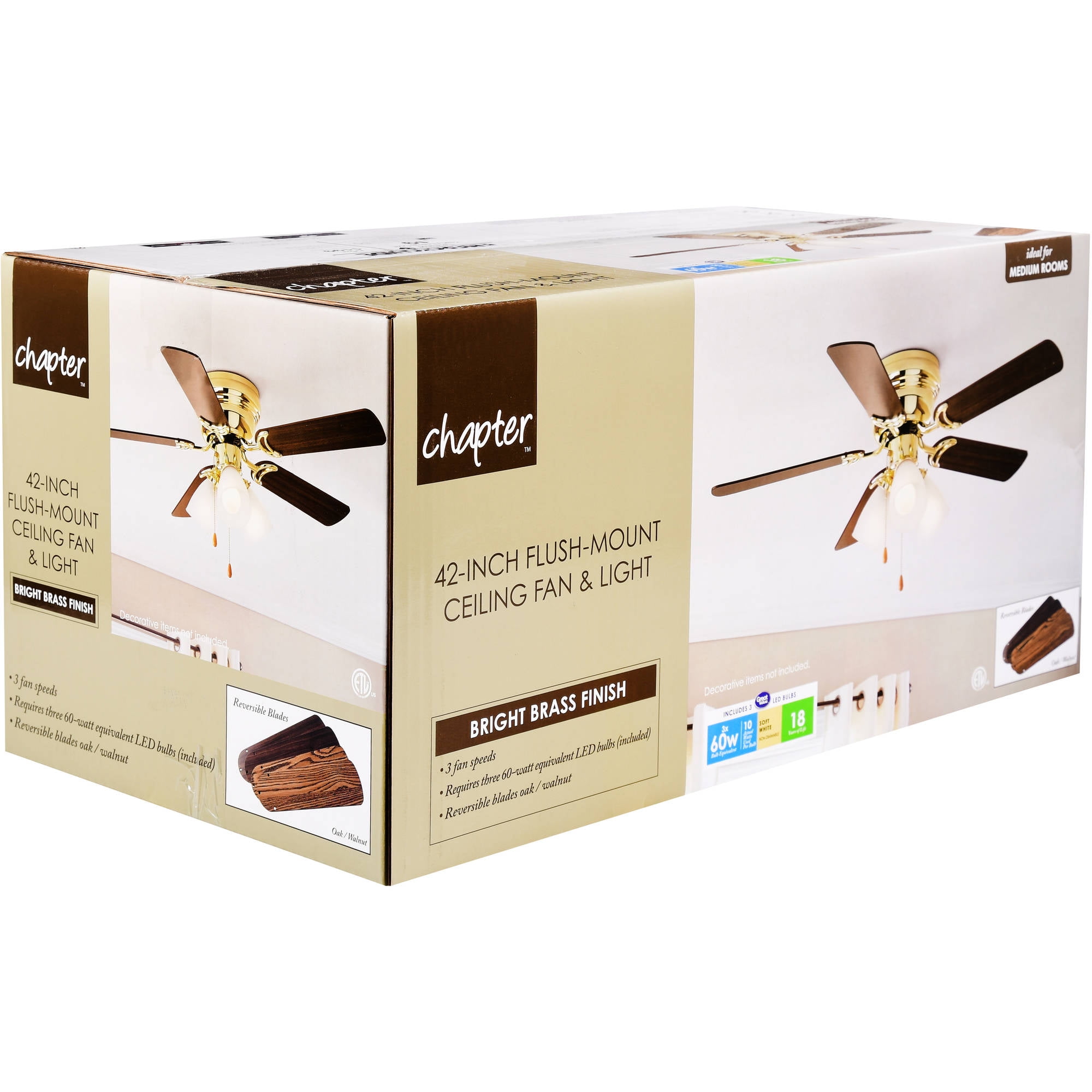 42″ Chapter Ceiling Fan, 3 Light, Hugger