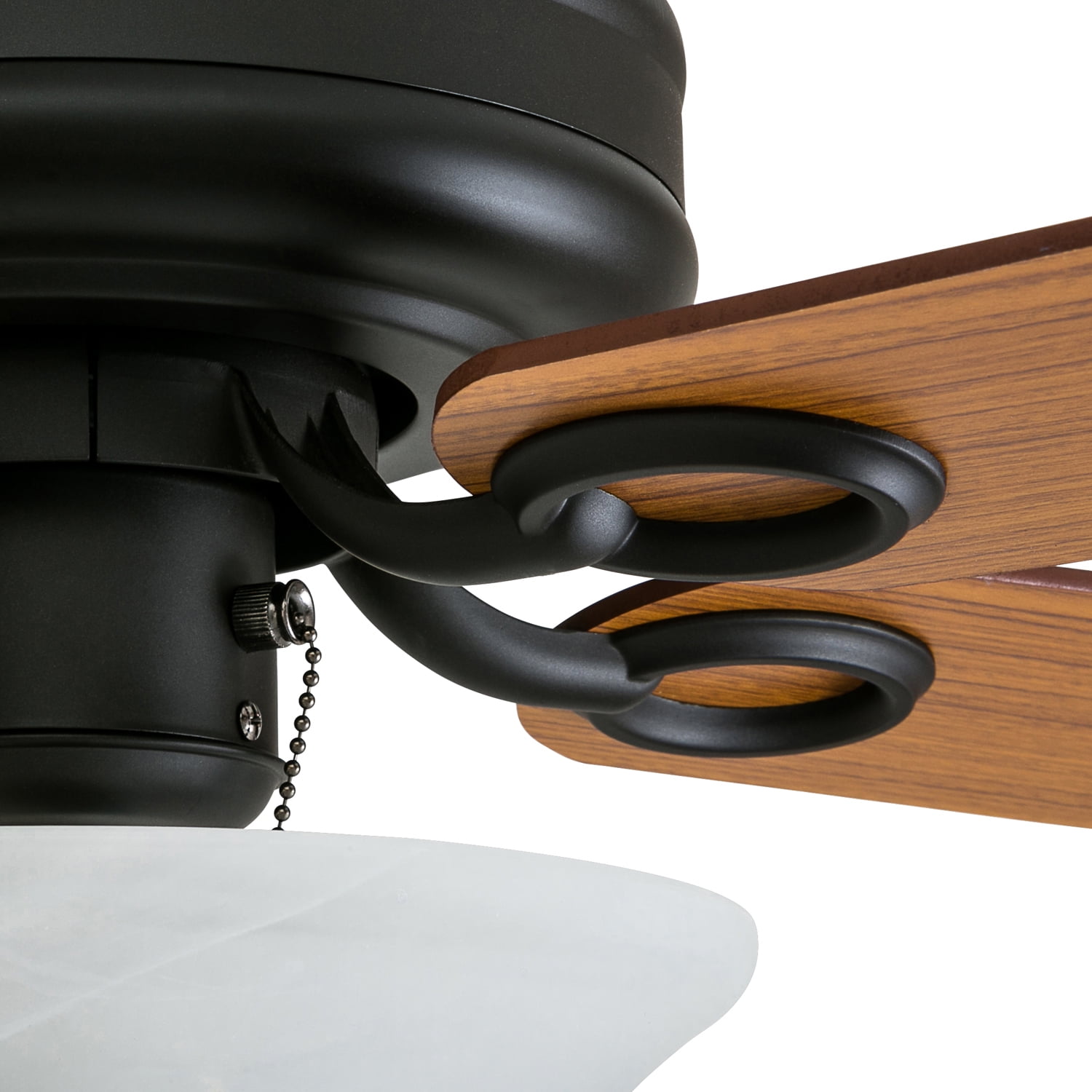 HIGH AIR-FLOW: Enjoy the cool breeze created by a ceiling fan! Three speeds allow for the perfect setting for your space. QUIET, REVERSIBLE MOTOR: Conveniently quiet, reversible motor. Can be run in the winter to aid in rotating warm air and cutting down on energy costs. MEDIUM SIZED ROOMS: Perfect for rooms around 350 square feet such as living rooms, bedrooms, dining rooms or family rooms. TWO-BLADE FINISHES: Get the perfect finish match with our reversible ceiling fan blades. Each side has a unique finish to compliment your space. 100% SATISFACTION GUARANTEED: Limited manufacturer’s warranty. You’ll love this ceiling fan!