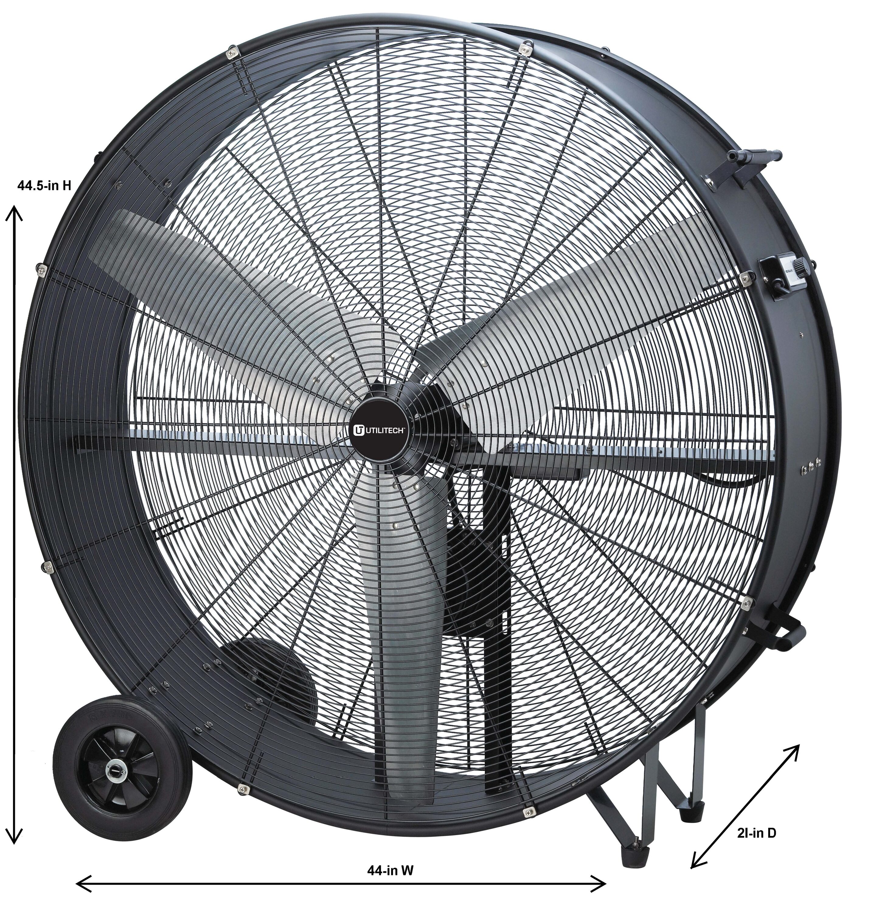 This 42 inch belt driven drum fan is powerful, portable, quiet, and durable. This fan provides maximum air flow for industrial, job site, and agricultural applications where people, animals or machines need to be cooled. It is constructed with heavy duty materials and a high reliability motor for long life in tough environments. Utilitech fans are packed with features to make your job easier.